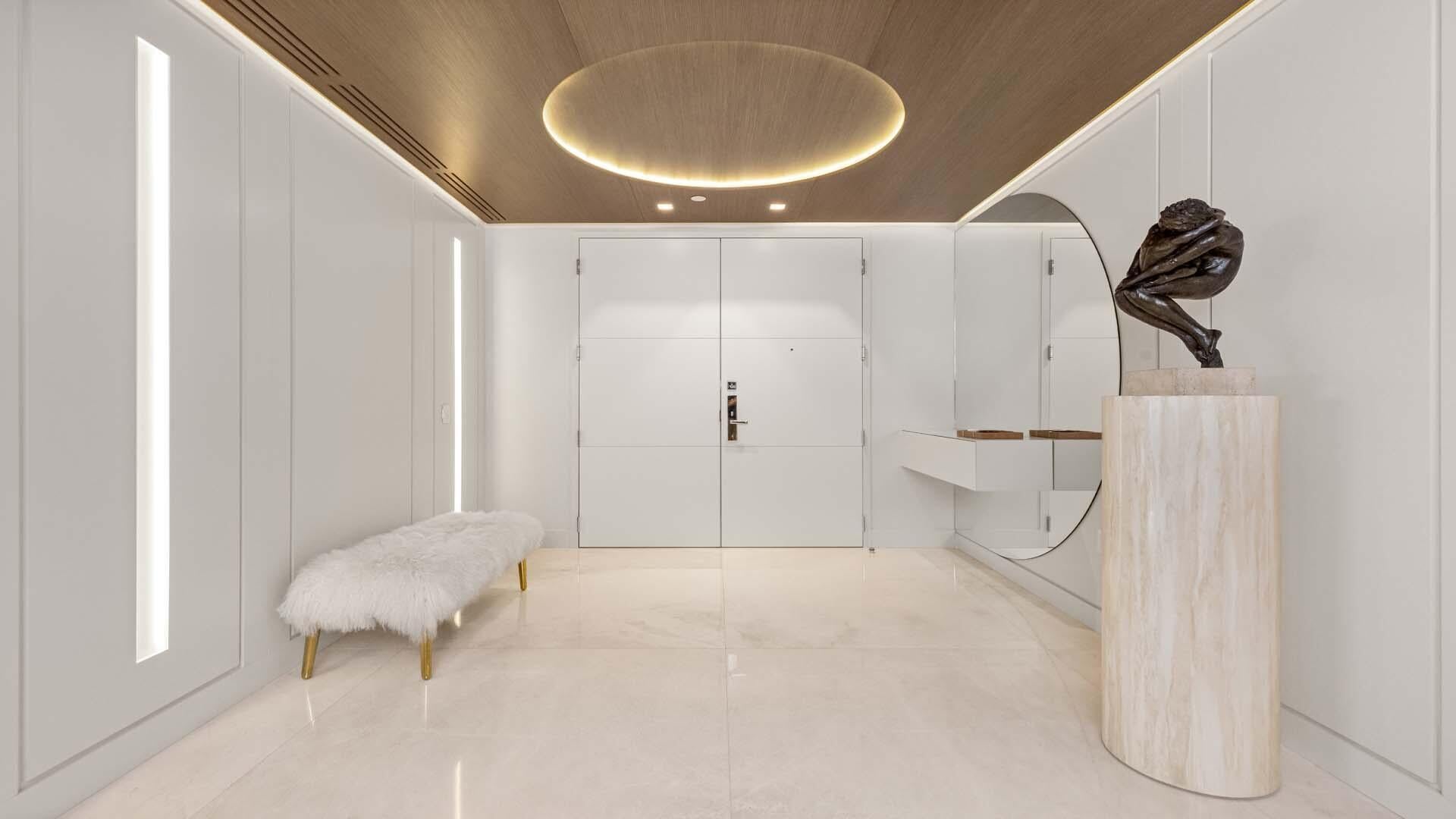 Experience the pinnacle of waterfront living at Boca Beach Residences. Professionally designed by Farache Bromberg Design Studio and offered fully furnished, every detail of this impeccably designed home has been elevated - from high ceilings and bespoke marble floors to rich woodwork and custom finishes throughout. The residence offers a private primary wing on the water, two spacious guest suites, open living and family rooms, and a state-of-the-art Gaggenau kitchen. Expansive glass sliders frame panoramic views of the Intracoastal, Boca Inlet and Lake Boca. Additional features include fully automated smart home via Control4, custom primary closet with island, four parking spaces including a private air-conditioned two-car garage with storage, and a 50' boat slip. Boca Beach Residences owners enjoy access to five-star amenities and a premier location near The Boca Raton, Mizner Park, and the private Boca airport. Come live the Coastal Boca Raton Luxury Lifestyle. Residence Highlights Exceptional Interiors Meticulously curated with high-end materials and finishes, this residence features 48" squared marble floors, custom hardwood millwork throughout, luxurious wall coverings, and designer lighting. The open-concept layout flows effortlessly between formal and casual living spaces, creating a harmonious environment for entertaining or unwinding in privacy. Gourmet Kitchen The chef's kitchen is appointed with integrated Gaggenau appliances, a gas cooktop, leathered Taj Mahal marble countertops, wine refrigeration, appliance garage, and sleek, MiaCucina cabinetry that blends functionality with refined design. Private Quarters The primary suite offers an expansive custom closet system with backlit displays and an elegant central island. The primary bathroom boasts a wet room complete with accent lighting and steam, and custom vanities with Cristallo Marble. Secondary bedrooms provide ensuite privacy and bespoke closet systems. Unmatched Views Floor-to-ceiling windows and multiple exposures offer panoramic water views of the Intracoastal, Boca Inlet and Lake Boca, enhancing the serene coastal ambiance of this one-of-a-kind home. Boca Beach Residences Lifestyle Resort-Caliber Amenities Enjoy the exclusivity of a boutique waterfront development with full-time concierge, valet, fitness center, sauna and treatment rooms, resident lounges, resort style pool and spa along the Intracoastal, and private boardwalk access. Marina & Parking This offering includes a 50' private boat slip, four dedicated parking spaces - two of which are enclosed in a private air-conditioned garage, and a secured storage room. Premier Location Nestled on 3.2 acres of waterfront property, Boca Beach Residences is moments from The Boca Raton, Mizner Park, private Boca airport, Town Center Mall, and white sand beaches - offering world-class dining, shopping, and entertainment in one of South Florida's most desirable enclaves.