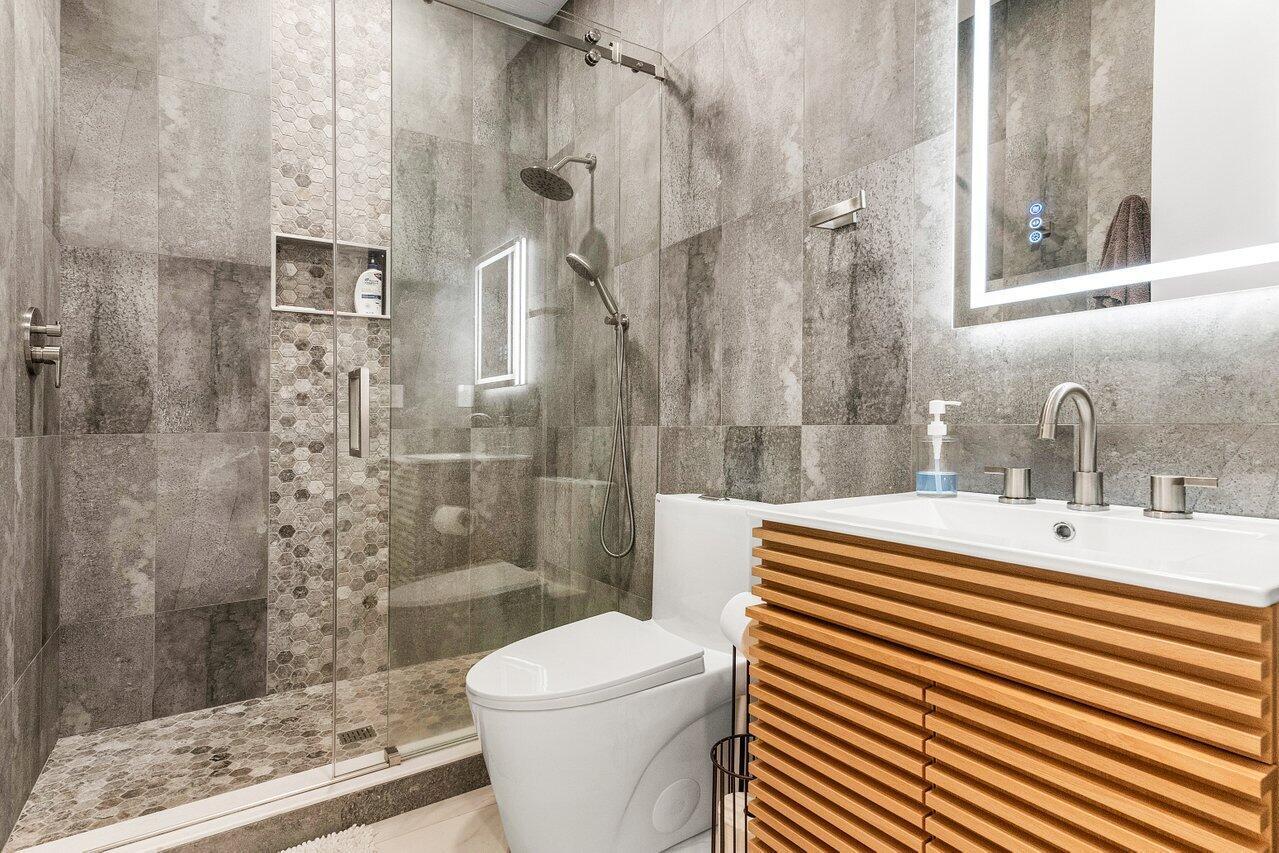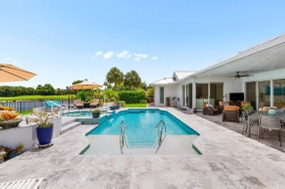 Dream Every Dream in This Private Country Club Retreat! Welcome to your ultimate sanctuary in this 4,200+ sq. ft. home which has everything you could want and more! Contemporary renovation & new construction enlarged custom home located on one of the best large lots -lake & golf course views, no homes behind - total privacy! Enjoy a resort-style backyard with pool & spa, summer kitchen, cabana bath & covered seating area. Perfect home for entertaining. The property, front and back, has been landscaped to create a serene setting during the day with palms, flowering trees and bushes. At night, energy efficient decorative lighting makes this home sparkle. Inside, a chef's kitchen with Thermador appliances & Taj Mahal quartzite countertops, WINE room, bar, OFFICE with custom cabinetry, and 3ensuite bedrooms plus another full and a half baths. The luxurious primary suite features a coffee bar, dual huge custom closets, and spa-inspired master bath with jetted tub and (2) water closets. Every energy efficient upgrade was incorporated including: new metal roof 2023, impact windows/doors throughout 2023, Custom Front Door 10' with matching custom office barn door, full-house generator and 500 Gal Tank 2023, new ACs/ducts and AC 2023, 3 tankless gas hot water heaters, and Icynene insulation. All lighting installed thoughtout this home is LED with many custom fixtures. This home has split garages with tiled floors, offering 2 - car spaces and 1 - golf cart garage on one side, and a separate single car garage for your favorite toy on the other side. Garage doors are hurricane rated, insulated and have modern smoked glass windows adding to the overall modern look of this home. Boca Woods, a premier private country club, boasts 2 championship golf courses, tennis, pickle, a newly renovated clubhouse with fine & casual dining, state of the art fitness center, spa & game room. FEATURES: Outdoor Paradise Step into your resort-style backyard, perfectly designed for entertaining and relaxation. NEW 2023 Sparkling pool with sunshelf all-new equipment, gas heater, and Aqua-Link system Oversized spa Covered seating areas with fans Custom summer kitchen with gas grill and Full 3 pc cabana bath (with A/C!) Professionally designed landscaping with lighting throughout Expansive paver circular driveway with parking for family and guests Interior Highlights Every detail of this ~4,200 sq. ft. residence has been thoughtfully crafted for style, comfort, and function. Light-filled custom kitchen with Taj Mahal Quartzite countertops, large island, bar counter, pot filler, and Thermador appliances (including column refrigerator & freezer) Custom pantry, family room, formal dining room, and LED-lit bar with wine room 3 spacious ensuite bedrooms plus 1 full and 1 half additional bathrooms Master retreat with coffee bar, dual custom walk-in closets, and spa-inspired bathroom with his & hers vanities, separate water closets, and luxurious finishes Custom office with double-seat desk and built-ins Solid 8' core doors, plantation shutters, and motorized zebra shades throughout Smart & Strong Home Features New metal roof Full home Generac generator Impact windows & 8' sliders New insulated hurricane-rated garage doors (2-car, 1-car, and golf cart garage -all with level 5 commercial tile) Icynene spray foam insulation in attic 3 tankless gas hot water heaters All-new HVAC system & ducts LED lighting inside & out Ring doorbell with exterior cameras This home isn't just move-in readyit's better than new, with every luxury upgrade and energy-efficient feature already in place. Perfect for year-round living or as the ultimate entertaining retreat, this is a rare opportunity in one of the most sought-after communities.