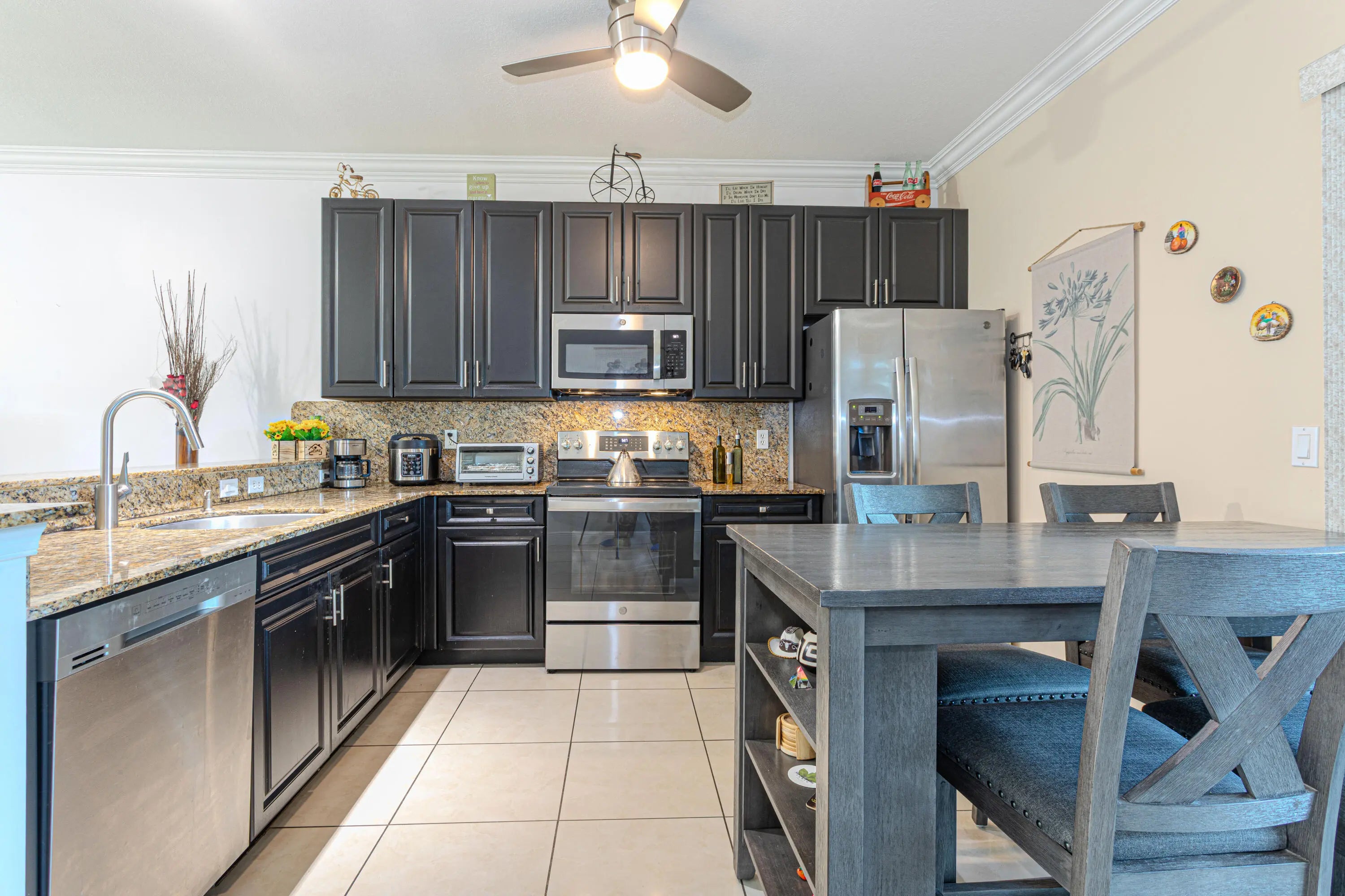 ACTUAL: Charming 3 bedroom, 2 bath townhouse located in a small, quiet community where rentals are allowed. This well-kept home features a modern kitchen with granite countertops, spacious living areas, tile and wood flooring, impact windows, ceiling moldings, washer and dryer, ethernet-ready connections in every room, metal roof and a cozy private patio. Conveniently situated near major intersections, shopping, dining, and schools. Excellent opportunity for homeowners or investors in a great location!