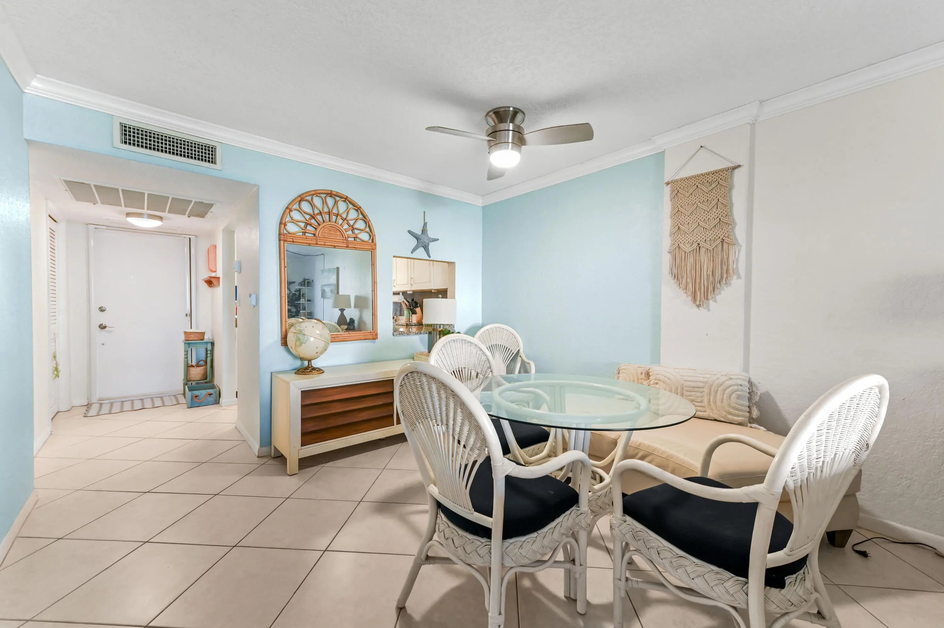 Welcome to Lighthouse Point Plaza Condo, a charming 1st-floor unit of a 3-story community offering comfort and convenience in the heart of Lighthouse Point. This condo features open living space, comprising 2 bedrooms each with a walk-in closet and 2 bathrooms. The entry foyer with a closet leads to a kitchen with cabinet storage, refrigerator, microwave, and range/oven, flowing into the dining and living areas.The home features tile flooring in the main areas and laminated flooring in the bedrooms. From the living room, sliding doors with accordion shutters open to a screened and covered patio only a few steps away from the pool. Additional highlights include accordion shutters throughout for storm protection.