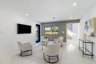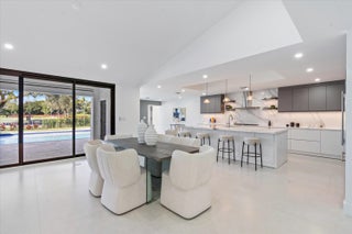 This is truly one of the most spectacular opportunities in all of Delaire Country Club! Perfectly situated on a deep golf-view lot, with the convenience of being just inside the gates for effortless access, this residence has been reimagined with pure sophistication and detail at every turn. From the moment you arrive, the home's stunning curb appeal is undeniable -- a charcoal metal roof, modern bronze fencing, custom professional landscaping with irrigation, and a striking driveway of silver tumbled pavers set the stage. Modern wall sconces cast dramatic light against the elegant stucco exterior, while French pattern Gray Pearl pavers lead you toward a warm welcome. Inside, over 4,100 sq. ft. of masterfully designed space unfolds with soaring 9' to 14' tray ceilings and gleaming 48x48Italian porcelain tile. The expansive floor plan offers 4 ensuite bedrooms, a gracious office/den, and bonus areas that can transform into a media room, gym, or play space. A smart home system seamlessly integrates lights, locks, and climate, while impact glass windows and sliders ensure both energy efficiency and peace of mind. The chef's kitchen is a work of art, quartz countertops, custom soft-close cabinetry with pull-outs, a massive island, Sub-Zero, Wolf, and Bosch appliances, walk-in pantry, and quartz backsplash with under-cabinet and pendant lighting. The primary suite is a private sanctuary featuring dramatic corner windows with panoramic golf course views, dual commodes, a spa-inspired bath with double vanities, LED mirrors, custom lighting, a soaking tub, and a walk-in shower designed for ultimate relaxation. Step outside to your private resort retreat: a natural gas heated pool with a beach entry sun shelf, surrounded by sleek pavers and lush tropical landscaping. Entertain with ease from the covered lanai and custom outdoor kitchen, complete with natural gas appliances. Evenings glow with designer exterior lighting, while the whole-house generator and pre-wired security system deliver comfort and confidence. A two-car garage plus golf cart garage add practicality without compromising elegance. This home is a statement of luxury living in award-winning Delaire Country Club, a boutique community known for its championship 27-hole golf course (no tee times required). The clubhouse itself is a work of art, offering a 16,000 sq. ft. fitness center, resort-style pool, eight Har-Tru tennis courts, four brand-new pickleball courts, and world-class dining. With Delaire's extended family policy, your loved ones can fully embrace this vibrant, private club lifestyle.