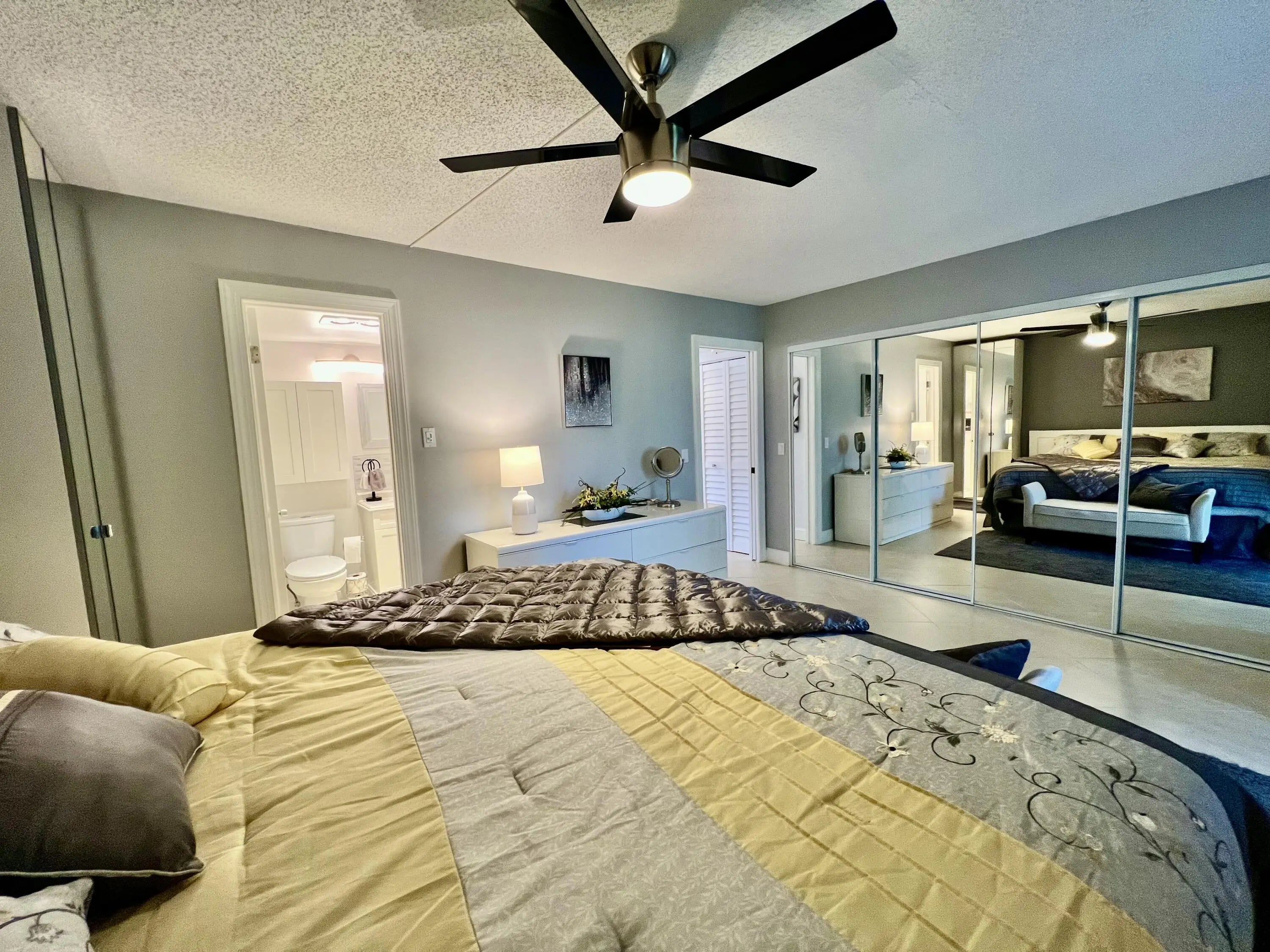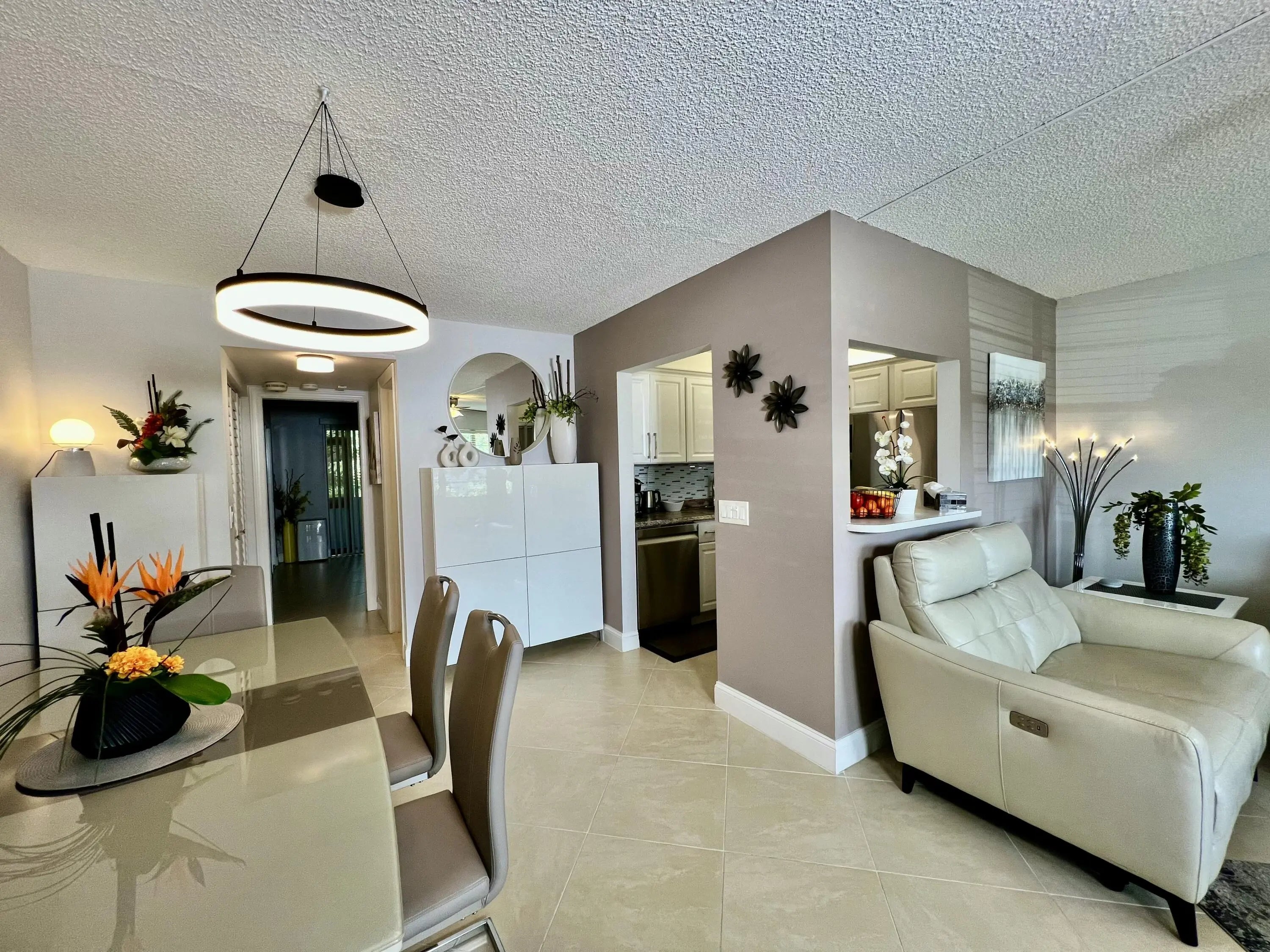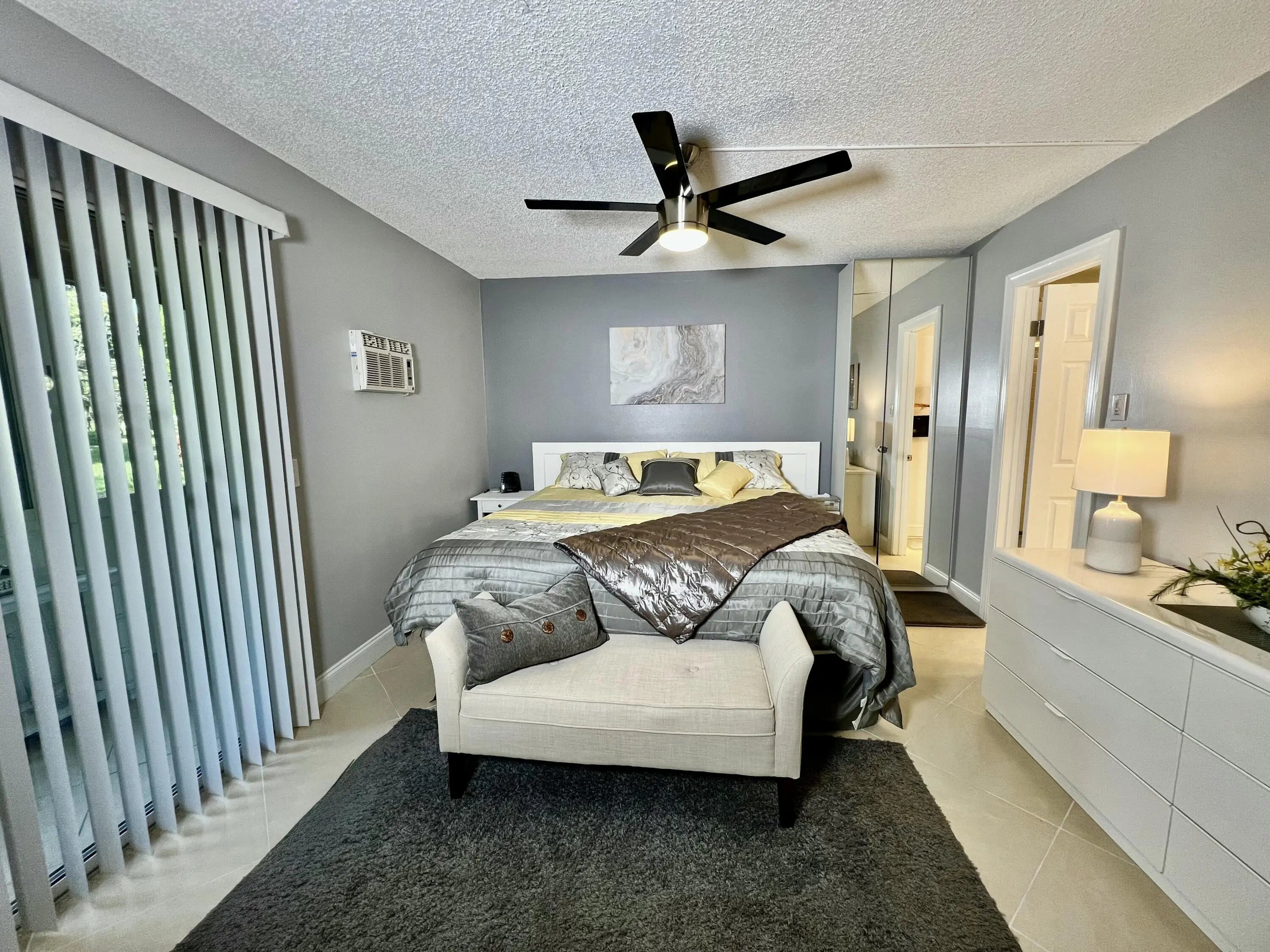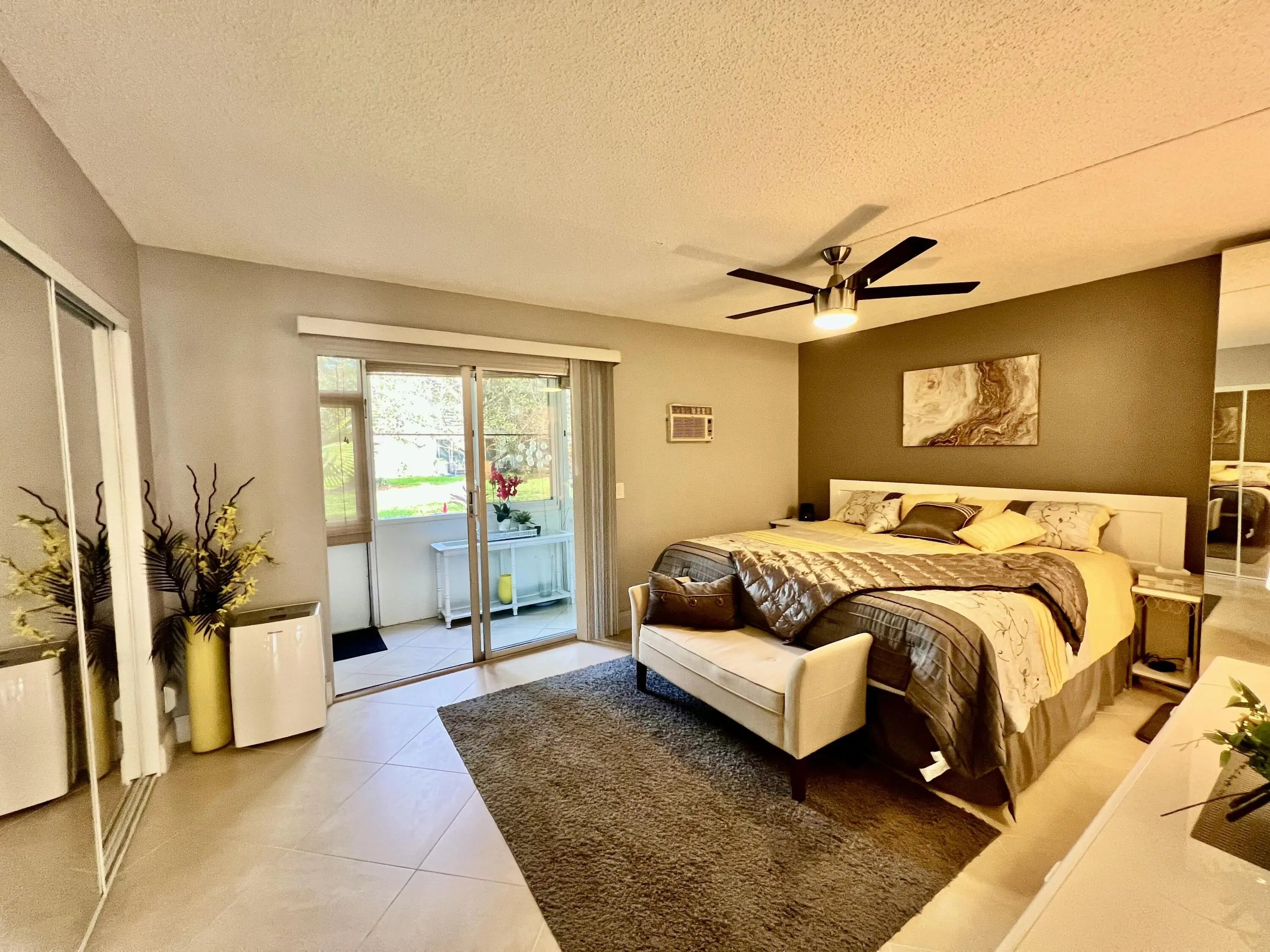 Discover modern comfort in this beautifully remodeled first-floor garden condo at Century Village East.This inviting 1-bedroom, 1.5-bath residence has been thoughtfully upgraded with a new water tank, wall A/C, and appliances--all installed in 2023.Enjoy serene lake views from the side, or step out to your private back patio, perfect for relaxing or entertaining. Offered fully furnished and turn-key, this home is rental-ready and designed for a seamless, stylish lifestyle.