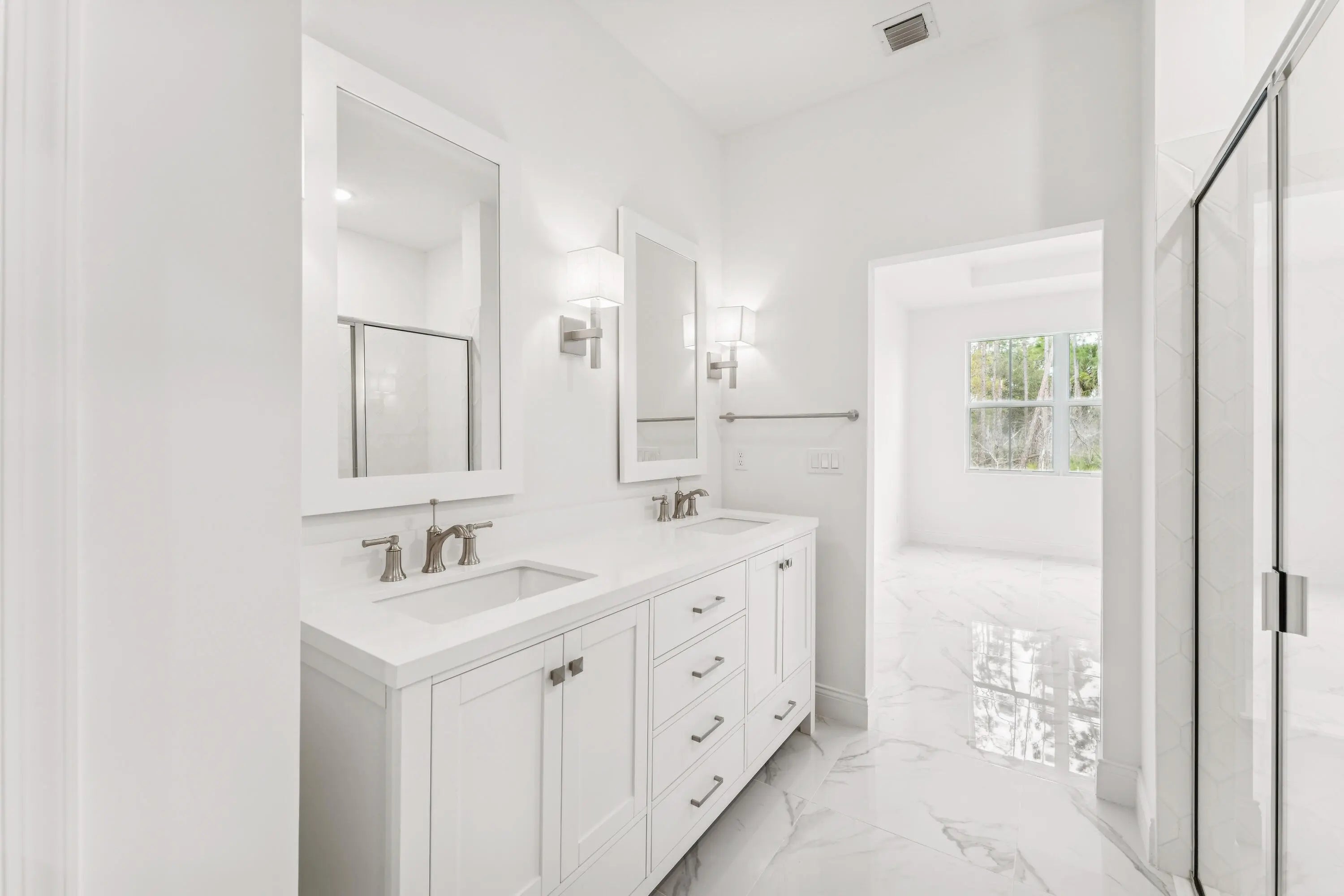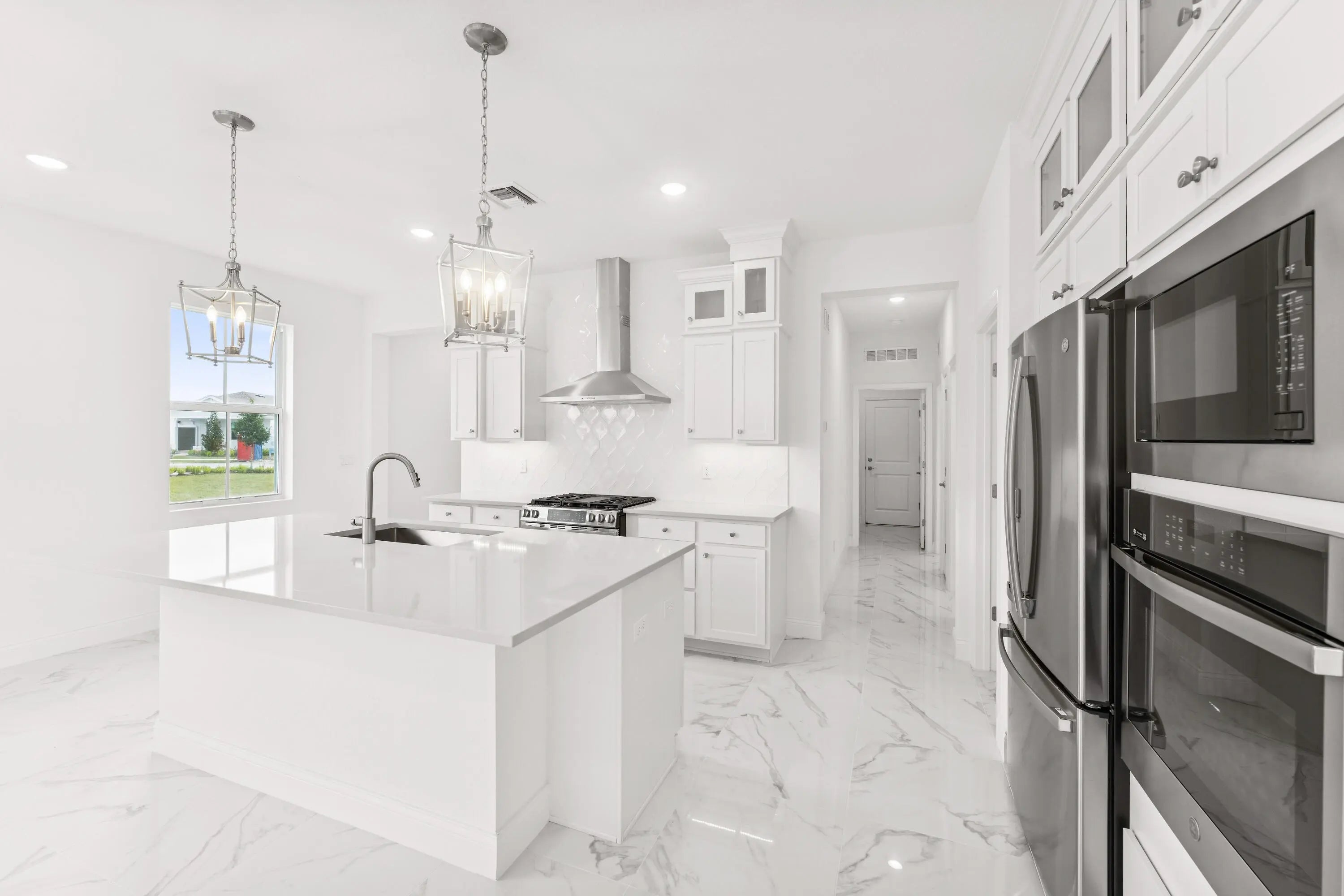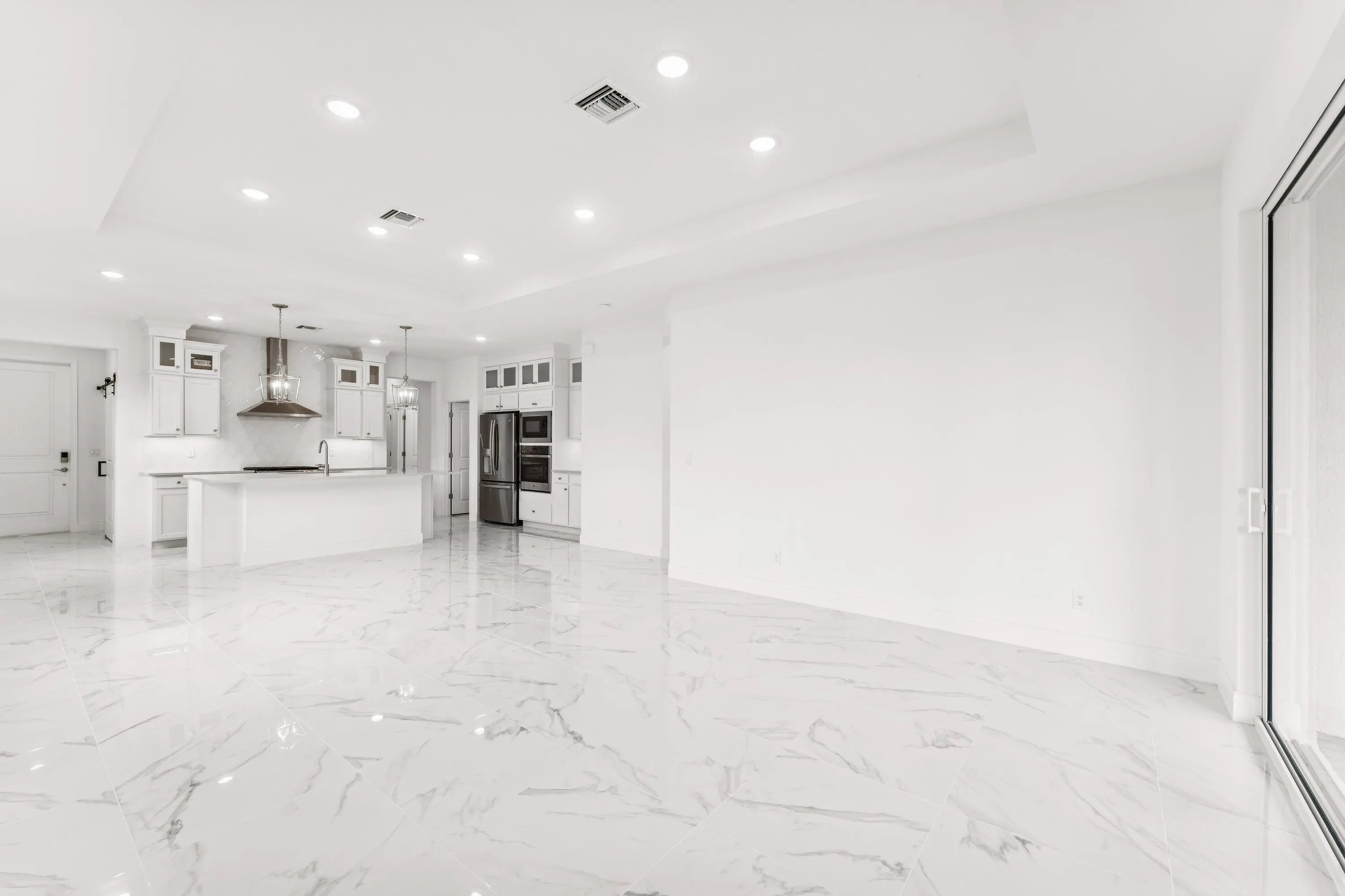 Elegant Spring Lake IV Villa with Preserve ViewsWelcome to this exceptional Spring Lake IV villa, located in Four Seasons at Wylder, Port St. Lucie's premier 55+ community. Set on a premium 6,889 sq. ft. preserve lot with desirable south-facing exposure, this home captures abundant natural light and offers tranquil preserve views for a private, peaceful setting.The thoughtfully designed open layout blends style and functionality. The kitchen features pristine white soft-close cabinetry, gleaming quartz countertops, GE stainless steel appliances, and a professional-style gas range with stainless hood. Overlooking the great room and dining area, the kitchen allows for effortless entertaining and everyday convenience. A 12' sliding glass door opens the living space to the