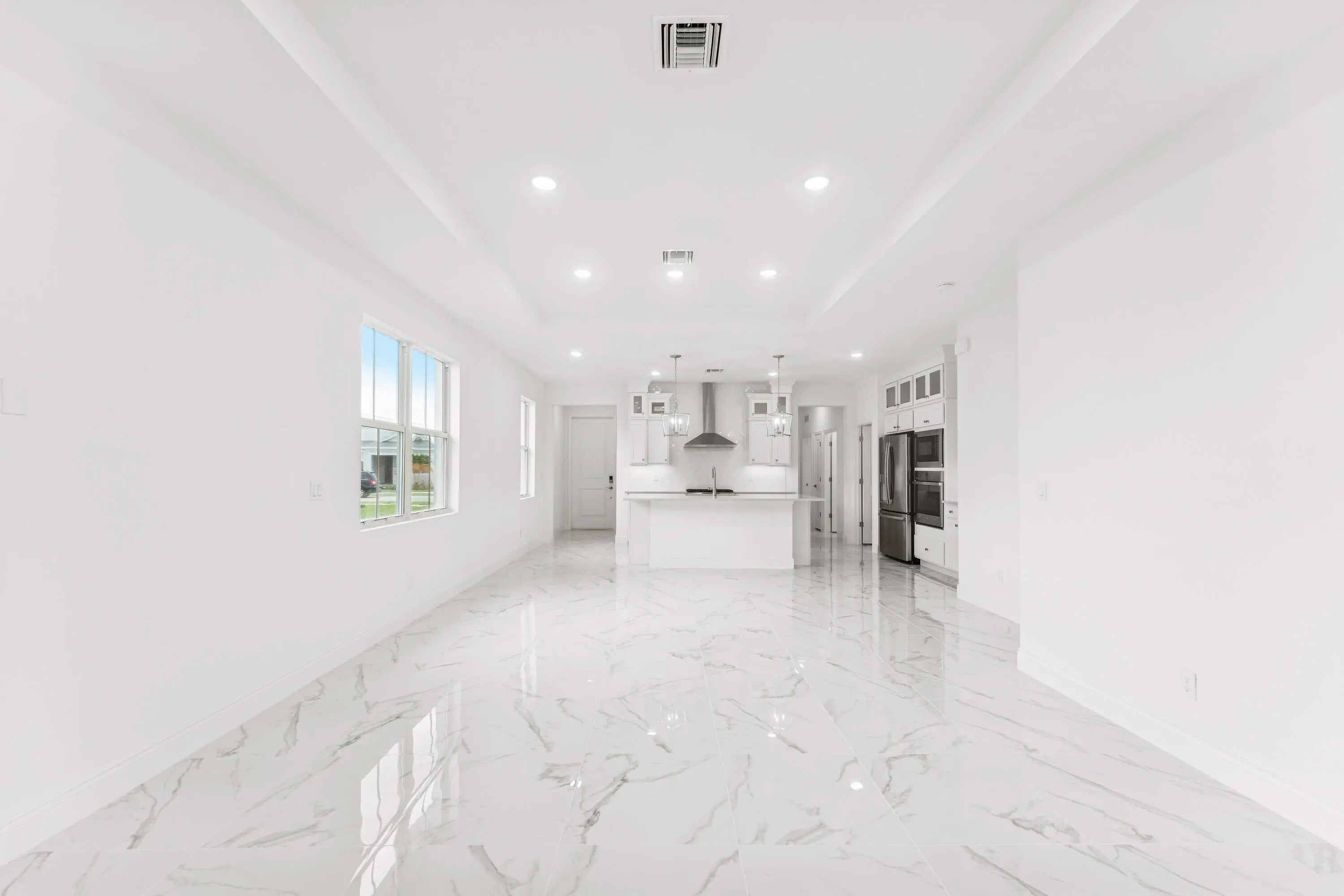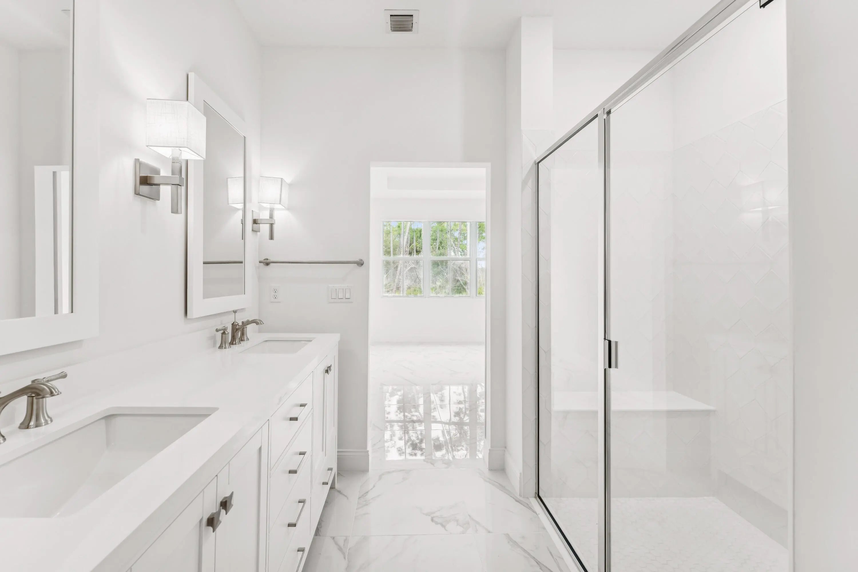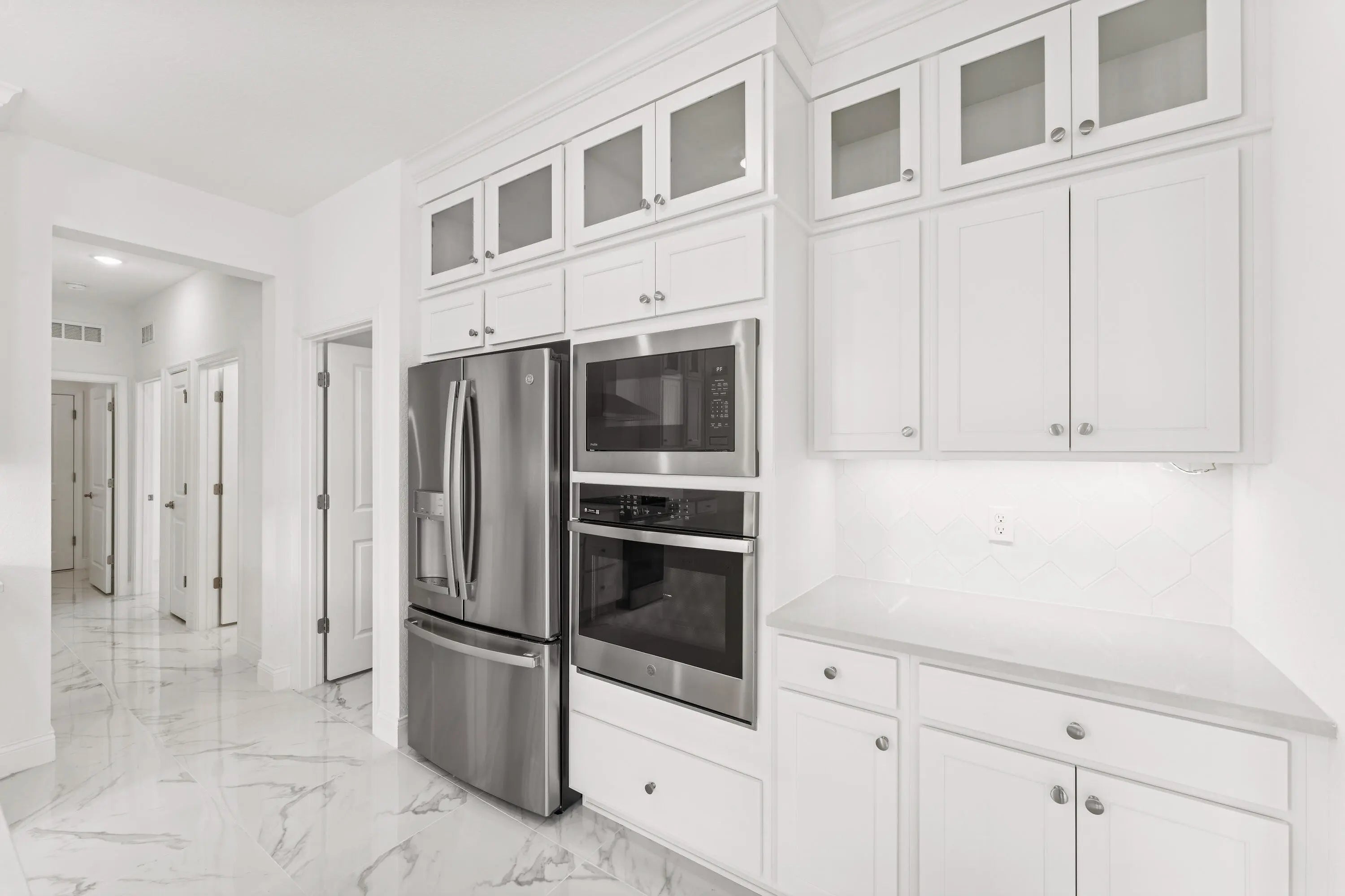 Elegant Spring Lake IV Villa with Preserve ViewsWelcome to this exceptional Spring Lake IV villa, located in Four Seasons at Wylder, Port St. Lucie's premier 55+ community. Set on a premium 6,889 sq. ft. preserve lot with desirable south-facing exposure, this home captures abundant natural light and offers tranquil preserve views for a private, peaceful setting.The thoughtfully designed open layout blends style and functionality. The kitchen features pristine white soft-close cabinetry, gleaming quartz countertops, GE stainless steel appliances, and a professional-style gas range with stainless hood. Overlooking the great room and dining area, the kitchen allows for effortless entertaining and everyday convenience. A 12' sliding glass door opens the living space to the