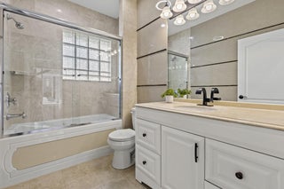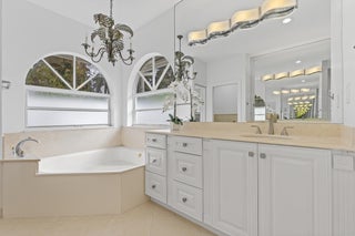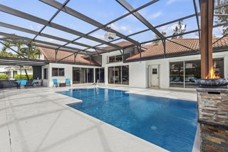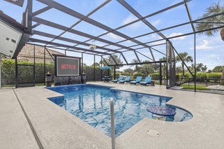 Magnificent 5BR/3BA pool home in Stonebridge CC in Boca Raton, offering golf & exclusive country club lifestyle. Enjoy this chic coastal design with high ceilings, split floor plan, upgraded kitchen with double ovens, S/S appliances and modern quartz countertops, and a recently resurfaced heated and screened in pool. Entertain with an outdoor projector for poolside movies, pool bar & plenty of space to add your very own summer kitchen. Primary suite overlooks pool, with ensuite bathroom large custom closet. 2.5-car garage provides extra storage. Stonebridge offers an exclusive country club lifestyle with full-service restaurant, clubhouse pool, locker rooms, tennis, pickleball, golf (no waiting list), spa & plenty of activities for all ages. Mandatory membership of $150,000 is require