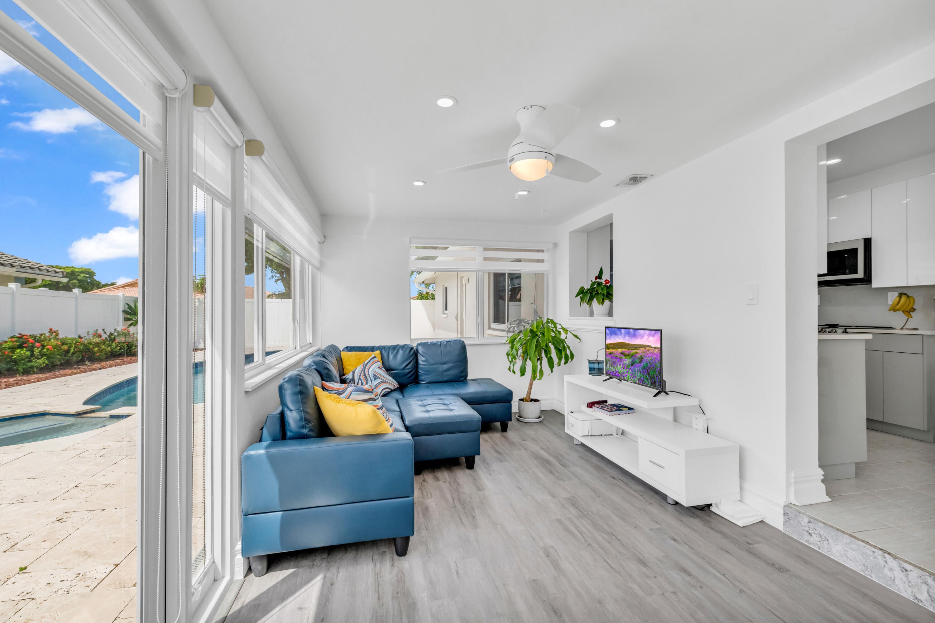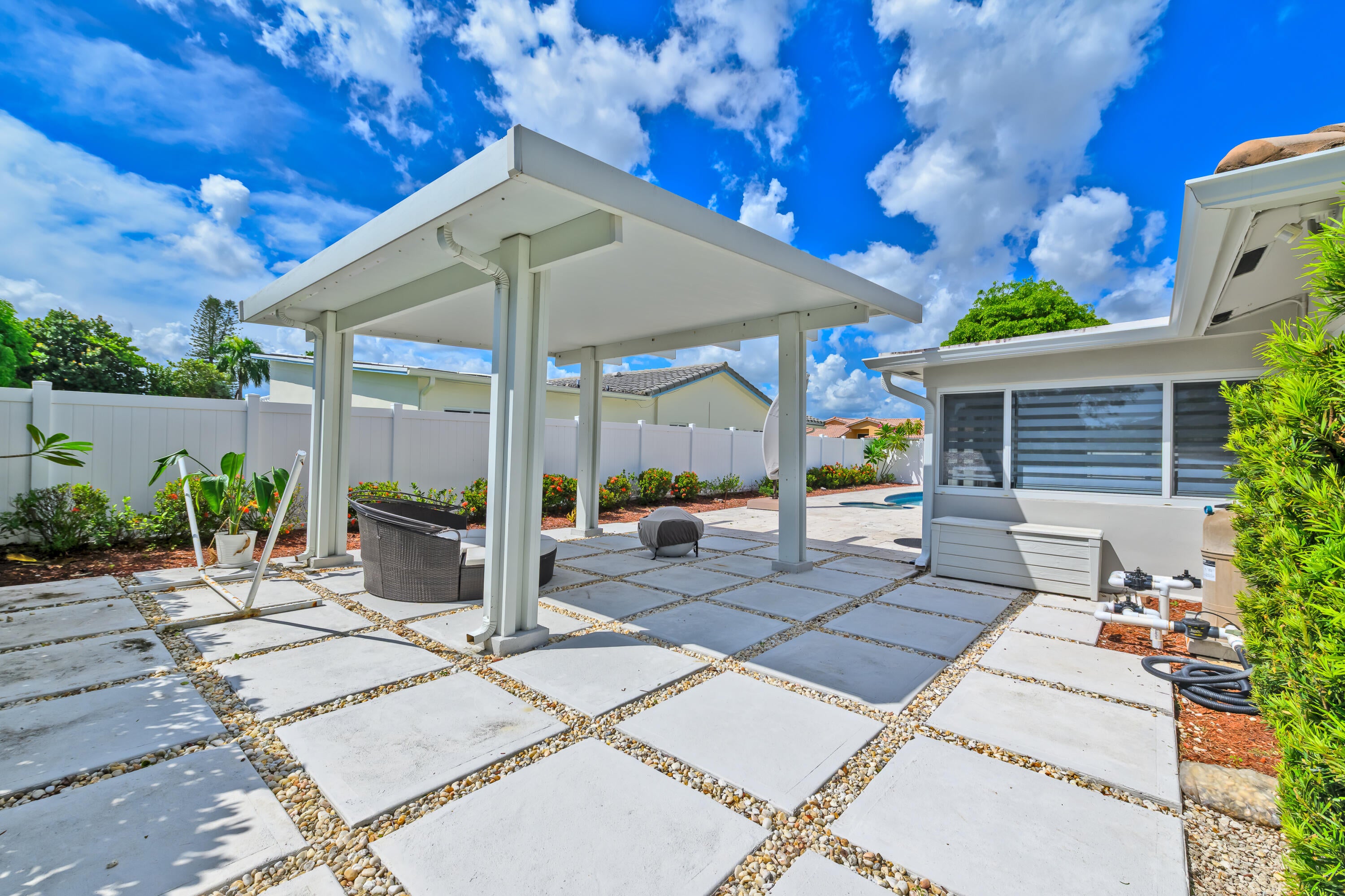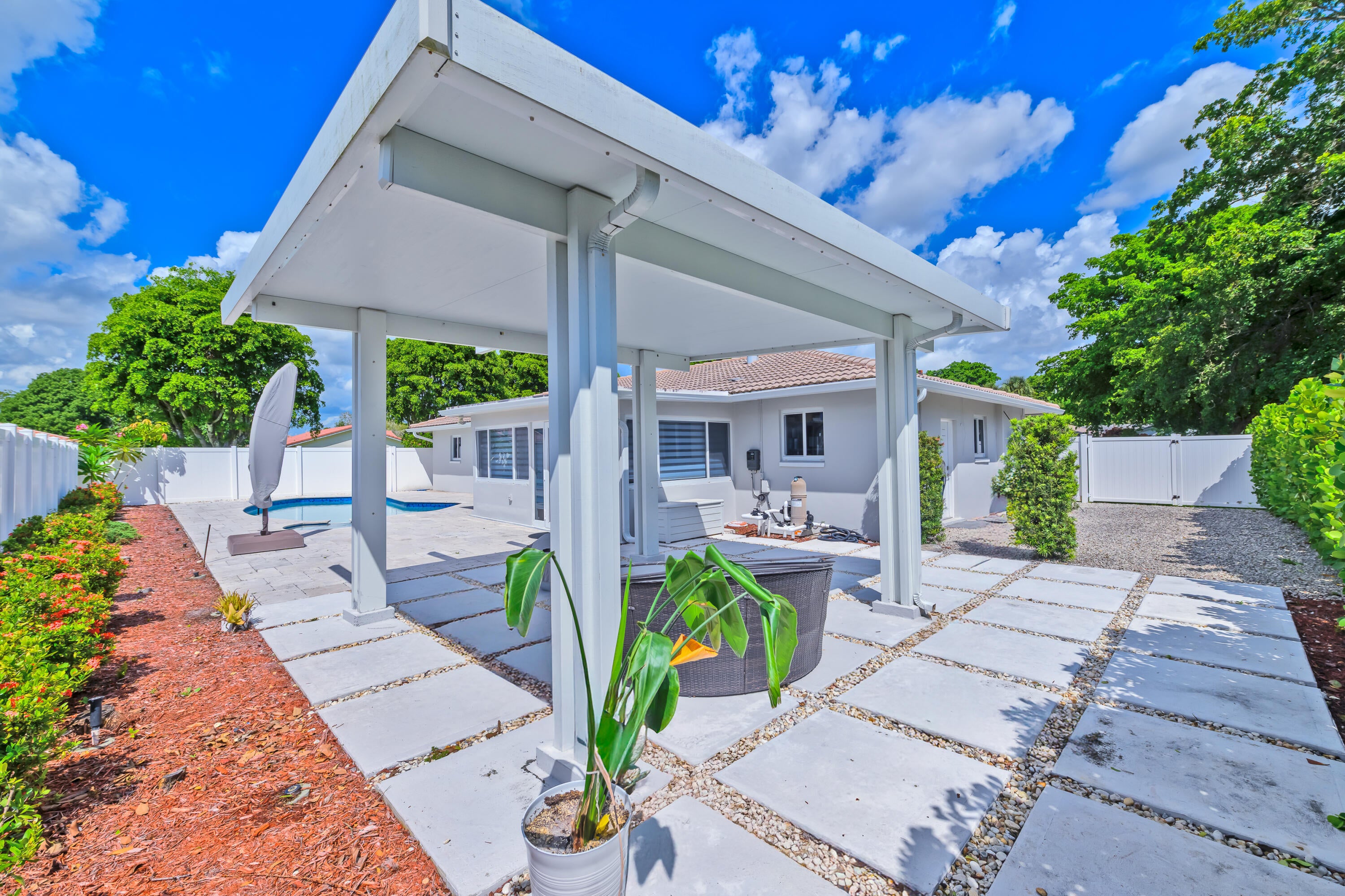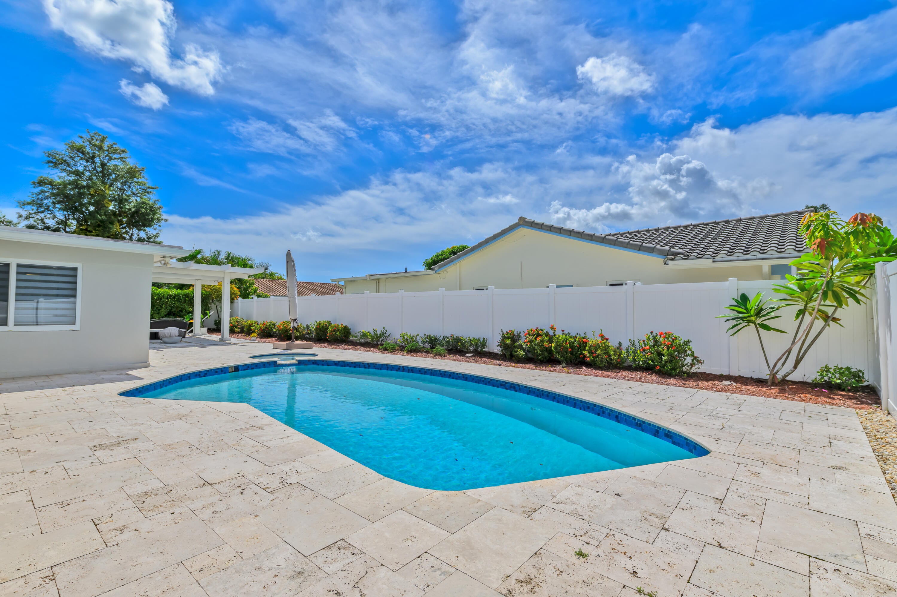 Welcome to this beautifully updated corner-lot home with pool in the desirable Boca Madera community along the St. Andrew's Corridor of Central Boca Raton. Offered furnished or unfurnished, this residence features modern upgrades throughout, including a remodeled kitchen with Bespoke Samsung appliances, remodeled baths, impact windows, and freshly painted interiors. Tile flooring throughout with vinyl in the Florida room. Enjoy a saltwater pool, covered patio, laundry room, and 2-car garage. PVC-fenced yard with room for a boat or RV plus U-shaped driveway for ample parking. Conveniently close to top schools, Town Center Mall, I-95, and the Turnpike.