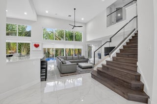 Welcome to this stunning, completely renovated residence in desirable Woodfield Country Club. This stylish home offers modern luxury & convenience with 4 bedrooms, 3.1 baths, a private office, a versatile flex room & loft. Upon entering you are welcomed by soaring ceilings & an abundance of natural light! The open concept layout was designed to accommodate everyday living & elegant gatherings. The gourmet kitchen has GE Monogram appliances, ample cabinets & storage plus 2 sinks & 2 island countertops. Enjoy indoor & outdoor living with a newly redone resort-style pool & spa creating your own private oasis. Complete with a new roof, impact windows, a full house generator & electric shades in every room. This home has been thoughtfully designed for convenient & comfortable living.Square footage is larger due to enclosed patio. New water heater & a new A/C unit (2022) " Added powder room