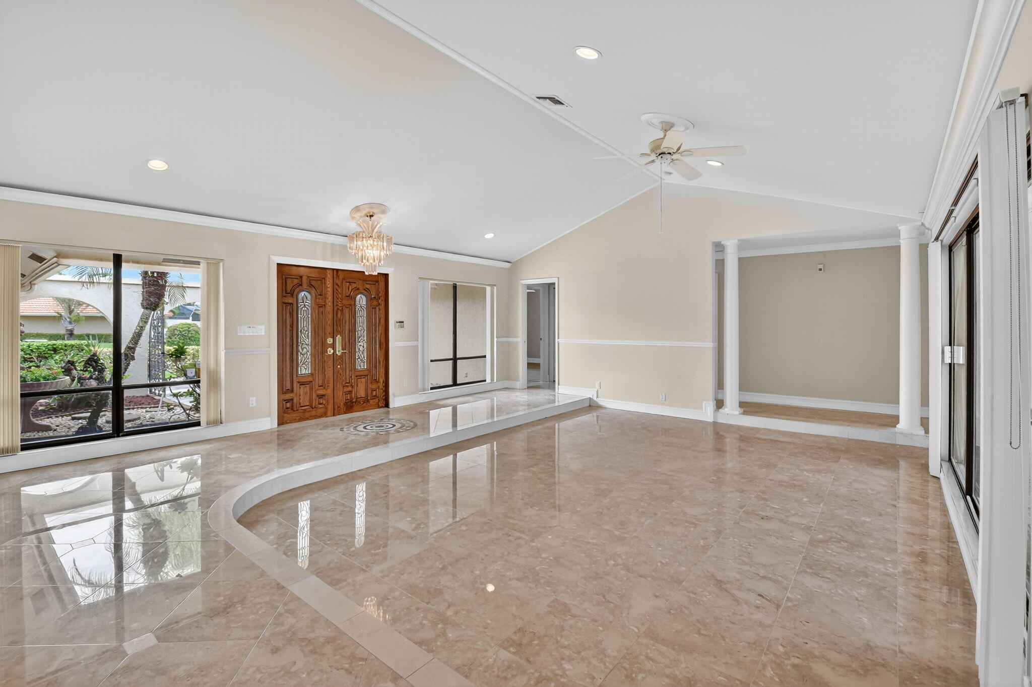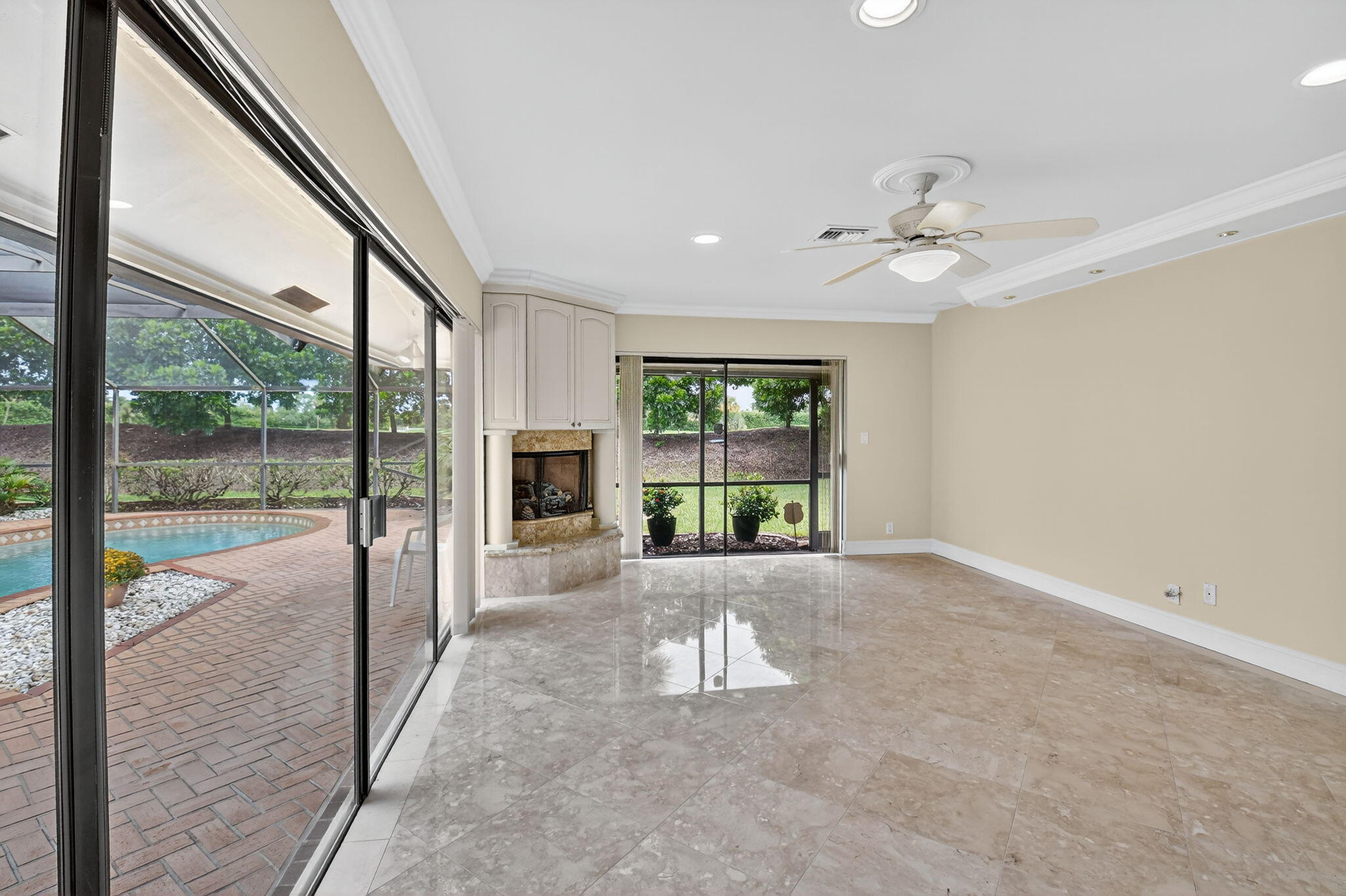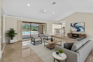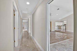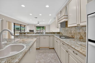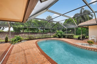 $35 monthly HOA fee!!! Set in the coveted Brookfield community of Boca Raton, this exceptional residence blends refined elegance with everyday comfort and an unbeatable location. Offering 3 bedrooms, 2.5 bathrooms, and a 2-car garage across 2,559 sq ft of refined living space, this single-family home is designed for both relaxation and entertaining. The screened-in heated pool overlooks the scenic fairways of the prestigious Via Mizner Golf & City Club--an outstanding and challenging 18-hole course masterfully designed by Jack Nicklaus--providing a serene backdrop for everyday living or stylish gatherings.Upon entering, you're welcomed by breathtaking panoramic views of the sparkling pool and the lush golf course beyond, setting the tone for the home's sophisticated charm. Expansive sliding glass doors and soaring ceilings in the family room, living room, dining room and kitchen flood the open-concept layout with natural light, creating a seamless connection between indoor and outdoor living. Gleaming marble floors flow throughout the main living spaces, adding an elegant and timeless touch that enhances the home's luxurious appeal. The gourmet kitchen serves as the centerpiece of the home, thoughtfully designed for both style and functionality. Outfitted with custom cabinetry featuring abundant storage and pull-out drawers, this culinary space offers expansive granite countertops, a full-height granite backsplash, and a large center island that's perfect for meal prep or entertaining. Kitchen appliances include an in-wall microwave and oven, a separate ice maker, and 2 conveniently placed sinks. Recessed lighting illuminates the entire space, while a skylight enhances the bright, airy ambiance. Conveniently tucked behind the kitchen, this well-planned utility area combines function and organization. A dedicated laundry room comes equipped with a full-size washer and dryer, upper cabinetry for storage, and elegant marble tile flooring. Just off the laundry room, a stylish half bathroom features a pedestal sink with gold fixtures and a decorative framed mirror, offering a touch of sophistication for guests. From here, you have direct access to the spacious 2-car garage, which has been thoughtfully outfitted with wall-to-wall built-in cabinetry, a long countertop workspace, and additional open shelvingperfect for tools, hobbies, or seasonal storage. The garage is carpeted for added comfort and includes a side door that opens directly to the backyard, providing convenient access for outdoor projects or poolside entertaining. All 3 bedrooms and 2 full bathrooms are thoughtfully situated on the left wing of the home, offering privacy and functionality. The 2 spacious guest bedrooms have been beautifully updated to combine comfort, style, and versatilityperfect for overnight guests, a dedicated home office or playroom. Each room features wide-plank luxury vinyl flooring, elegant crown molding, neutral designer paint, and generous closet space, while large windows fill the rooms with natural light and offer tranquil garden views. The adjacent guest bathroom complements these spaces with custom cabinetry, a marble vanity, designer fixtures, and a tub-shower combination framed in glass with gold accents. The luxurious primary suite is a private sanctuary designed to blend comfort, sophistication, and functionality. Generously sized and filled with natural light, this serene retreat features warm wood-look flooring, elegant crown molding, recessed lighting, and direct access to the screened-in pool patio through sliding glass doors.A custom walk-in closet offers abundant built-in shelving, drawers, and gold-accented hardware, providing impeccable organization and style. The spa-inspired primary bathroom elevates everyday routines with timeless marble finishes throughout, dual vanities with ample storage, and a built-in makeup station framed by mirrored cabinetry. A sunken soaking tub serves as a luxurious focal point, while the oversized glass-enclosed shower features multiple showerheads and gleaming gold fixtures. With its elegant design and private poolside access, this primary suite delivers a truly elevated living experience. Step outside to your own private backyard oasis, where multiple access points throughout the home create a seamless indoor-outdoor lifestyle. Sliding glass doors from the master bedroom, sitting area, living room, dining area, and even a dedicated door from the master bathroom all open to the expansive screened-in patio. At the heart of this outdoor retreat is a sparkling heated pool, surrounded by a herringbone brick deck that offers abundant space for lounging, entertaining, and al fresco dining. There's ample room to add an outdoor kitchen, custom bar, or additional lounge areasperfect for hosting friends and family year-round. Beyond the screen enclosure, the home is perfectly positioned on a lush, manicured golf course, providing breathtaking fairway and lake views framed by mature tropical landscaping. This quiet, established neighborhood embodies the best of Boca Raton living with no HOA restrictions, allowing residents the freedom to personalize their homes while enjoying a tranquil, walkable community feel. Perfectly positioned in the heart of Boca Raton, this home is just minutes from award-winning public and private schools, pristine beaches along the Atlantic coastline, world-class golf courses, lush parks, and premier shopping and dining at Mizner Park and Town Center Mall. With its close proximity to major highways, airports, and cultural attractions, this location combines convenience with a true South Florida lifestyle.