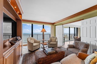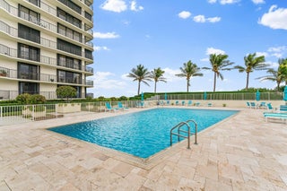 Rarely available penthouse in Tequesta Towers, one of Jupiter Island's most coveted oceanfront addresses. Built by DiVosta and impeccably maintained, the building is current on inspections and strong financial reserves. Enjoy sweeping turquoise ocean views from this elegant residence featuring a sophisticated kitchen with newly painted cabinets, a generous island, built-in bar, and abundant closet space. The 3rd bedroom has been reimagined as a stylish club room with a custom Zoom bed cleverly concealed behind a sleek built-in TV. Savor breathtaking Intracoastal and sunset vistas from your west facing front patio. Additional amenities include a designer lobby, climate-controlled owner storage, garage parking, grill/patio area, newly renovated fitness center, and a heated saltwater pool.
