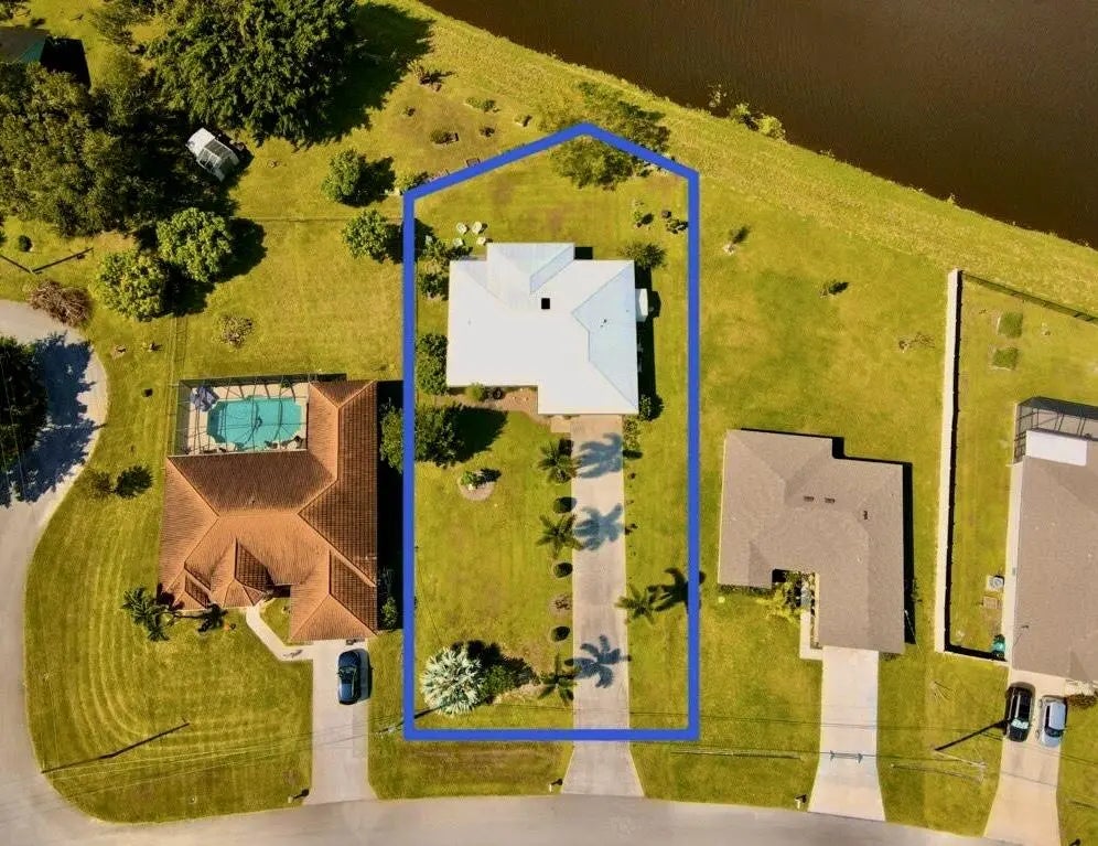 This beautiful home is in move-in condition. There are so many unique features. The home sits on one of the deepest lots in this neighborhood on a wide fresh water canal with a city green belt that provides excellent drainage. If you have a number of vehicles,maybe a motor home, boat on a trailer, or RV, thereis so much extra parking and room for a extra turnaround pad. Entire home including the Florida Room has a Metal Roof. Covered and Screened front entry porch, Kitchen features all stainless appliances including a bottom freezer. The is also a skylight andtile backsplash. New 2025 Garage Door Opener, the mature professional landscaping is exceptional. Take the 45 plus HD Photo Tour and call for an appointment today...
