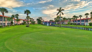 Right on the golf course in the heart of Stuart, this furnished 2-bedroom, 2-bathroom condo in Monterey Yacht & Country Club is designed for the active 55+ lifestyle. The home's layout offers a cozy living area with tile and laminate flooring throughout, bedrooms with ample storage, and accordion shutters for peace of mind. The kitchen is compact yet functional, making everyday meals simple and efficient. Step outside to the screened patio, an inviting spot for morning coffee or evening relaxation with golf course views.