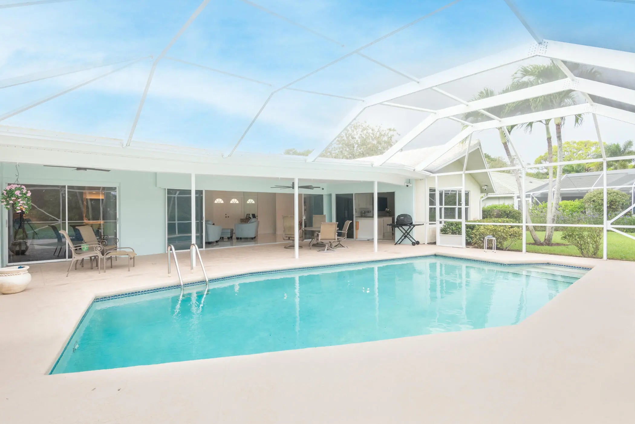 Welcome to the highly desirable Yacht & Country Club of Stuart! This solid concrete block home offers 2 bedrooms/2 Baths overlookingthe 16th Fairway. Inside, you'll find new tile flooring through, a spacious kitchen with granite countertops, freshly painted and a 2 car garage.Step outside to enjoy the sparking pool, covered patio and screened lanai - perfect for relaxing or entertaining in true Florida style.Club memberships are available, but not mandatory, giving you the option to enjoy golf, tennis, fitness, and social amenities at your ownpace. Flexible closing dates available.