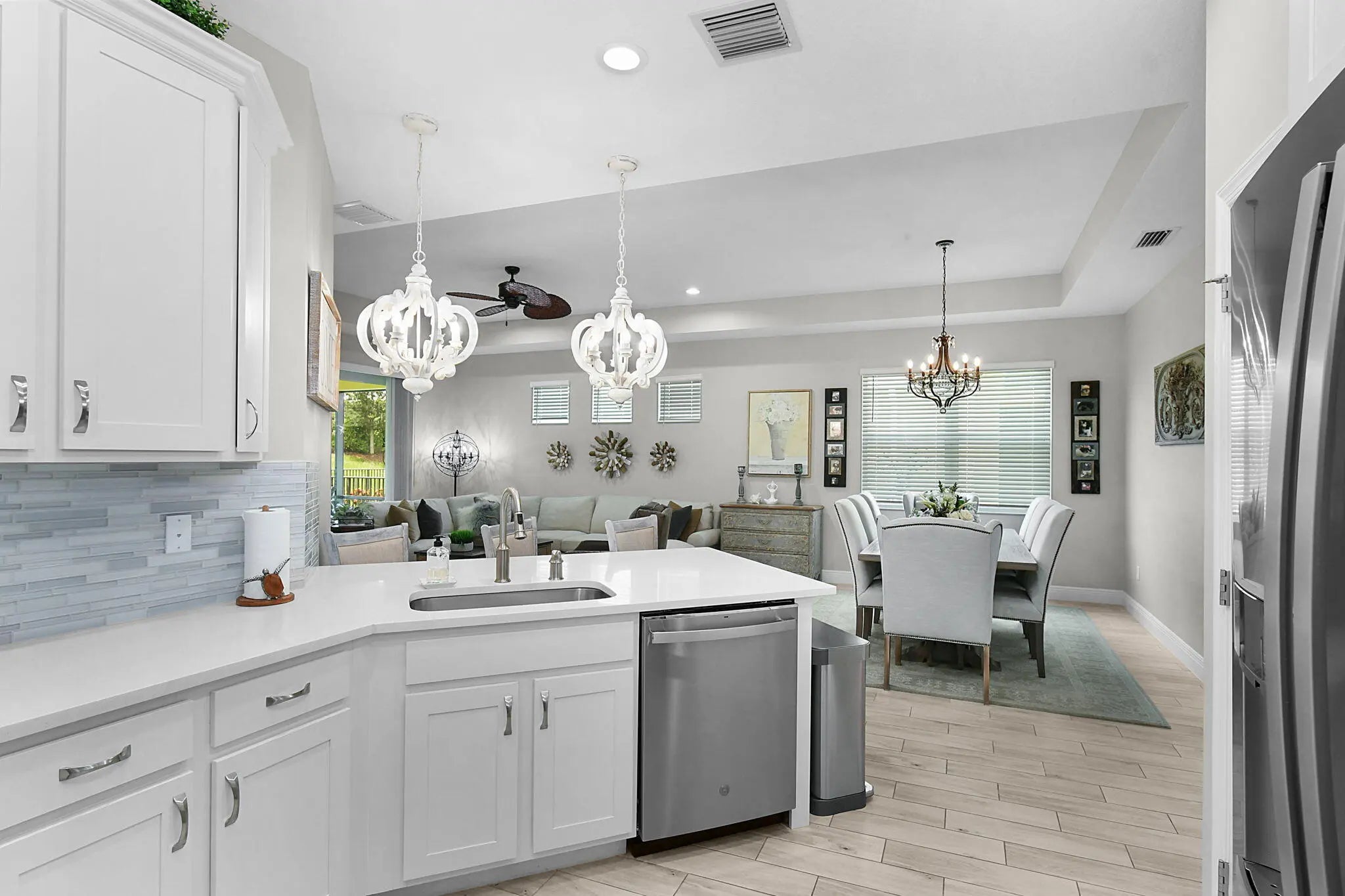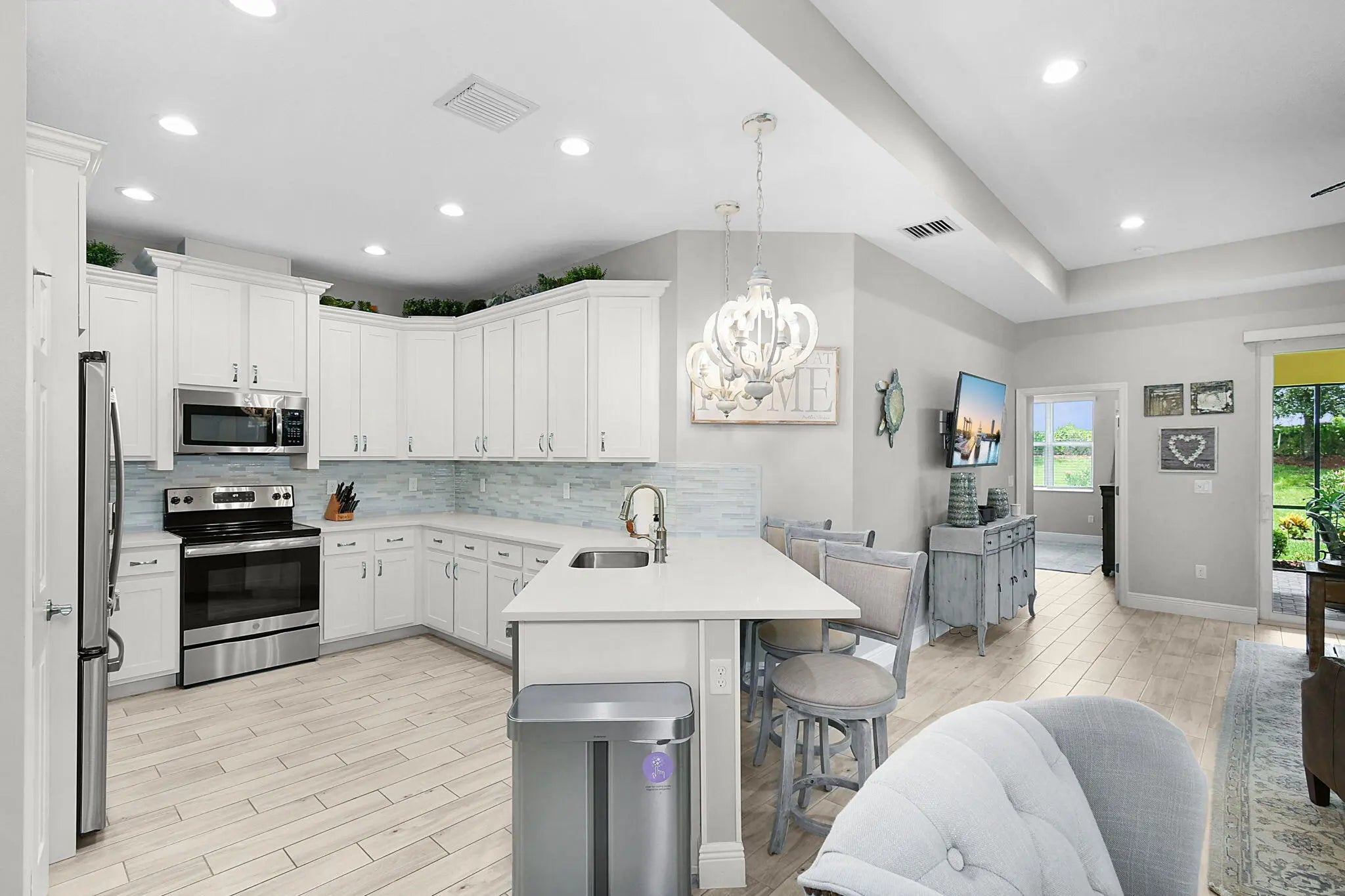 Elegantly stunning - professionally decorated! This pristine 3/2/2 PLUS DEN is a master class in how to appoint a villa to turn heads! Just move on in and enjoy! Upgraded kitchen, baths, flooring, lanai, and landscaping. Ideal for downsizing without regretting it. The den boasts an ideal space for reading, working, or just some ''me'' time. Upgraded flooring throughout - no carpeting! Impact windows and doors and you're situated at the end of the street with only one homeowner driving past you. Exquisitely upgraded landscaping welcomes you from the moment you arrive! Come enjoy the peaceful quiet of LakePark located in beautiful Tradition! Must see to fully appreciate this beautiful gem!
