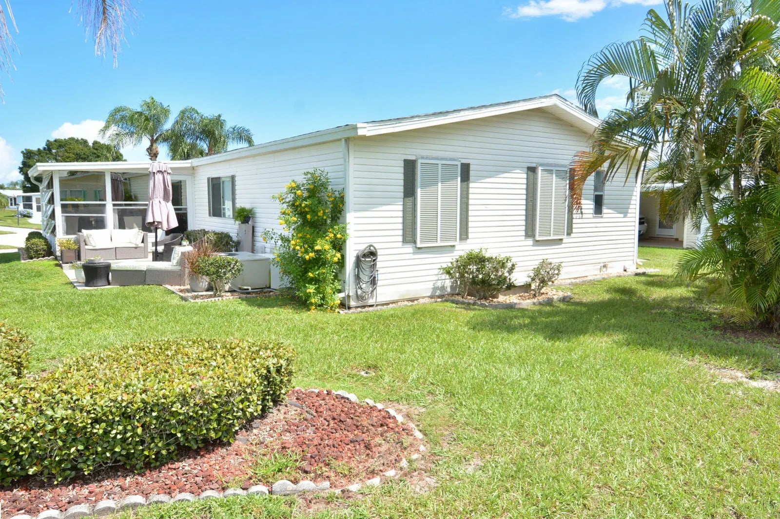 LAND OWNED-NO LAND LEASEThis beautifully updated home is move-in-ready with a brand new roof, and renovations completed between 2023-2025. Offering 2 bedrooms, 2 bathrooms, a dining and living room, this home combines comfort with style. Updates include new flooring, a modernized kitchen and a stylish barn door in the bedroom.Located in the desirable Savanna Club 55 plus community you'll enjoy resort-style living with an 18 hole golf course, live entertainment, tennis,volleyball, pickleball, shuffleboard and stunning clubhouse, and multiple pools. Don't miss your chance to own in this vibrant community-schedule your showing today!