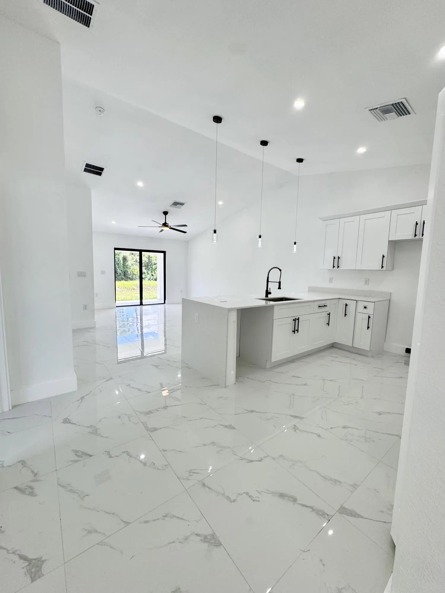 Brand new construction 3 bed/2 bath townhome/villa in Lehigh Acres (33974) -- AVAILABLE NOW! Modern open layout with high ceilings, luxury tile throughout, and stainless-steel appliances to be installed. Private garage plus driveway parking, irrigation system, and a spacious yard. Be the first to live here! $2,200/month; move-in specials available--first, last & security negotiable. Vouchers welcome. Convenient to schools, shopping, and major roads. Schedule a tour today!