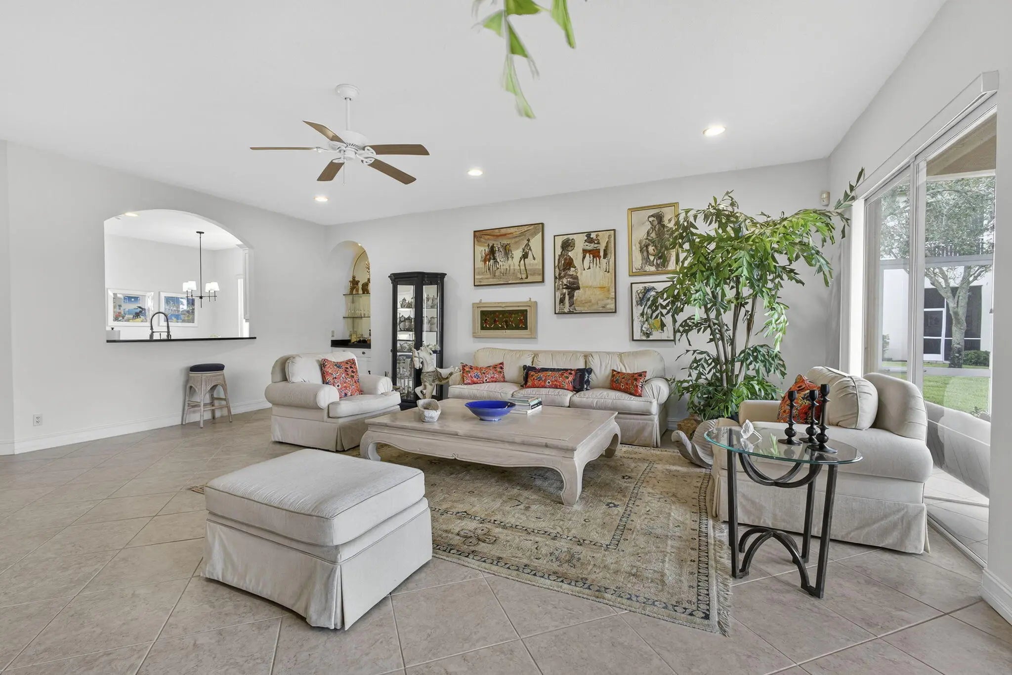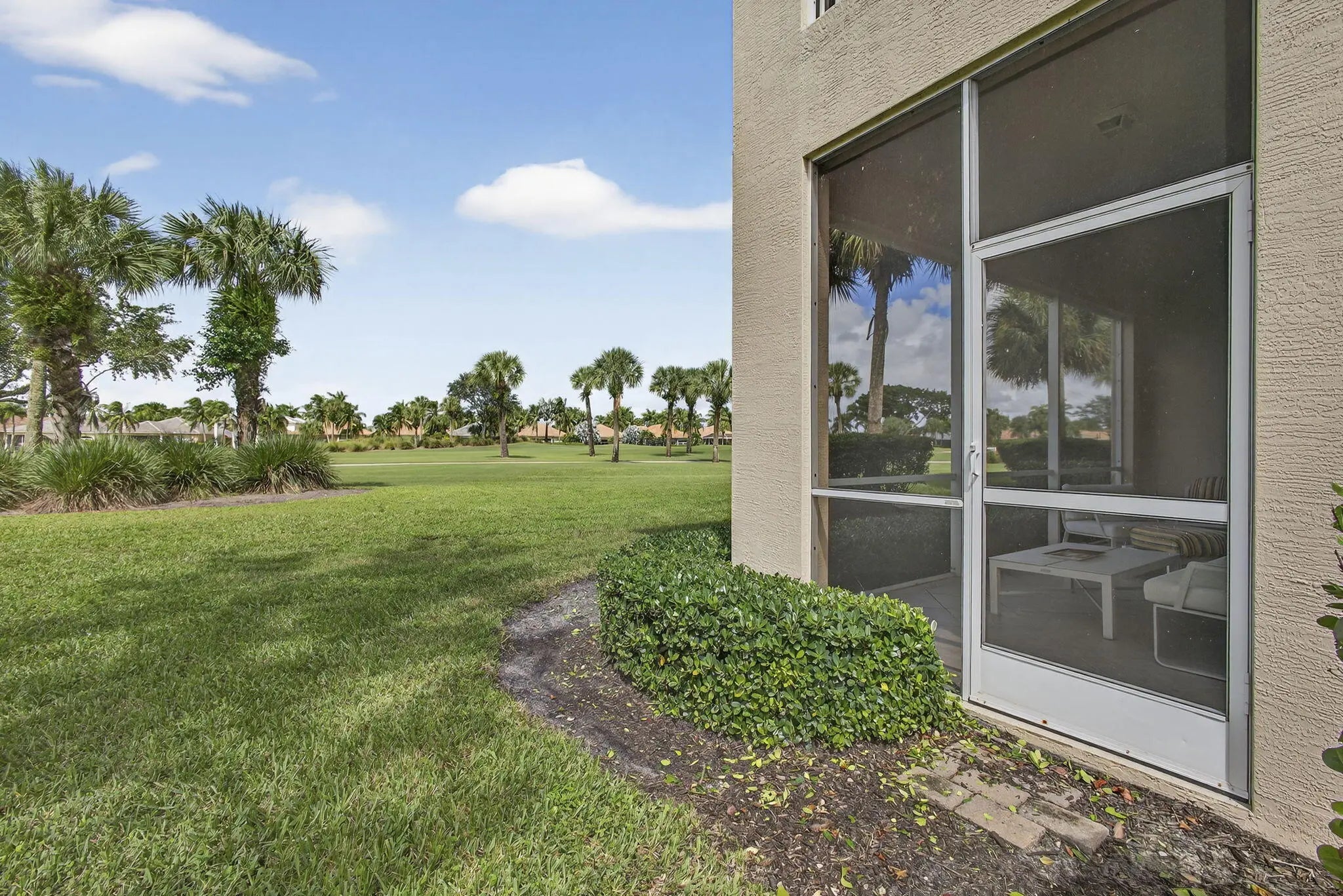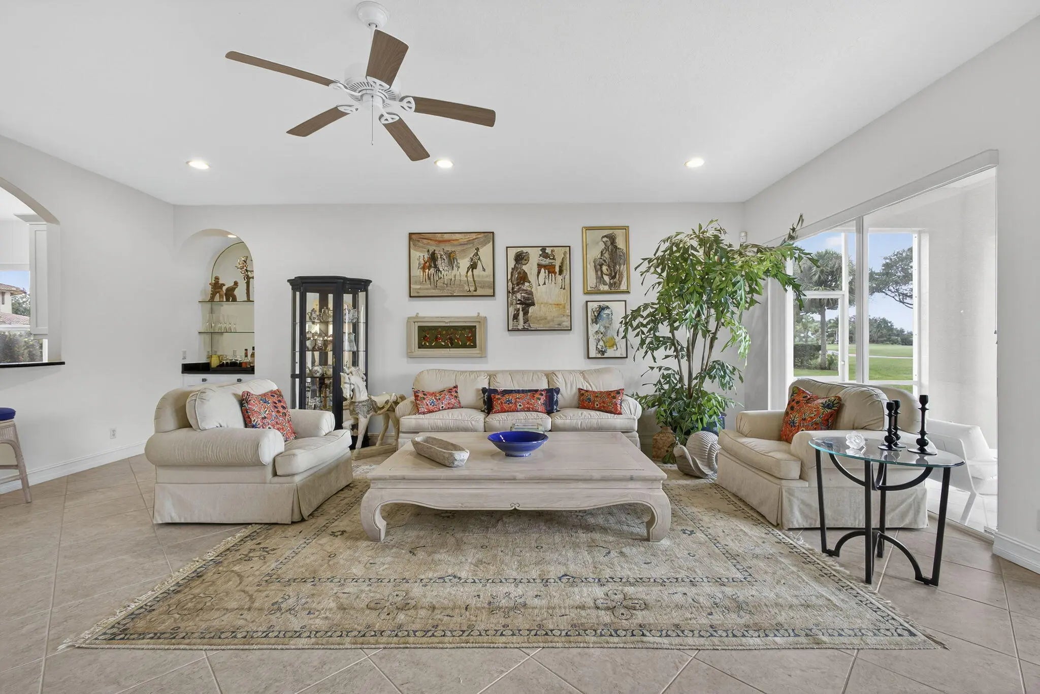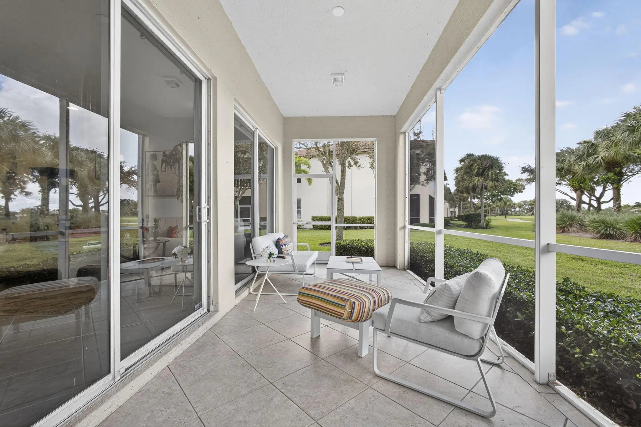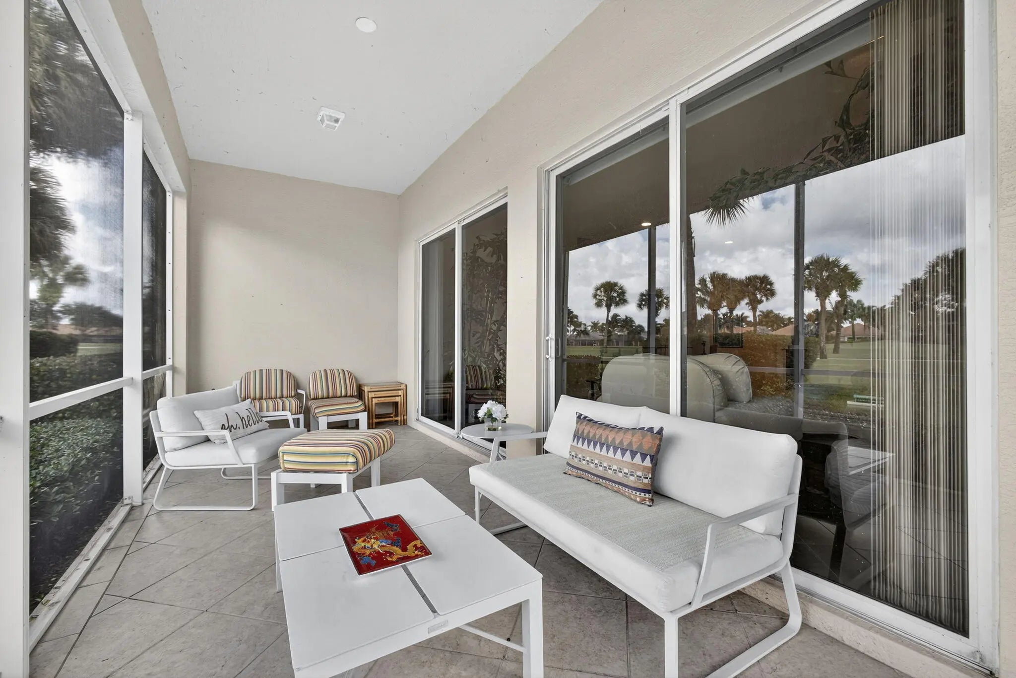 New to the market this beautifully appointed 2-bedroom, 2- bathroom +den condo offers the perfect blend of comfort, style & resort living. IMPACT WINDOWS throughout! You are greeted by an open, sunlit floor plan that flows effortlessly towards views of the golf course. The den provides a flex space-ideal for an office,TV room or guest bedroom. The renovated kitchen has been refreshed with new cabinets and top of the line LG appliances. Both bedrooms feature brand new carpeting while both bathrooms have been updated. The primary bath impresses with a fameless shower door, new cabinets , counter tops, toilet & custom mirrors. IMPACT WINDOWS throughout ensures peace of mind, while a separate laundry room with newer washer & dryeradds convenience. A 2 car attached garage for easy entry
