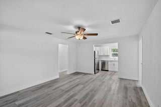 NEW ROOF!Welcome home to this charming 3-bedroom, 1-bath single-family residence with no HOA in Riviera Beach. This move-in-ready property features updated wood laminate flooring throughout, an open-concept kitchen with stainless steel appliances, and a split floor plan offering comfortable privacy. The spacious laundry room provides potential to easily add a second bathroom if desired. Freshly painted inside and out, this home combines comfort and convenience with a brand-new roof currently in the permitting process.