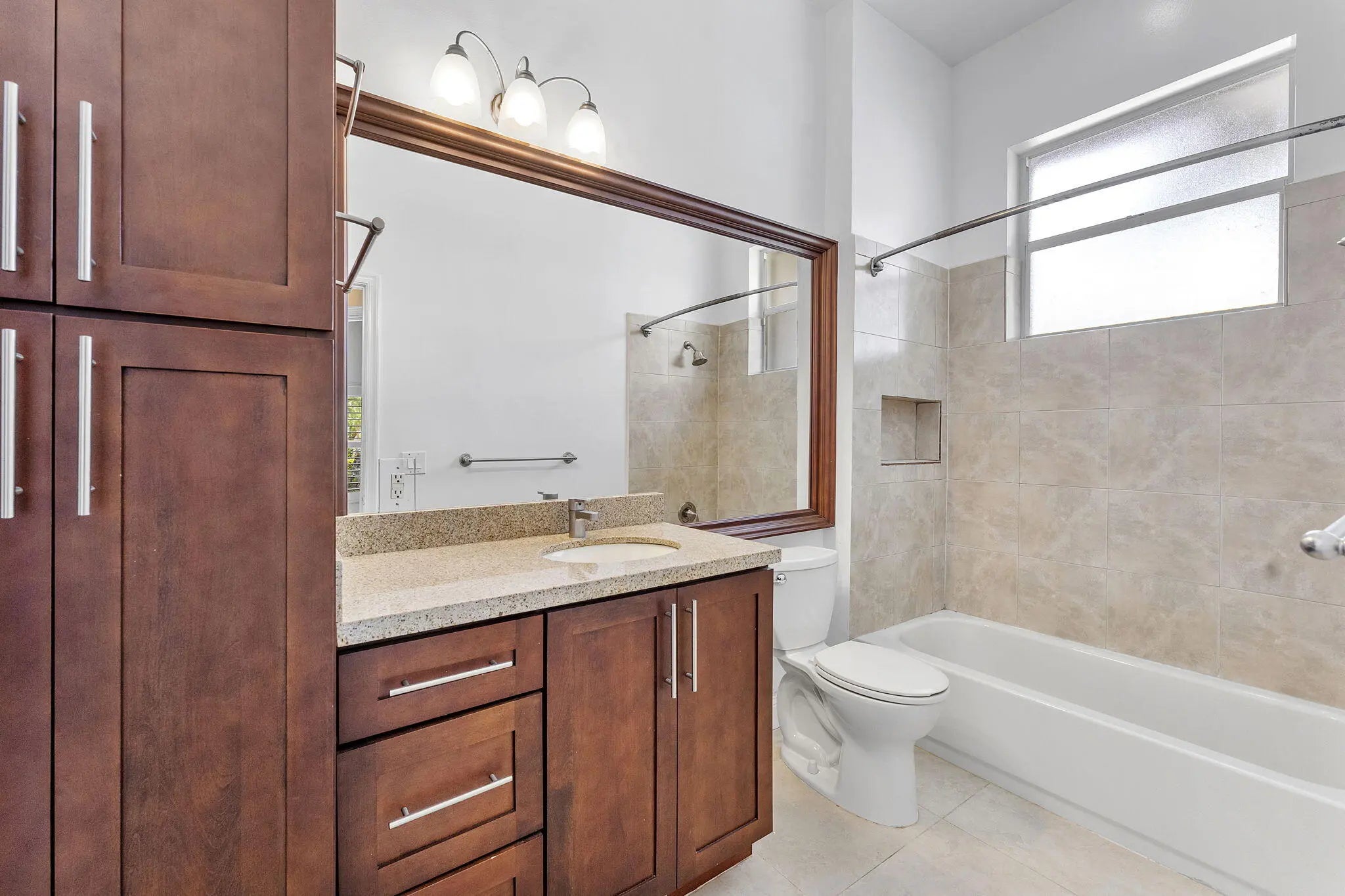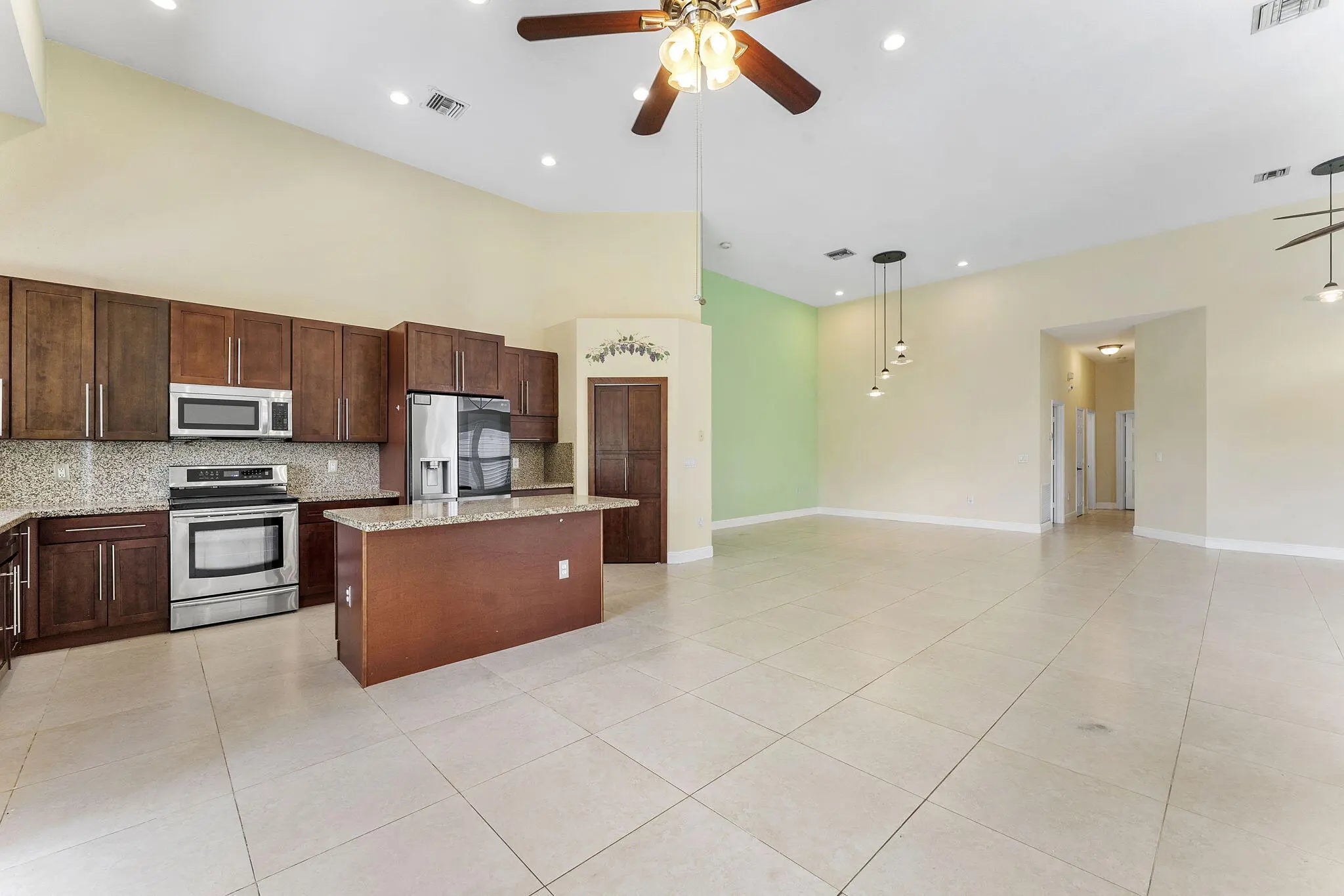 **New Roof 2022**Welcome to this beautifully maintained 3-bedroom, 2-bathroom single-family home, quietly nestled in a rare, intimate community of just 55 homes perfectly positioned away from the hustle and bustle of Sample and Rock Island Roads. This is where privacy, peace, and comfort meet. From the moment you arrive, the charming curb appeal and mature shade trees draw you in. Step inside to discover soaring vaulted ceilings, a spacious open layout, and oversized tile flooring that flows seamlessly throughout the main living areas. The gourmet kitchen impresses with granite countertops, rich wood cabinetry, stainless steel appliances, and a center island with bar seating ideal for everyday living or entertaining guests.