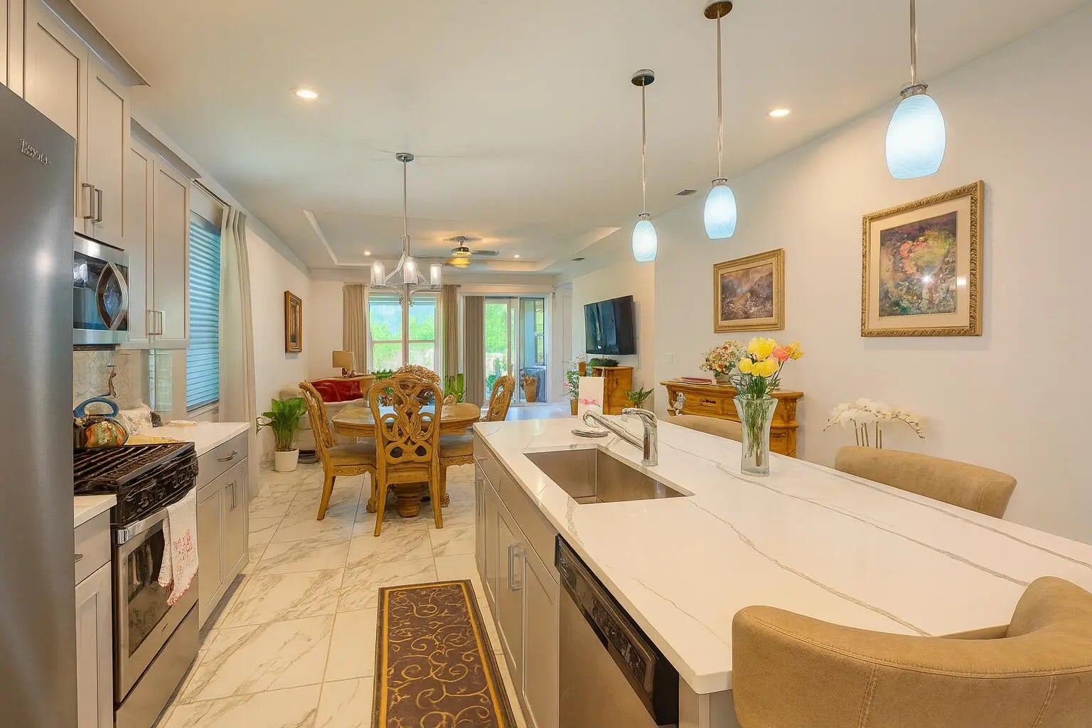 8997 SW Remy LanePort Saint Lucie, FL 34987 A STANDOUT FIND. LOVINGLY MAINTAINED AND UPDATED 3 BR/2 1/2 BA/2 CG 2023 (CBS CONSTRUCTED) SINGLE FAMILY HOME W/ FLEX ROOM, NESTLED IN PRIVACY ON A QUIET CUL-DE-SAC LOT! Just a house on one side and landscaped berm on the other. Located in the beautiful gated community of Kenley at Tradition, in the heart of Port Saint Lucie's sought-after Southern Grove Area. This inviting home offers nearly 2,000 sq ft of bright living area blending modern comfort and easy Florida living. Lots of special features including oversized decorative mirror in the spacious Owners' suite and plantation shutters in the shower area, custom cabinetry in the laundry room, premium hurricane impact windows throughout, a generous 260 sq foot