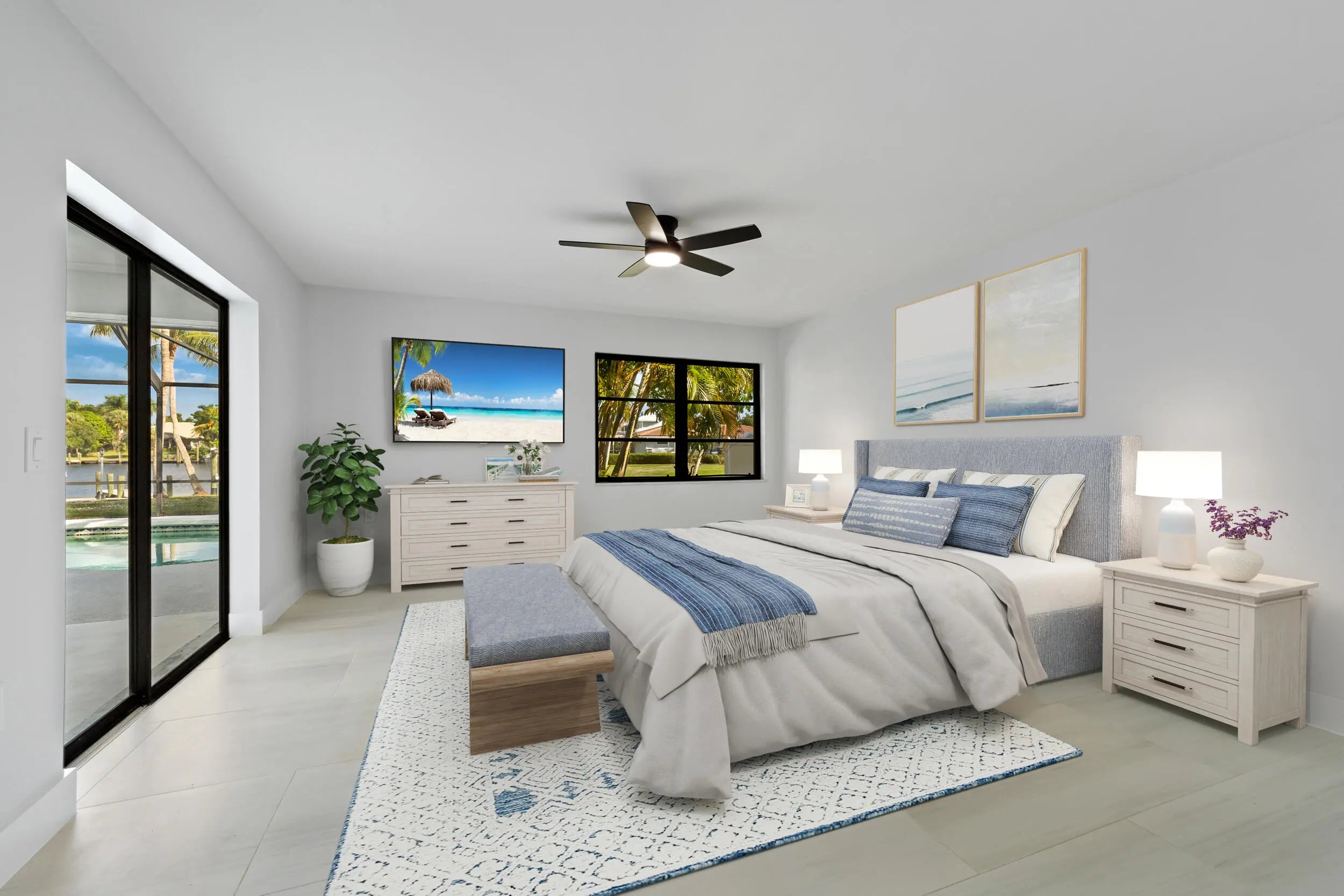 Beautifully renovated waterfront home in Beau Rivage with ocean access. This spacious 4-bedroom, 3-bath residence features two master suites, updated kitchen and baths, and stunning 36''x24'' tile flooring throughout. Enjoy open living spaces that flow seamlessly to the private screened-in pool and patio, perfect for entertaining or relaxing by the water. Storm protection includes a combination of accordion shutters and impact features for peace of mind. Nestled in a quiet community with an HOA of only $100 per year, covering lawn care in the medians. The community is in the process of upgrading to city water and city sewer. Move-in ready and just minutes from the ocean by boat, Florida waterfront living at its finest!