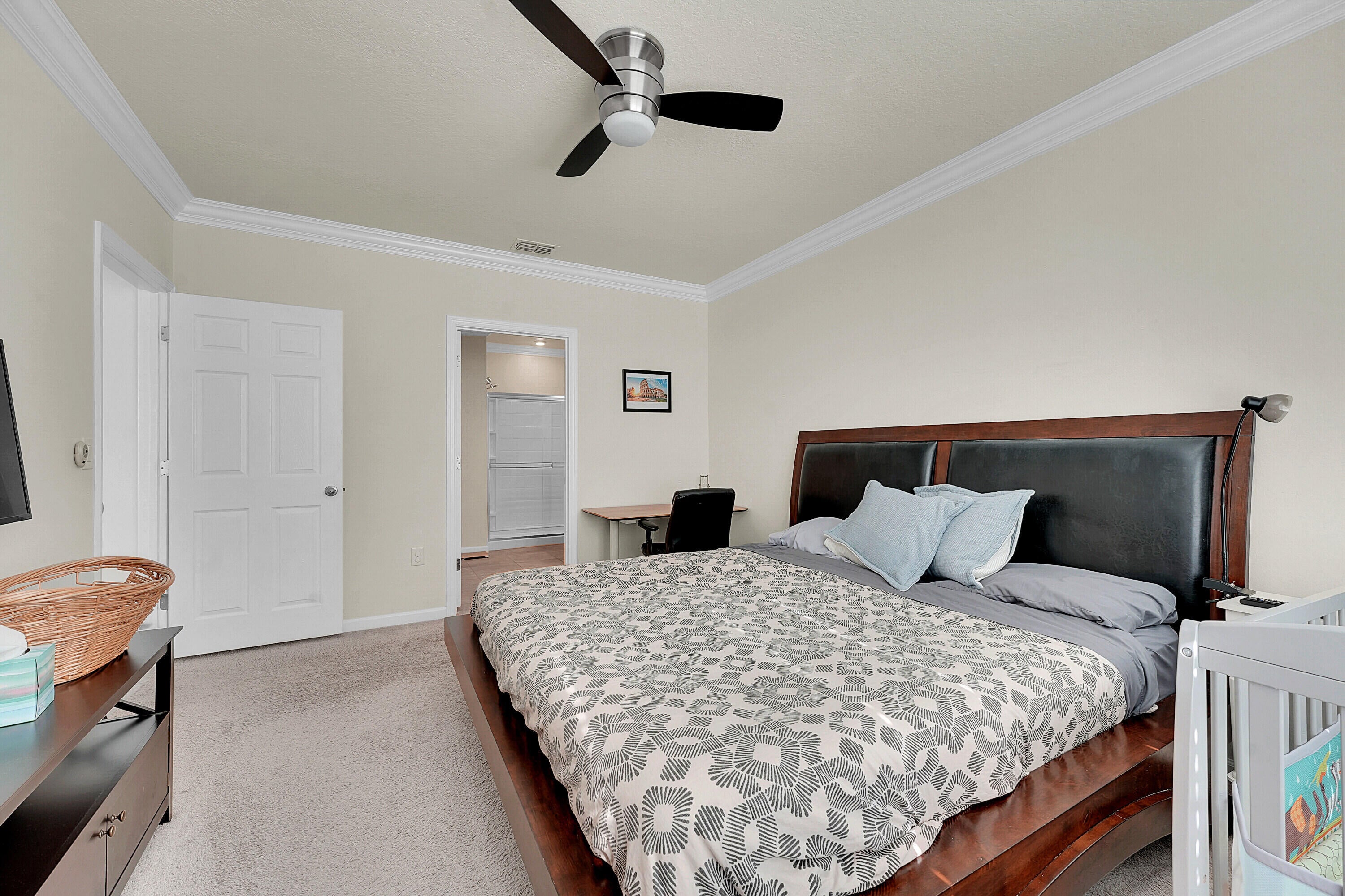 Discover modern comfort and serene lake views in this stunning 4 bedroom, 2 bathroom home built in 2019, located in the highly sought after Millstone South community. This beautifully maintained residence offers a split floor plan that perfectly balances privacy and open concept living. The kitchen is a showstopper, featuring custom quartz countertops, rich wood cabinetry, and premium finishes that make it ideal for both everyday living and entertaining. Elegant crown molding runs throughout the home, adding a touch of sophistication to every room. Wake up to peaceful lakefront views and enjoy outdoor living on your private patio, perfect for morning coffee or sunset gatherings. Amenities include a pool, clubhouse, basketball, pickleball and tennis courts.
