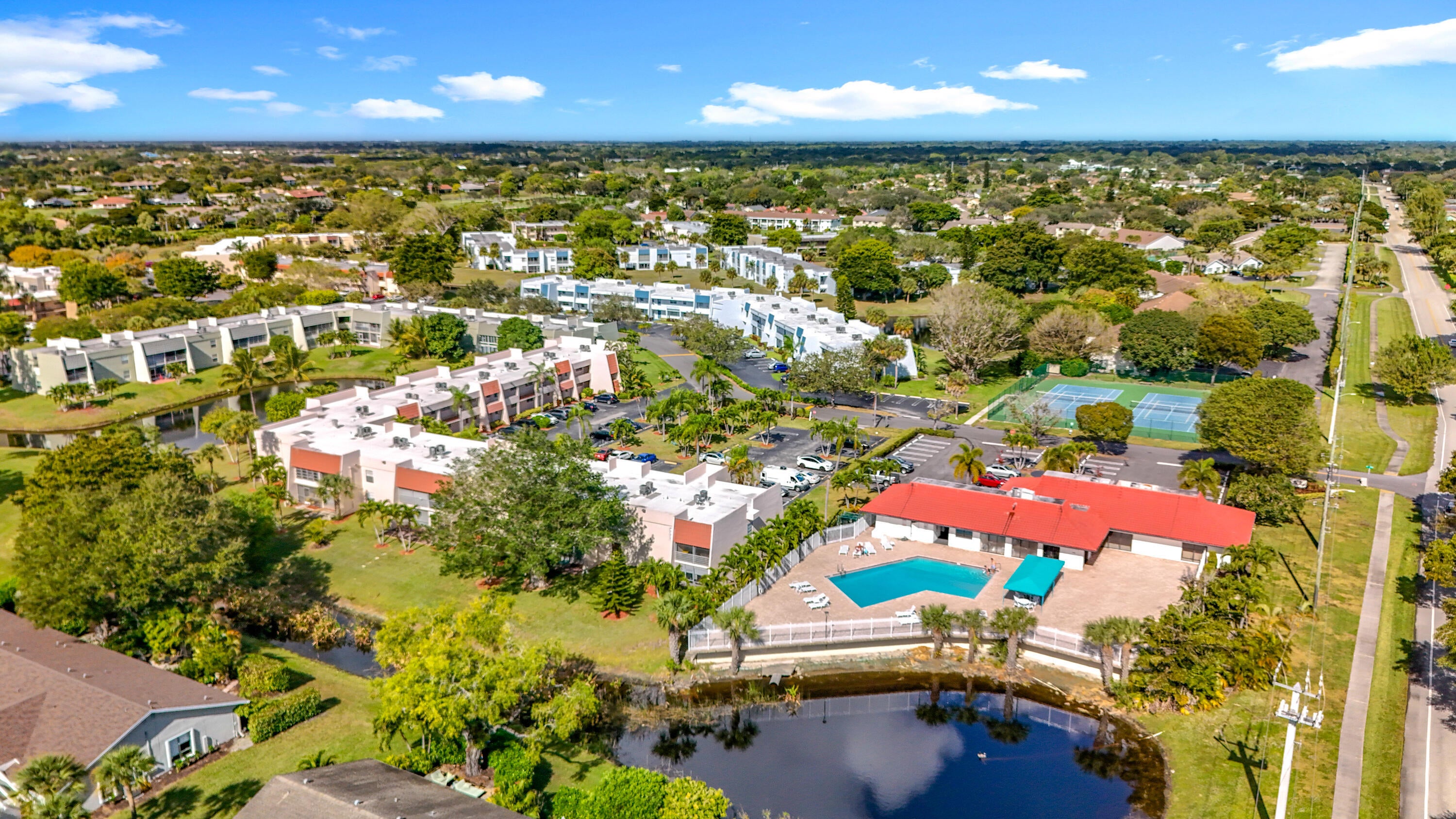 Beautiful 2-bedroom condo in desirable Lago del Rey! This cozy and spacious condo, features a split-bedroom floor plan and an enclosed Florida room ideal for relaxing or entertaining. Updates include newer laminate flooring in the kitchen and living areas and a recently renovated primary bathroom. Convenient in-unit washer and dryer and a 2-year-old A/C add comfort and peace of mind. New Roof 2020. Prime location next to the clubhouse and tennis courts, just minutes from Atlantic Avenue, the beach, and I-95. Enjoy the best of East Delray living!