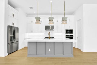 Step into sophistication with this brand-new 2025 construction home -- never occupied and designed for modern living. Featuring 3 bedrooms, 3 full baths, a versatile flex room, open den, and a 2-car garage with a 4-foot extension, this residence blends elegance, functionality, and comfort.The oversized gourmet kitchen is a true centerpiece, showcasing a gas cooktop, wall oven, 3'' Cambria Quartz countertops, designer hood vent, walk-in pantry, and premium finishes throughout. The owner's suite offers a peaceful retreat with preserve views, a coffered ceiling, spa-style shower with floor-to-ceiling tile, and a massive custom walk-in closet with a laundry room pass-through for added convenience.Luxury flooring flows seamlessly through the open-concept layout, while oversized