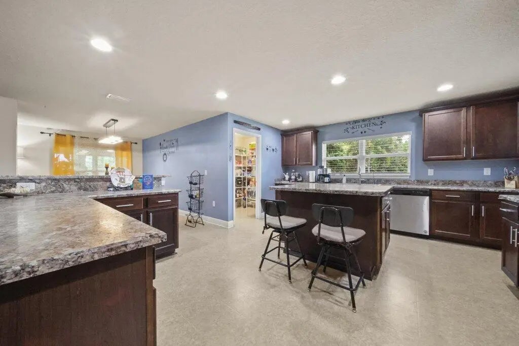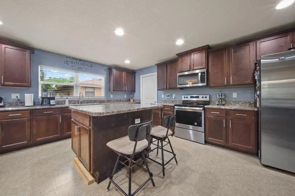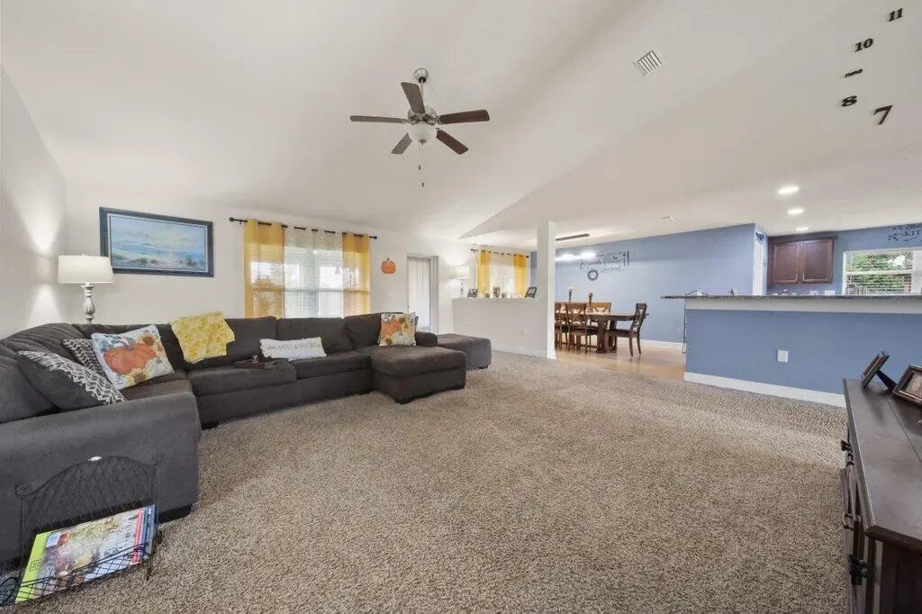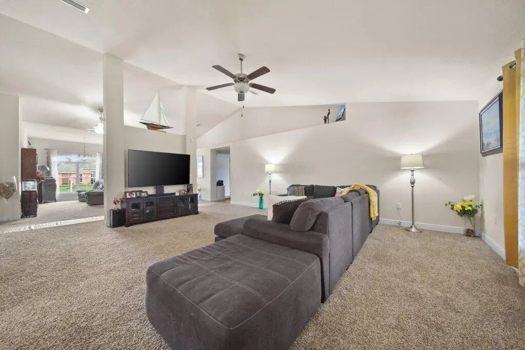 Immaculate 4-bedroom, 3-bath CBS home offering over 3,000 sq ft of living space in the desirable Port St. Lucie Lyngate area. From the moment you enter, you are welcomed by a spacious open floor plan with vaulted ceilings and beautiful natural light. The chef-inspired kitchen features upgraded cabinetry, a large center island, breakfast bar, and a butler's pantry that provides exceptional storage and convenience. The primary suite offers a relaxing retreat with dual sinks, a soaking tub, and a separate walk-in shower. The split-bedroom layout adds privacy for guests or family. Step outside to a fenced backyard with multiple tropical fruit trees, creating a peaceful outdoor oasis with room to add your dream pool.