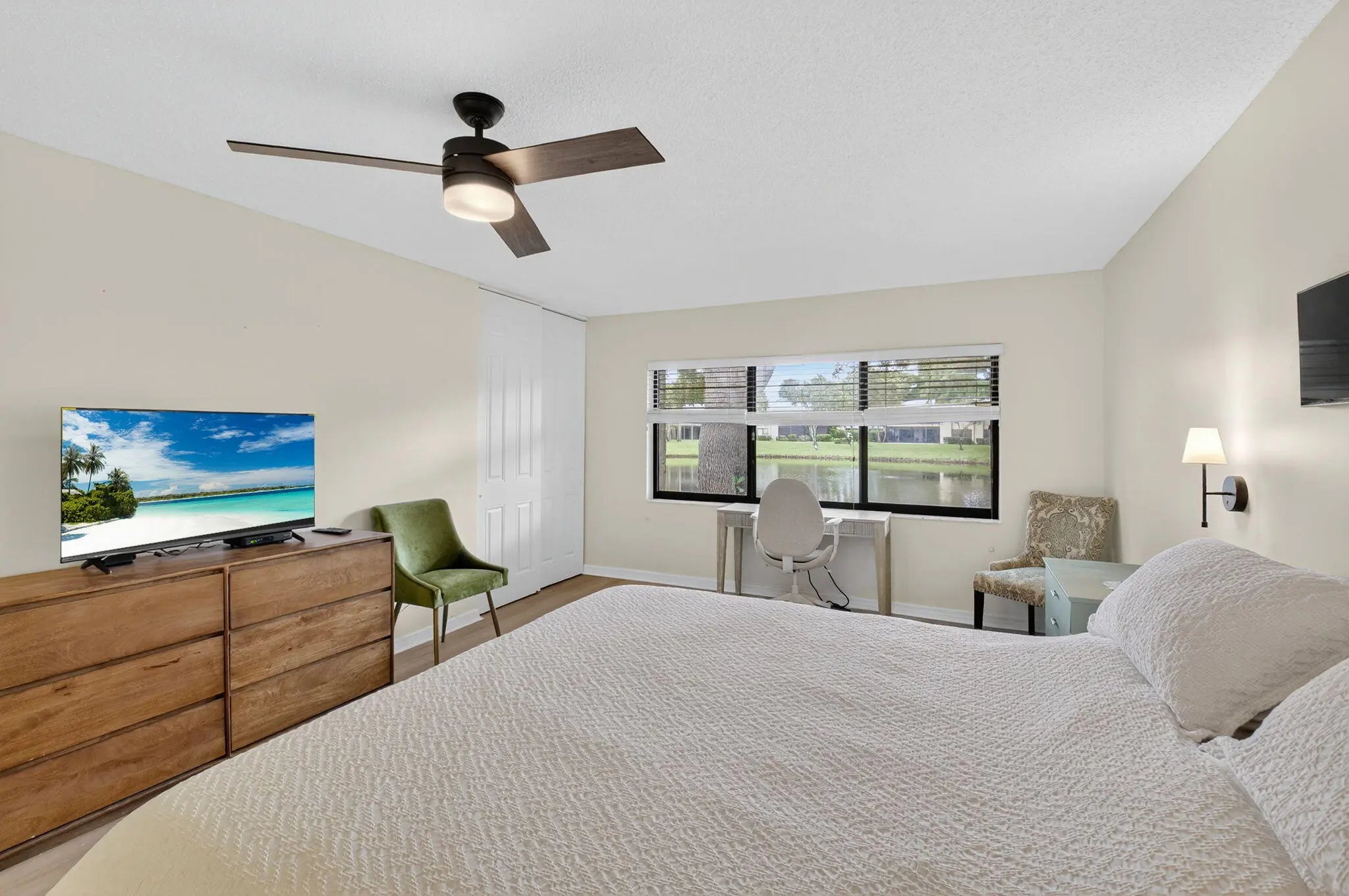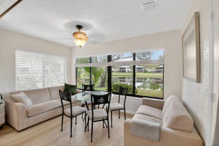 Welcome to this rarely available first-floor corner VILLA at Hunters Run, offering 2 bedrooms and 2 bathrooms in a bright 1,760 sq ft setting. Step inside to vaulted ceilings and an open living area flooded with natural light. The OPEN CONCEPT remodeled eat-in kitchen is perfect for both everyday meals and entertaining, . Quartz counters, soft closing doors & drawers, large breakfast bar. With generous closet space and private golf-course views, this residence combines comfort and lifestyle in one of Boynton Beach's premier gated country-club communities. Residents of Hunters Run enjoy access to three championship golf courses, well-equipped tennis and pickleball facilities, full-service spa and fitness center, fine and casual dining options, and a lively social calendar.