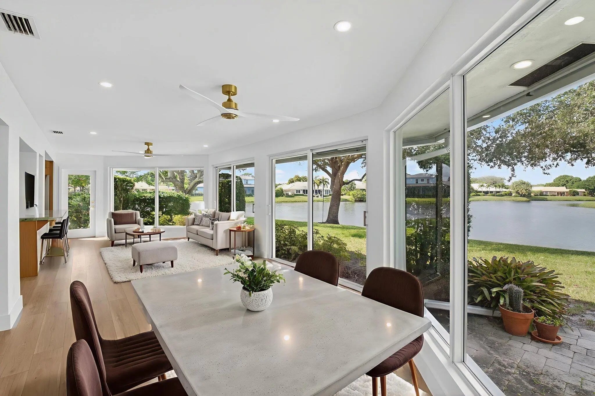 Welcome to a beautifully remodeled single-family home in the Slash Pine Villas section of Delray Dunes. Wait until you see the incredible views of the lake surrounding the back of the home. With North Northwestern exposure, the water and large shade trees guarantee amazing sunsets. From the moment you enter the new front door you will be delighted by the modern farmhouse finishes throughout. The new impact windows give generous light throughout the home and the new flooring, trim, doors and recessed lighting are designer perfect for the floor plan. The gourmet kitchen is a chef's dream, outfitted with new stainless steel appliances, beautiful custom euro wood cabinets topped with custom quartzite counters and Italian tile backsplash, plus a hidden microwave and pot filler faucet over