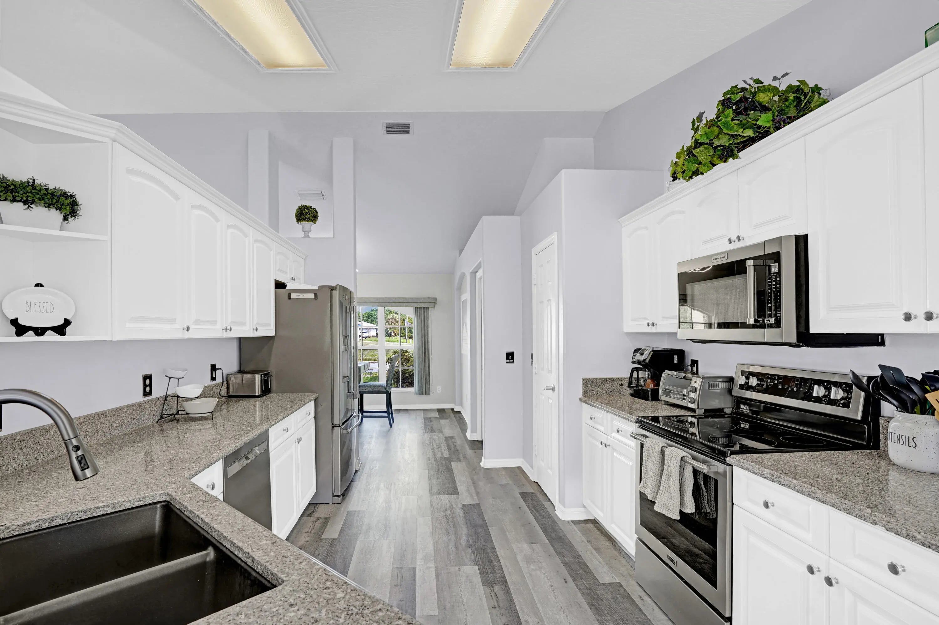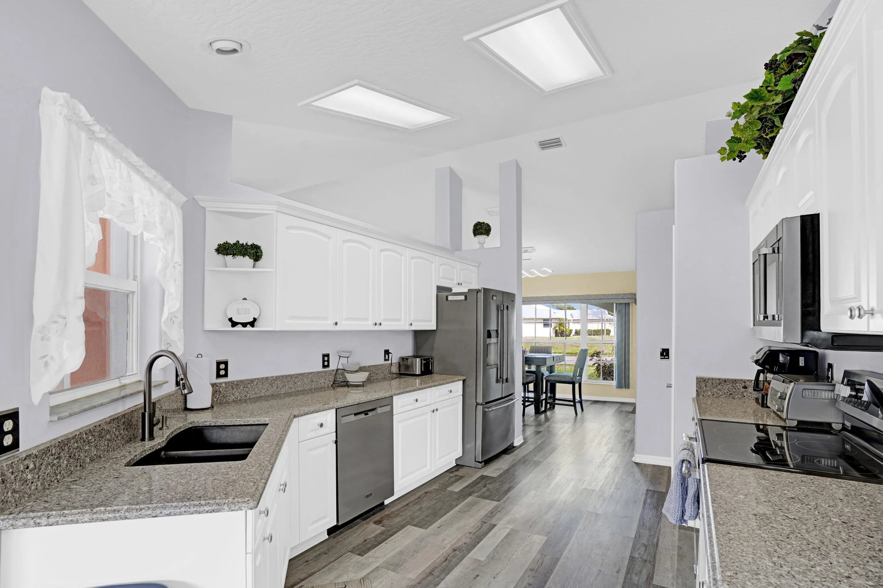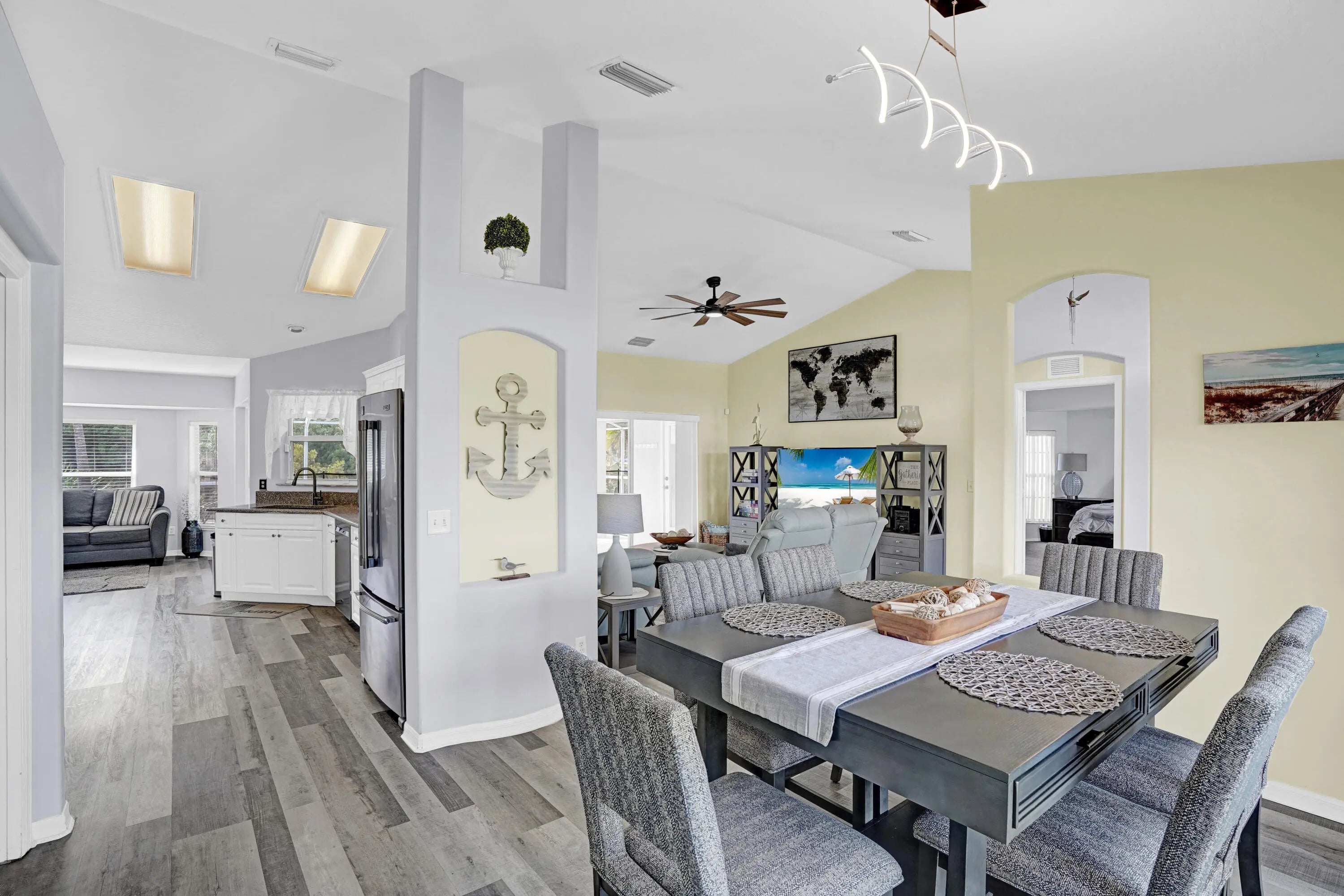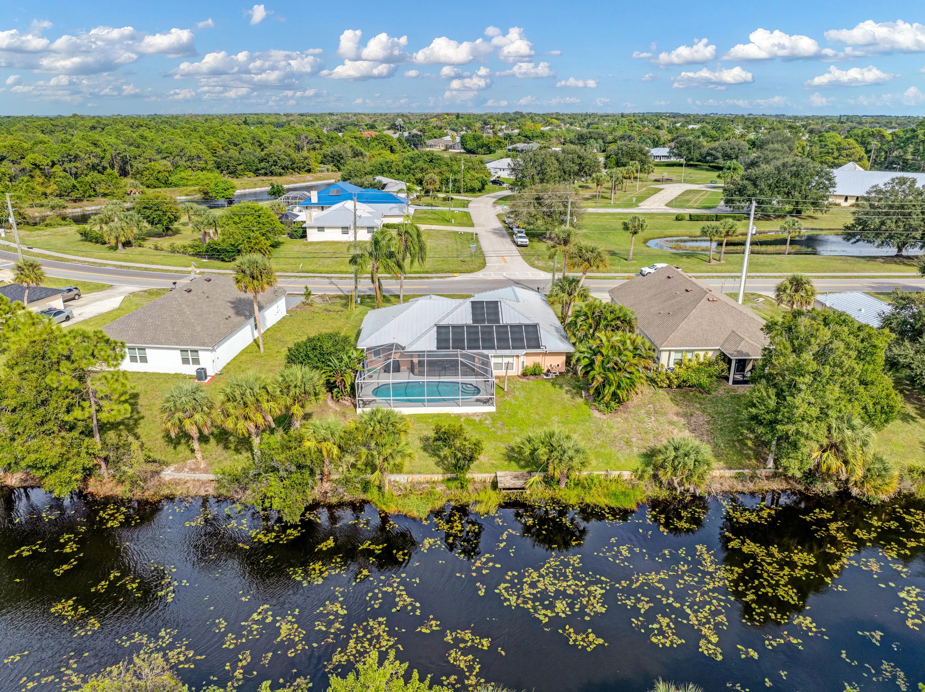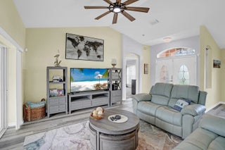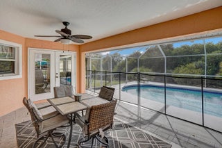 This property has it all! Waterfront home with 3 Beds, 2 Baths, a swimming pool and your very own dock. NO HOA! Previously offered as an Airbnb. Gorgeous custom built home with plank flooring, vaulted ceiling and spacious bedrooms and bathrooms. Kitchen features white cabinetry, granite counters and a flexible area that could be an eat in kitchen, office or family room. Experience privacy with no rear neighbors and enjoy the scenic views of the water, lush landscaping and pool. Screened in pool offers plenty of space for lounge chairs and a covered area perfect for an outdoor living or dining area. Enjoy fishing with the convenience of your own dock along the canal. Peace of mind with a newer metal roof.