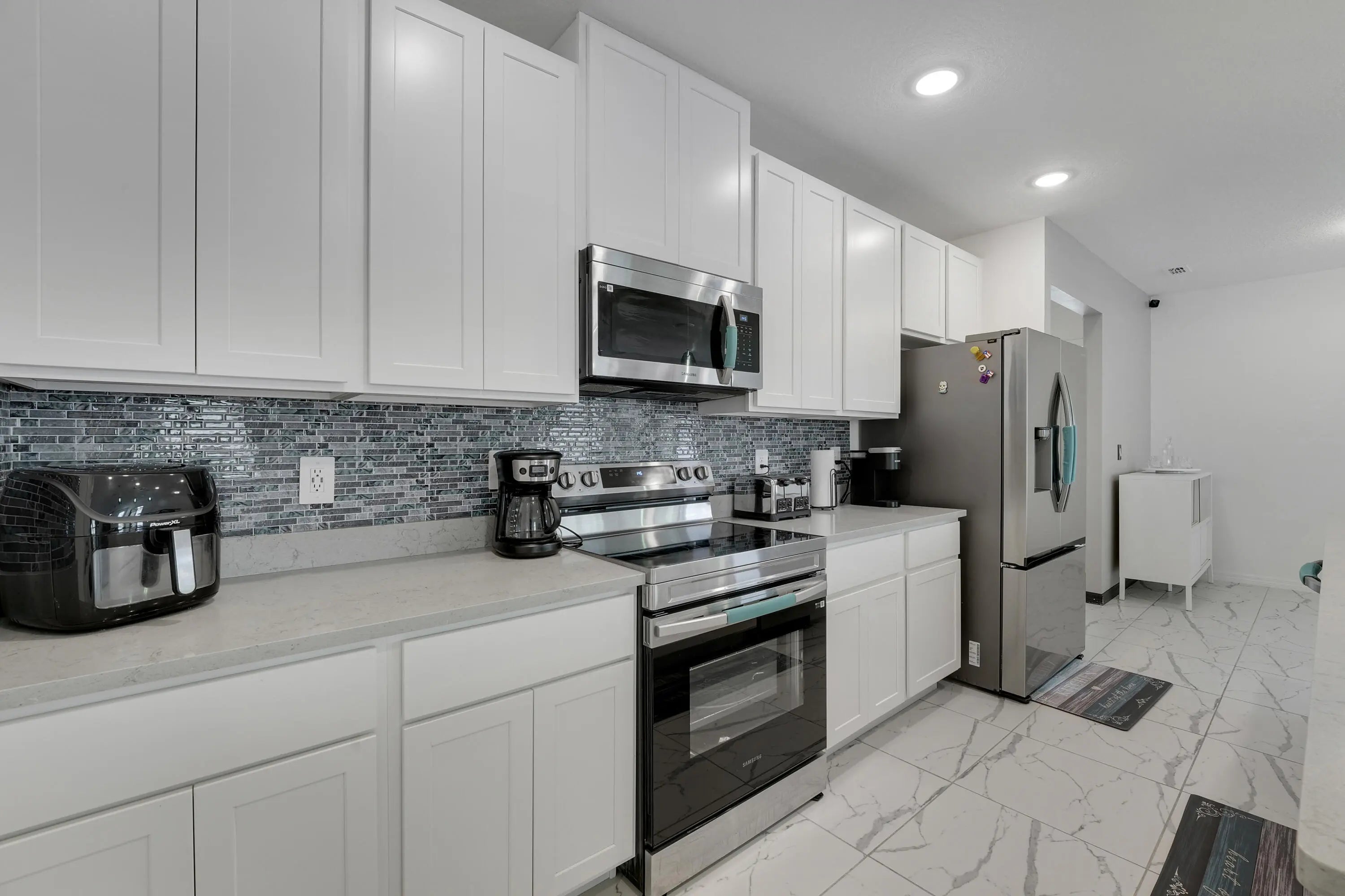 2024 Maranda Homes build featuring 4 bedrooms, 2 full bathrooms, and a 3-car garage with no HOA. This move-in-ready home offers quartz countertops, stainless-steel appliances, a spacious laundry room, and smart-home features including a smart thermostat, smart lock, and security cameras. Enjoy a fully fenced yard with room for a pool and hurricane-panel shutters for added protection. Conveniently located near major roadways, shopping, dining, parks, schools, and Port St. Lucie amenities.