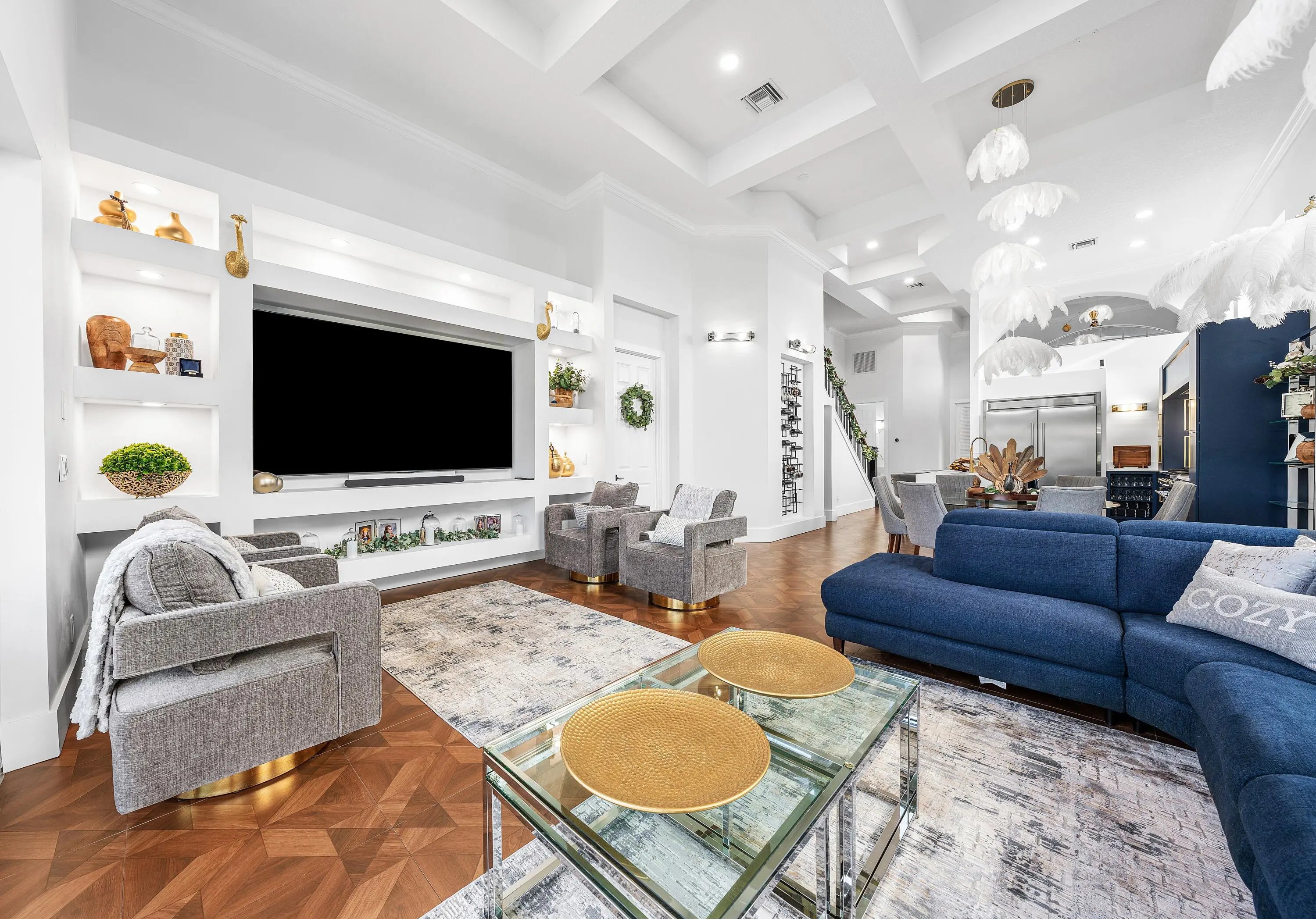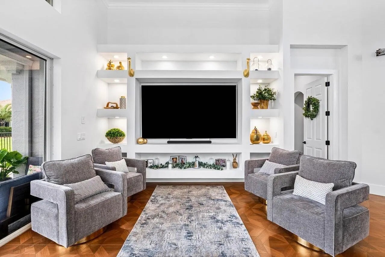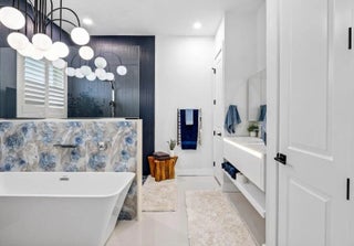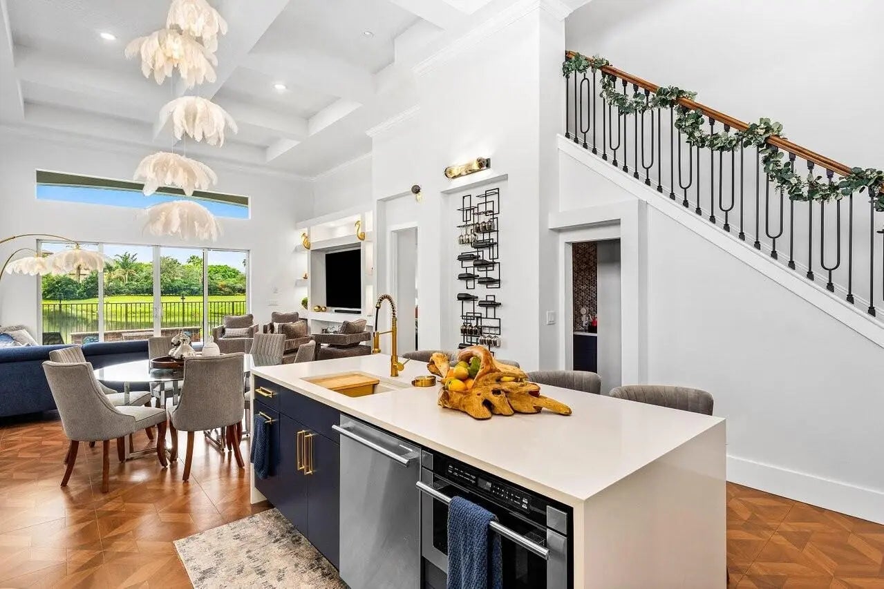 NO MEMBERSHIP REQUIRED! Water view, modern 4 bedroom, 4.5 bath smart pool home in Tesoro Golf community. Fully renovated with all-suite bedrooms, chef's kitchen w/8-burner natural gas stove, quartz waterfall counters, touchless faucets, cup washers, walk-in pantry & laundry. Custom baths, antimicrobial levers, smart charging outlets and lighting, Alexa displays, built-in new 98'' smart TV w/sound bar. Integrated Roborock vacuum/mop system. 2 new HVACs w/HEPA & halo sanitation.Newly resurfaced salt pool, waterfall, new filter and natural gas heater. Epoxy garage, EV charger with $38 monthly unlimited charging plan. Ring cameras/security. Home warranty and wind mitigation report for discount.