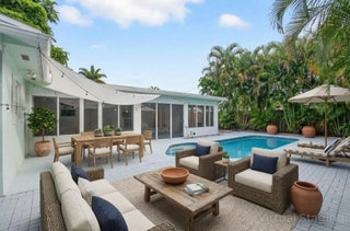 East Boca 4BR/2BA pool home on a corner lot - now $5,900/mo ANNUAL with lawn & weekly pool service included. The garage has been converted into a dedicated office/den with a separate storage room, providing excellent flex space. Surrounded by privacy hedges and mature palms, this home features impact windows, Kevlar hurricane screens, plantation shutters, tile flooring throughout (no carpet), and a circular driveway with ample parking. An expansive glass-enclosed Florida room with mini-split A/C offers additional space for work, play, or lounging. Inside, a split-bedroom floor plan, warm wood kitchen with stainless steel appliances and generous storage, and an updated indoor laundry/mudroom add comfort and convenience..