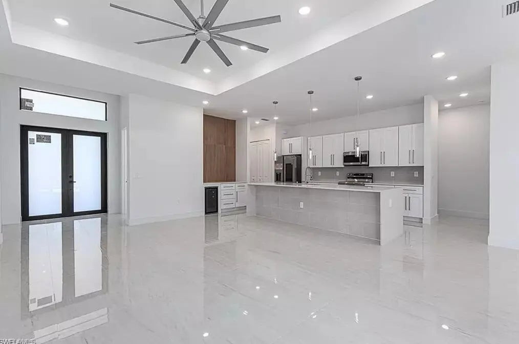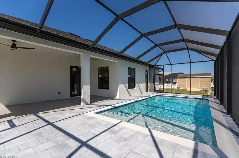 Motivated seller. Short sale opportunity. Bring your offer. This stunning 3-bedroom, 3-bathroom + office pool home in Northwest Cape Coral offers western exposure and modern luxury just minutes from the highly anticipated 7 Islands project. This is your chance to secure a beautiful contemporary home at a value due to the short sale status. Step inside to soaring ceilings, an open-concept layout, and a gourmet kitchen featuring stainless steel appliances, premium cabinetry, quartz countertops, and elegant porcelain flooring. The bathrooms are equipped with glass-enclosed showers and LED color-changing mirrors, while the master suite includes a spacious walk-in closet. Located in the desirable Burnt Store area. Offer must be approved by lender.