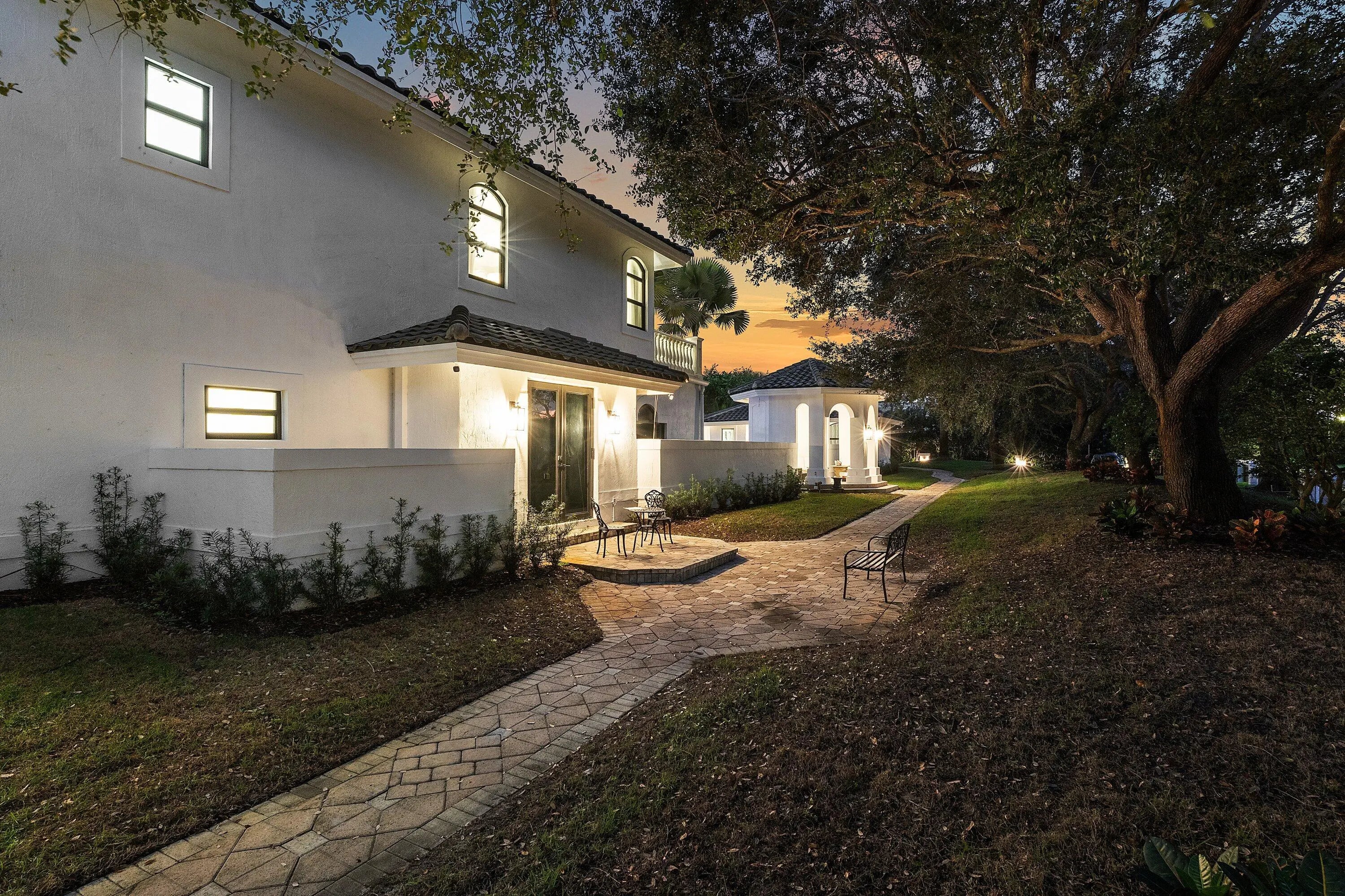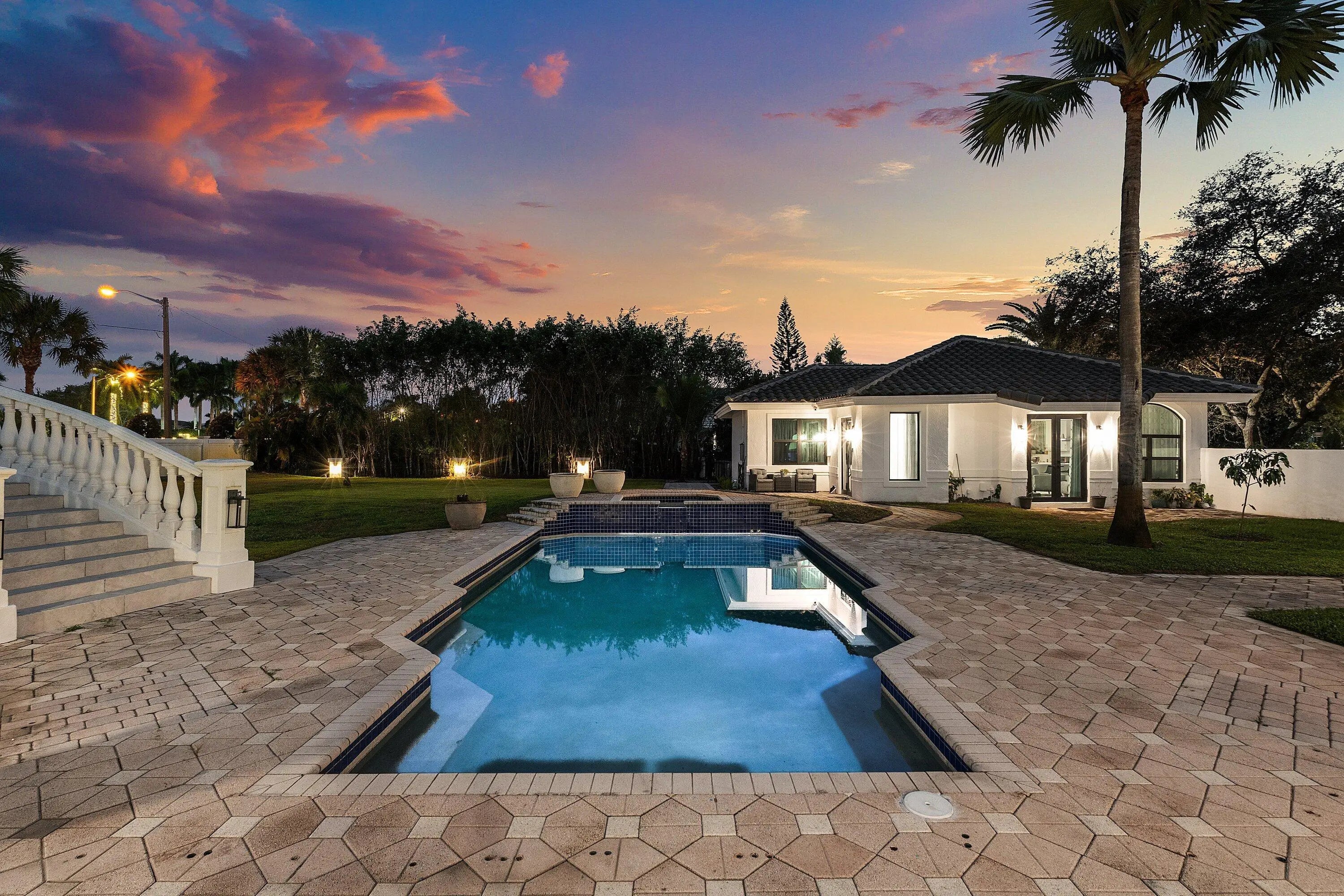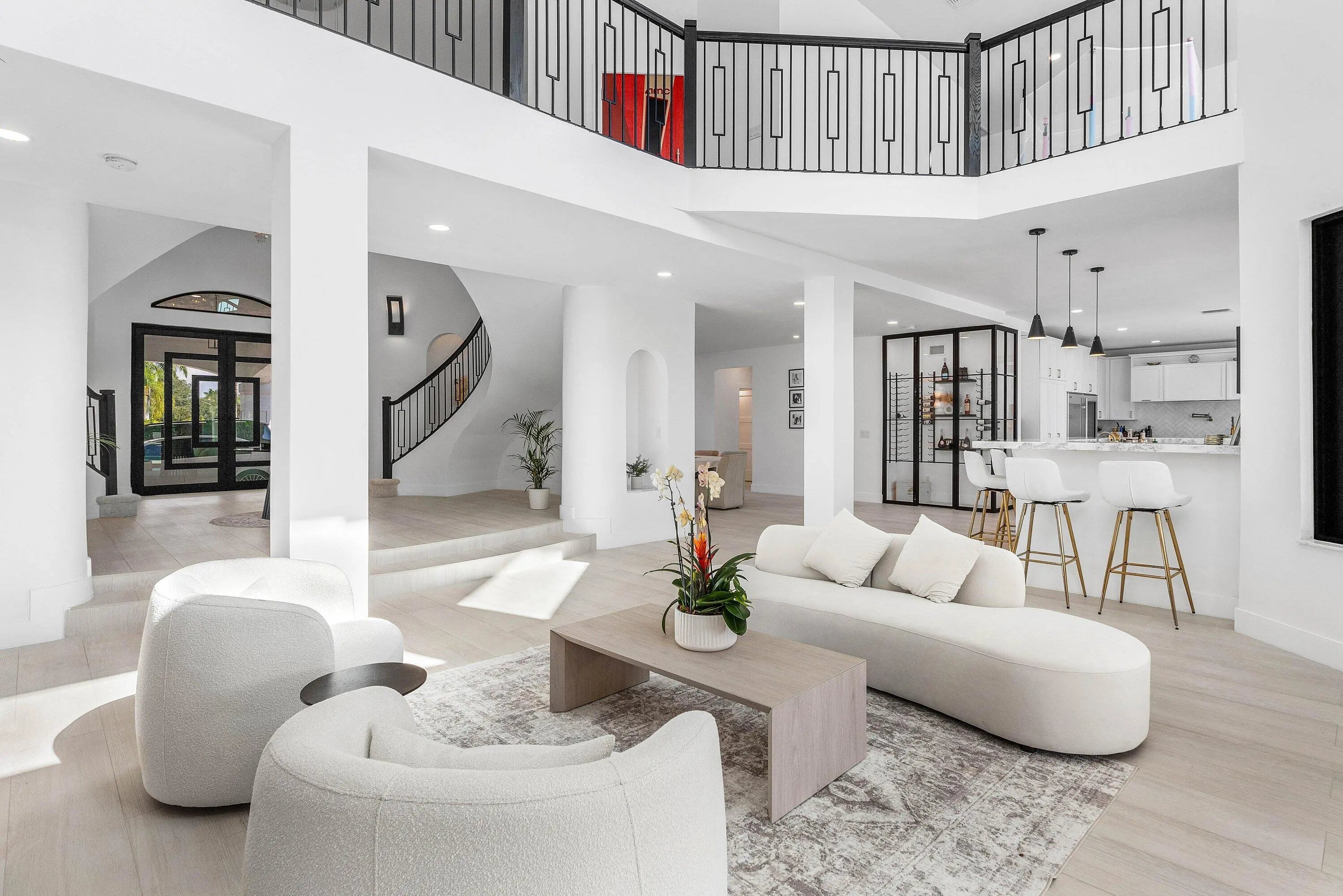 Beautifully reimagined & completely redone Interior, this 1.14-acre estate in the exclusive guard-gated community of Fieldbrook Estates blends timeless elegance with modern luxury. A grand tropical drive lined with Royal and Canary palms leads to a dramatic portico and soaring double-door entry opening to a magnificent foyer with a sweeping dual staircase. Expanded & enhanced throughout, 9BD & 8.2BA with exquisite finishes, custom ceilings, crown molding, state-of -the-art Home theatre, Gym, Sauna & a gourmet chef's kitchen with top-tier appliances. The spacious layout includes multiple living areas plus a beautifully finished 2-bedroom guest house with full kitchen, office, private driveway, & separate entrance. Minutes to A-rated schools, beaches, shopping,& fine dining, Crypto accepted