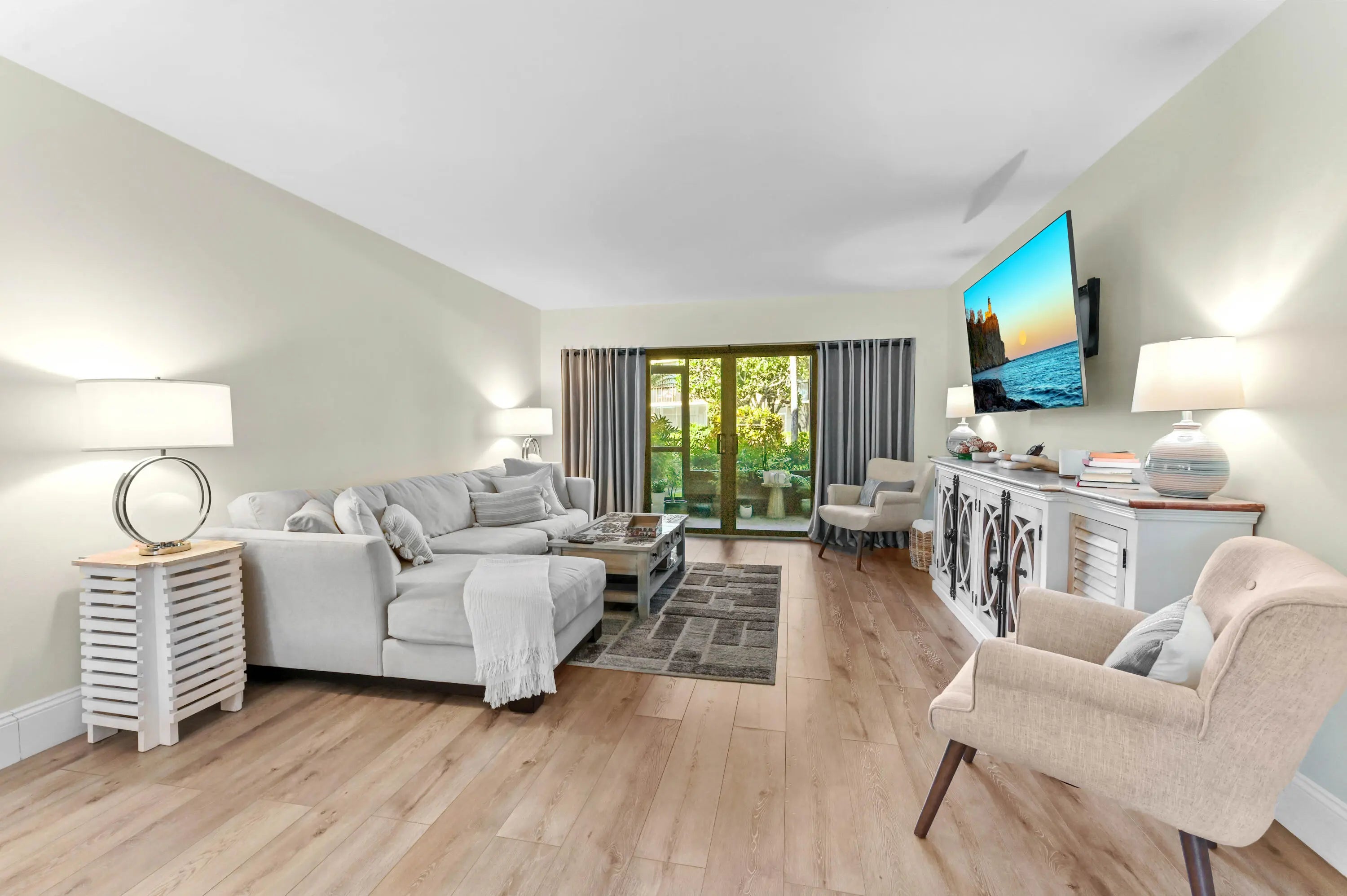 Discover the perfect opportunity to own your ideal retreat in this bright and spacious 2-bedroom, 2-bathroom condo. This unit is ready for your personal touch, featuring a functional kitchen with white shaker cabinets and a stylish tiled backsplash. The bright living area offers peaceful garden views and leads directly to a private terrace, ensuring a tranquil setting for relaxation. Enjoy the ultimate convenience of having a laundry closet with appliances right in-unit. Full impact windows throughout the unit.