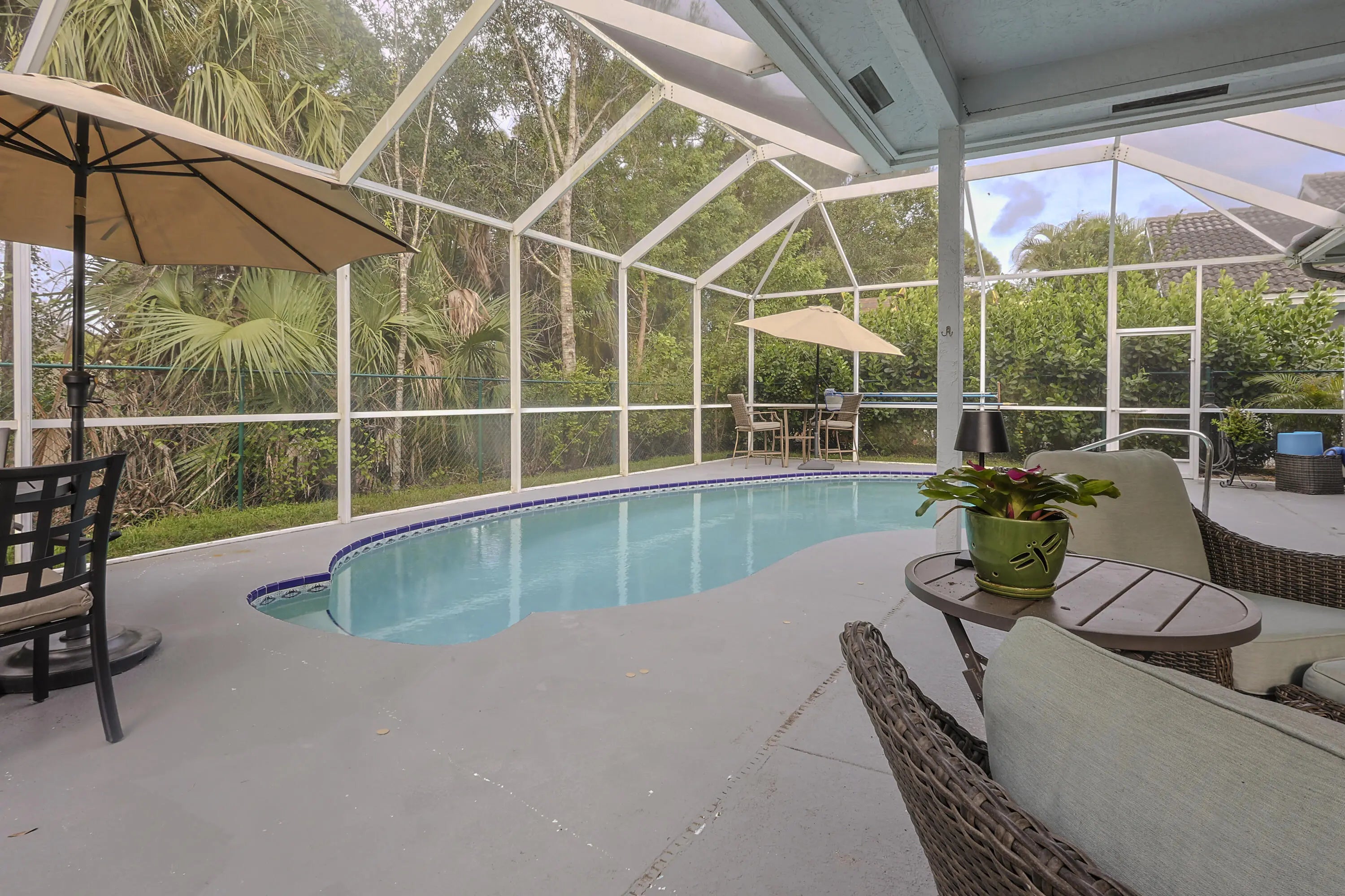 Priced to sell! Immaculate 3BR/2BA 2 car garage, CBS home with a brand-new 2025 tile roof with deluxe gutter system, 1,922 sq. ft .under air ,backing to a peaceful preserve and a fenced back yard. Features include a screened, heated pool (heater 2021), 2022 A/C system, newer water heater, accordion shutters, updated kitchen and baths, with white shaker cabinets, granite counters and SS appliances, Recessed Lighting, luxury vinyl flooring throughout. Master BR includes walk-in closet, Roman tub, shower, and dual sinks , that opens up to the pool and view of the preserve. Large Paver Driveway. Mariner Village is a gated community offering a pool, tennis, Pickle Ball, basketball, and a great location close to shopping and restaurants. Backyard fence is connected to neighbors fence.