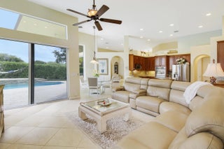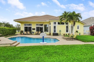 Come see this impressive waterfront pool home located in a gated boating community. This 4 bedroom (plus den/office), 3 bath home is on a deep-water canal with a dock (updated in 2020) and a 13K lift located behind the home with ocean access and no fixed bridges. Great outdoor living with a fenced backyard with an awesome heated saltwater pool and a Tiki Hut with a built-in outdoor style kitchen, lush landscaping and on a corner-lot add to a private setting. The interior of the home is nicely appointed with formal dining and living room and a large combo kitchen and family room. The kitchen was recently renovated with white quartz countertops, new custom cabinetry for ample storage and white tile backsplash. Large 3 bay garage allows for good storage. Both A/C units replaced in 2023. Who