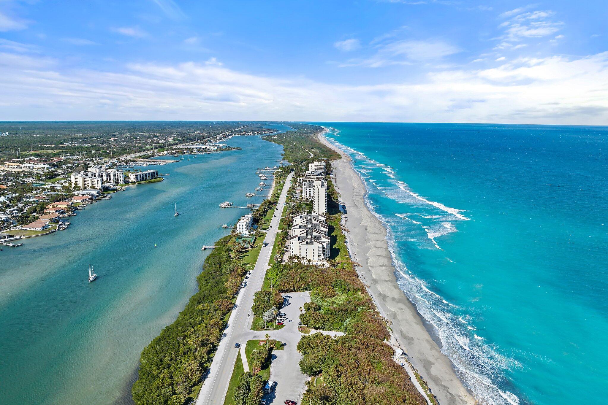 Jupiter is 12 miles north of Palm Beach Shores via I-95 and Rte. 706. Jupiter is one of the few little towns in the region not fronted by an island. Beaches here are part of the mainland, and Route A1A runs for almost 4 miles along the beachfront dunes and beautiful estates.