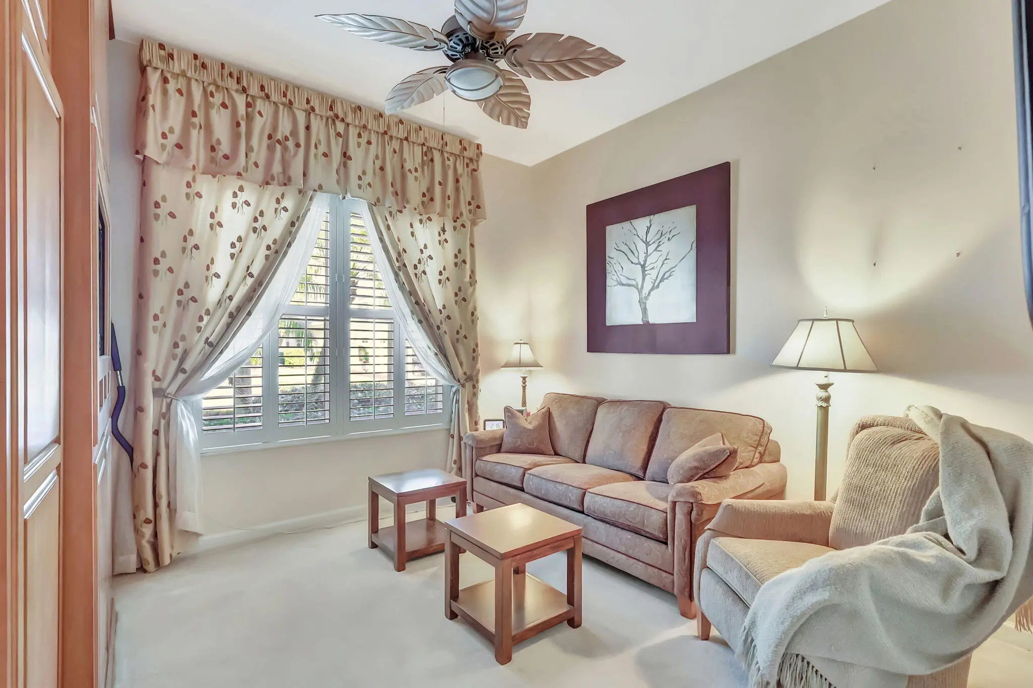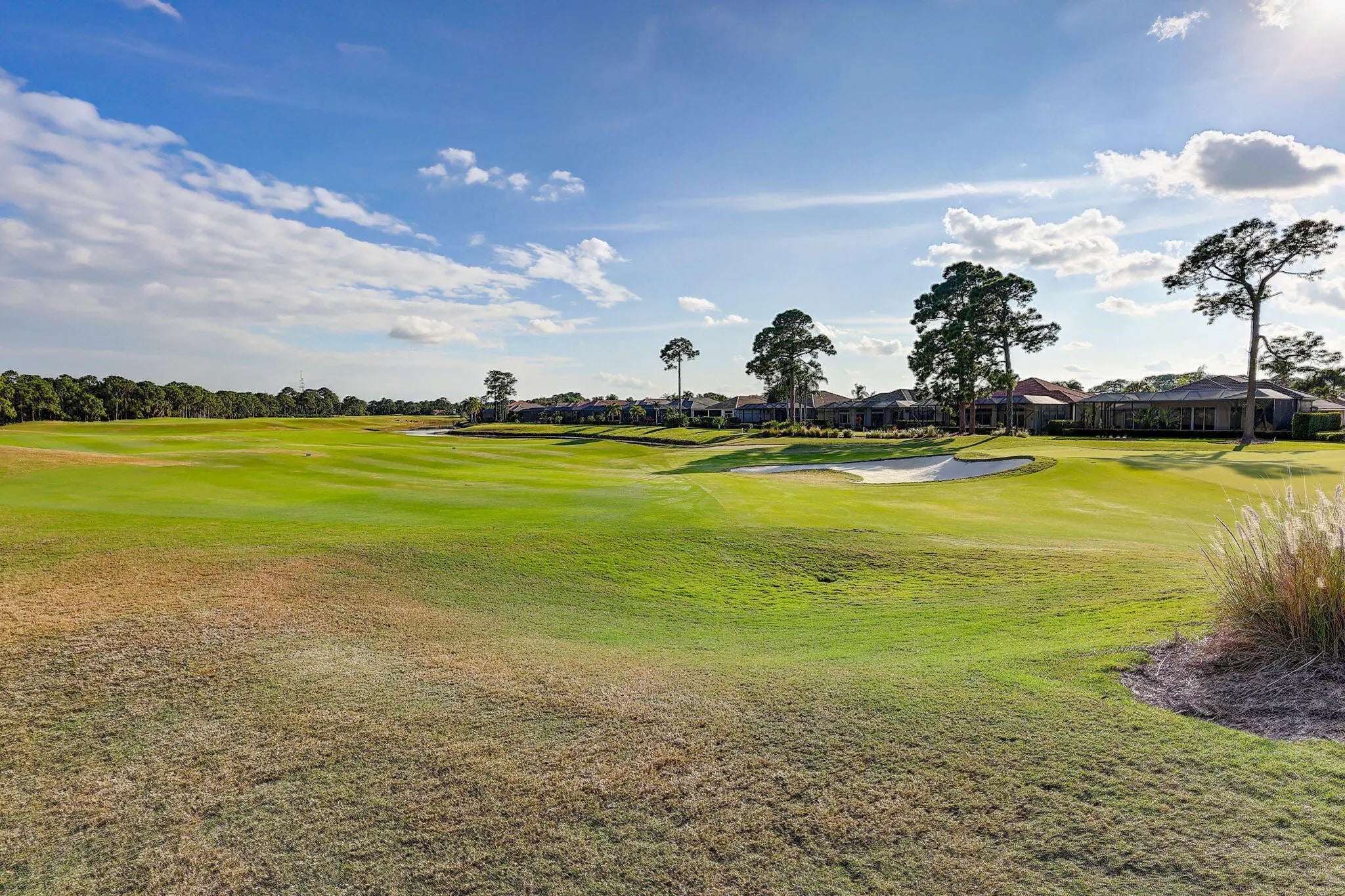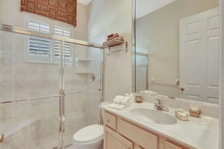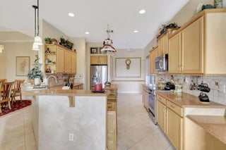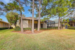 Embrace refined living in the heart of PGA Village, one of the Treasure Coast's most sought-after communities. This beautifully appointed home offers more than 2,100 square feet of thoughtfully designed space, blending timeless elegance with everyday comfort.A welcoming split-bedroom layout features three full baths, a powder room, and a sophisticated home office highlighted by custom floor-to-ceiling built-ins. The chef-inspired kitchen is the centerpiece of the home, showcasing rich granite countertops, stainless steel appliances, and an island ideal for gatherings.Designed for effortless indoor-outdoor living, the home opens to an oversized screened lanai with sweeping golf course and lake views. A serene backdrop for morning coffee, evening cocktails, or entertaining friends.