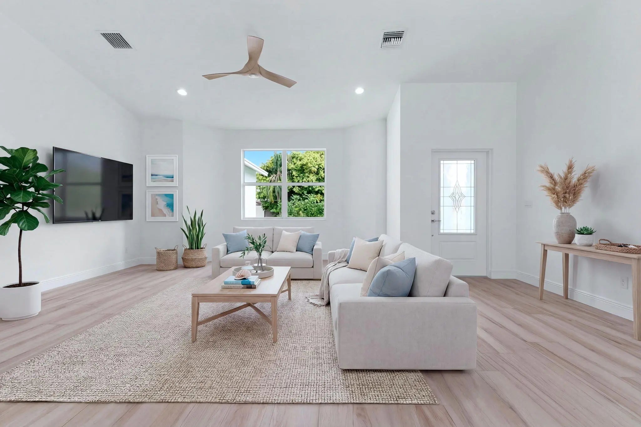 Brand-new 4-bedroom, 2-bath Coastal look home in desirable Sandpiper family friendly neighborhood. .NO HOA! Completed in January 2026. Impact windows, upgraded overhead garage door. Impact glass beveled glass entry door. Tile throughout. Spray foam attic insulation for efficiency. Upgraded interior doors and hardware. Solid surface countertops with plywood box cabinets, pot and pan drawers, & more. Stainless steel appliance package. Volume ceilings. Frameless glass shower enclosure in master bath showers tiled to ceiling. Paver patio. This home is just steps from a local park and walking distance of the beautiful botanical gardens. Minutes from downtown Stuart and Jensen Bch for shopping, dining, beach, & boating.