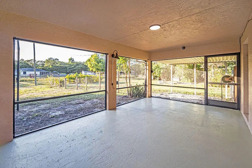 Welcome to this beautifully maintained CBS 3 bedroom 2 bathroom home, the perfect blend of country charm and modern comfort in highly desired Loxahatchee. Built in 2004 and loaded with major 2025 upgrades, this property sits on a paved road directly across from Lion Country Safari with a peaceful canal running alongside the lot. Inside you will find ceramic tile floors throughout, brand new window blinds, and a bright comfortable layout that flows into a large screened in patio. The fully fenced backyard offers a tranquil pond, three storage sheds, and a brand new chicken coop added in 2025.