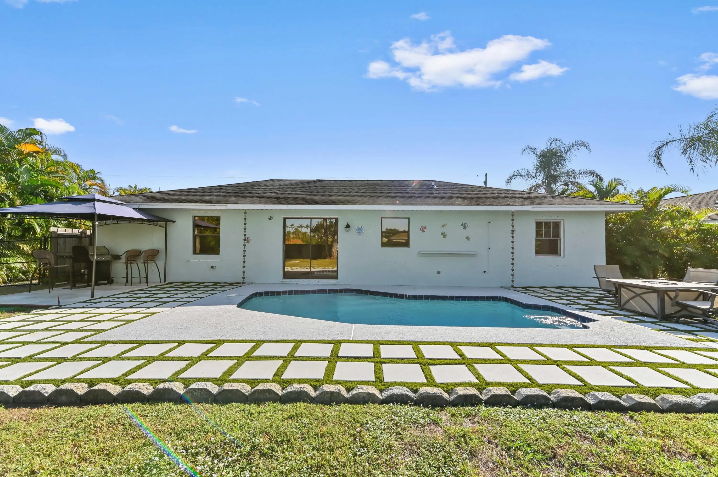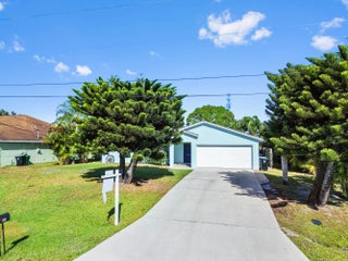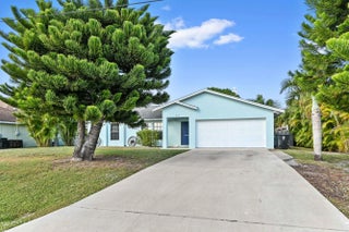 Seize this chance to own a fantastic, updated single-story pool home on an expansive over quarter-acre lot in Port St. Lucie! This gorgeous residence is a tropical paradise, greeting you with a bright, open floor plan and high-end finishes throughout. The main living space features vaulted ceilings, beautiful wood-look tile floors, creating a seamless, sophisticated look.