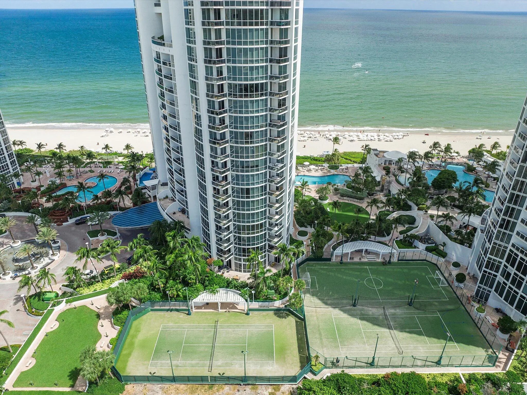 Welcome to the Oceanside Trump Palace, a five-star resort on the beach in the heart of Sunny Isles Beach. This exclusive oceanfront property offers beach service, tennis courts, pools, spa and fitness center, valet parking, concierge, business center, and full access to Trump International hotel and restaurants. You will enjoy the convenience and freedom of living in a house on the beach with direct access to all the amenities. This condo features 3 bedrooms plus a den, dark wood floors, a private entry foyer, and two private elevators. The highlight of this condo is the spacious 2,000 sq ft patio with 18' ceilings, which feels more like a private garden than a balcony. You can walk from your patio to the tennis courts, pool, or beach without taking any elevators.
