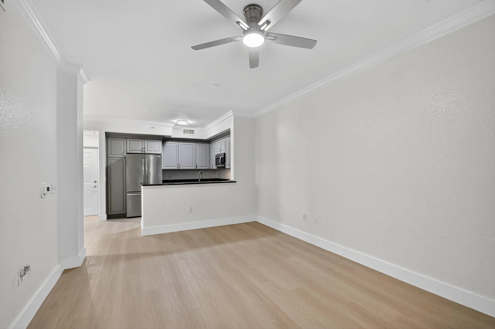 Welcome to this beautifully updated first-floor 1 bedroom, 1 bathroom condo in San Raphael Condominium, featuring brand-new flooring, fresh paint, and a new refrigerator, oven, and microwave. The unit offers the convenience of ground-floor living with an open porch overlooking the garden and fountain, plus one assigned parking space and secure access through a pedestrian gate. Residents enjoy great amenities including a pool, fitness center, and clubhouse, and the monthly HOA includes water, cable, and internet. Applicants must have a minimum 725 credit score, no pickup trucks are allowed, and only one car is permitted for this unit.