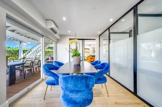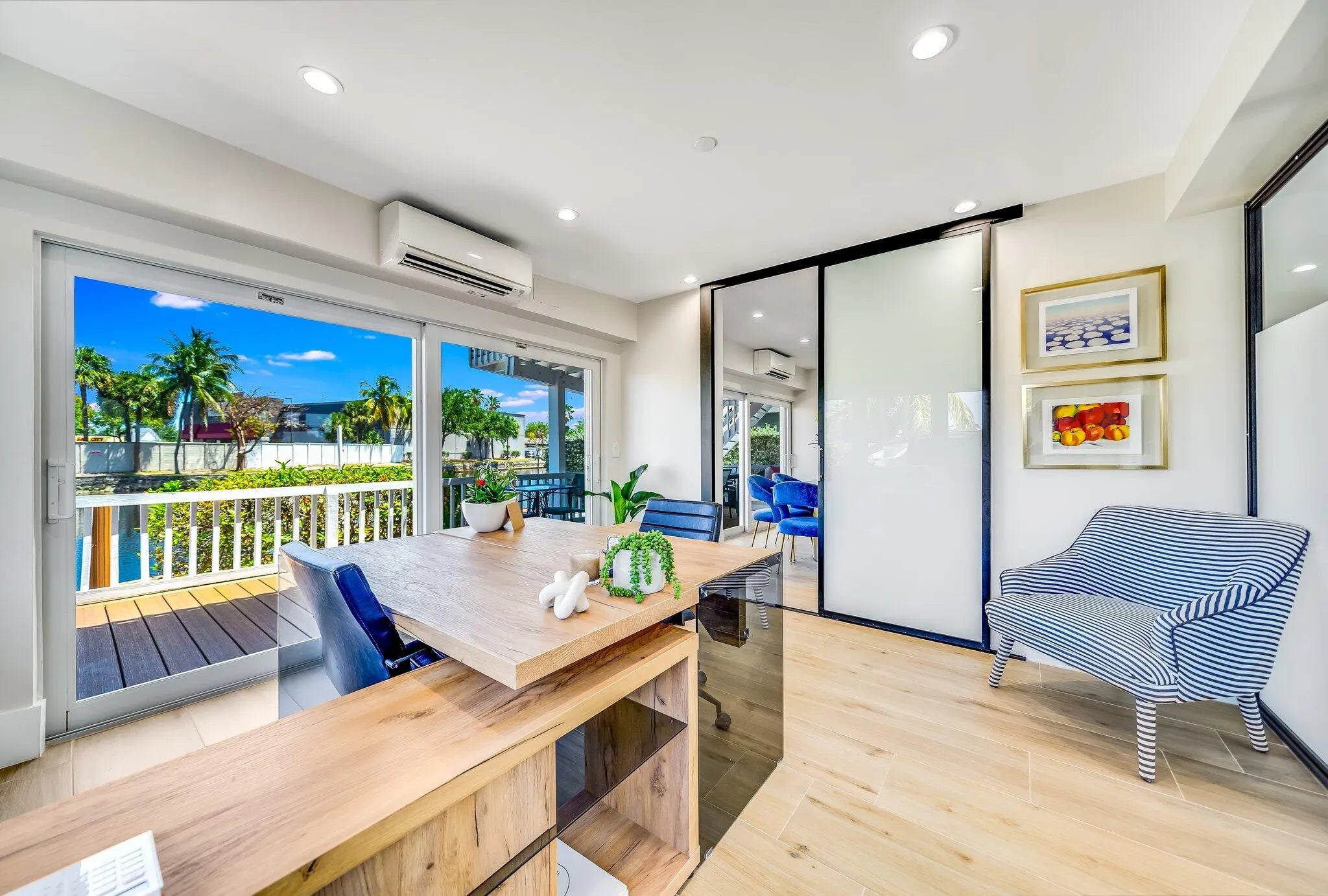 Presenting a fully renovated, turn-key mixed-use waterfront property on a high-visibility corner just steps from Federal Highway. This two-story asset features an oversized wraparound balcony overlooking the waterway, tranquil southeast views, and a private dock with a 90' seawall rebuilt in 2017.Nearly rebuilt in 2012 with new electric, plumbing, flooring, and structural upgrades, the property also features hurricane impact windows and doors throughout, multiple entrances, LED lighting, and six HVAC zones.The first floor is commercial, currently configured as three bays, including a beautifully remodeled waterfront suite with modern glass partitions, a waterfront conference room, private offices, and upgraded finishes throughout. The bays can easily be combined into a larger