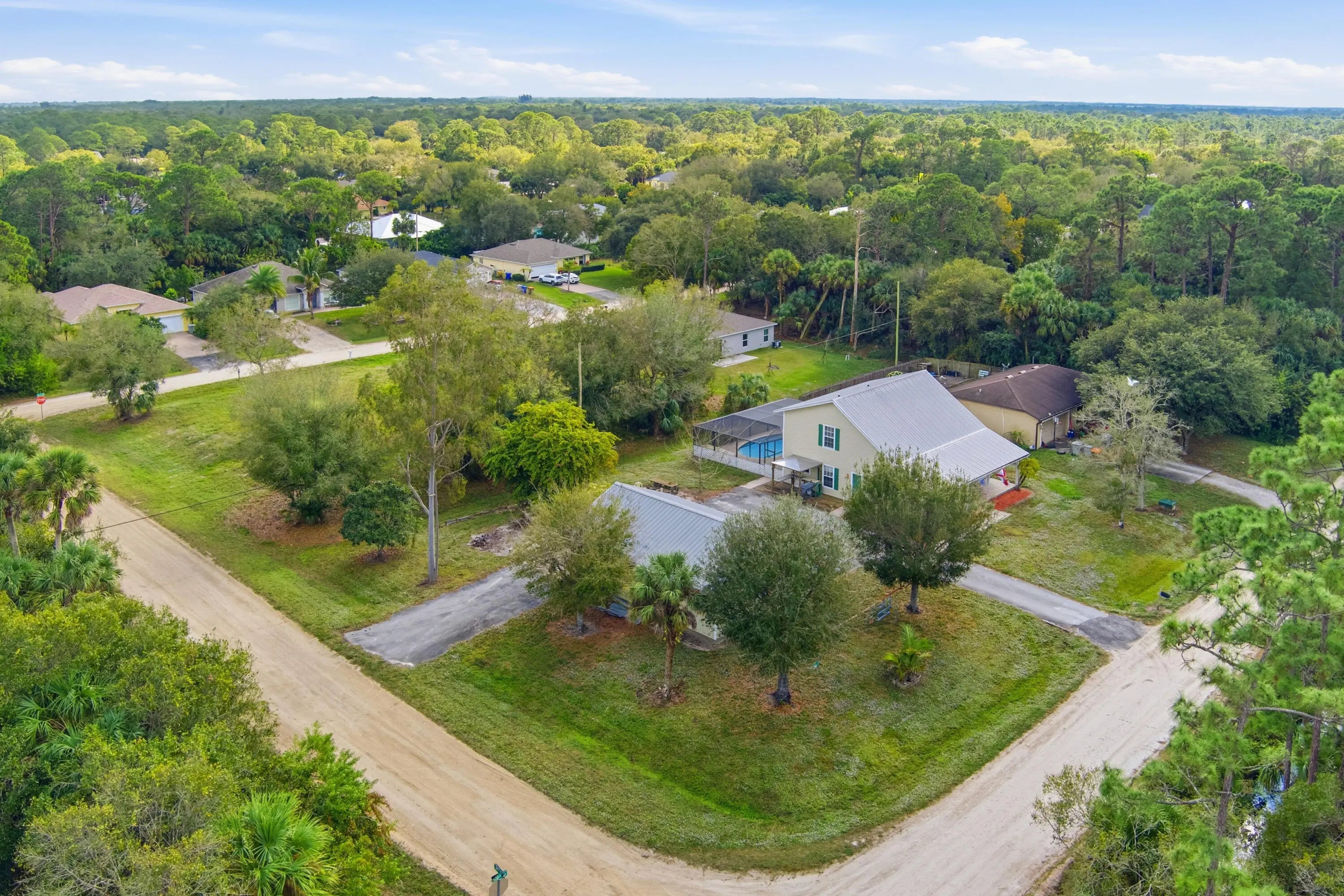 Craving space, a pool, and no HOA in Vero? This 4BR/2.5BA pool home sits on a DOUBLE LOT and features a metal roof, hurricane shutters, and a detached 3-car garage. Inside, the living room showcases soaring cathedral ceilings and custom woodwork, with a layout that flows seamlessly from the main living area to the eat-in kitchen and out to the pool.The first-floor primary suite, updated baths, and flex space offer comfort and versatility, while the kitchen boasts newer stainless steel appliances and French doors leading to the screened pool and paver patio. A covered front porch is perfect for watching Florida storms roll by. Newer AC and hot water heater for peace of mind, and you're just minutes to beaches, parks, dining, and schools.