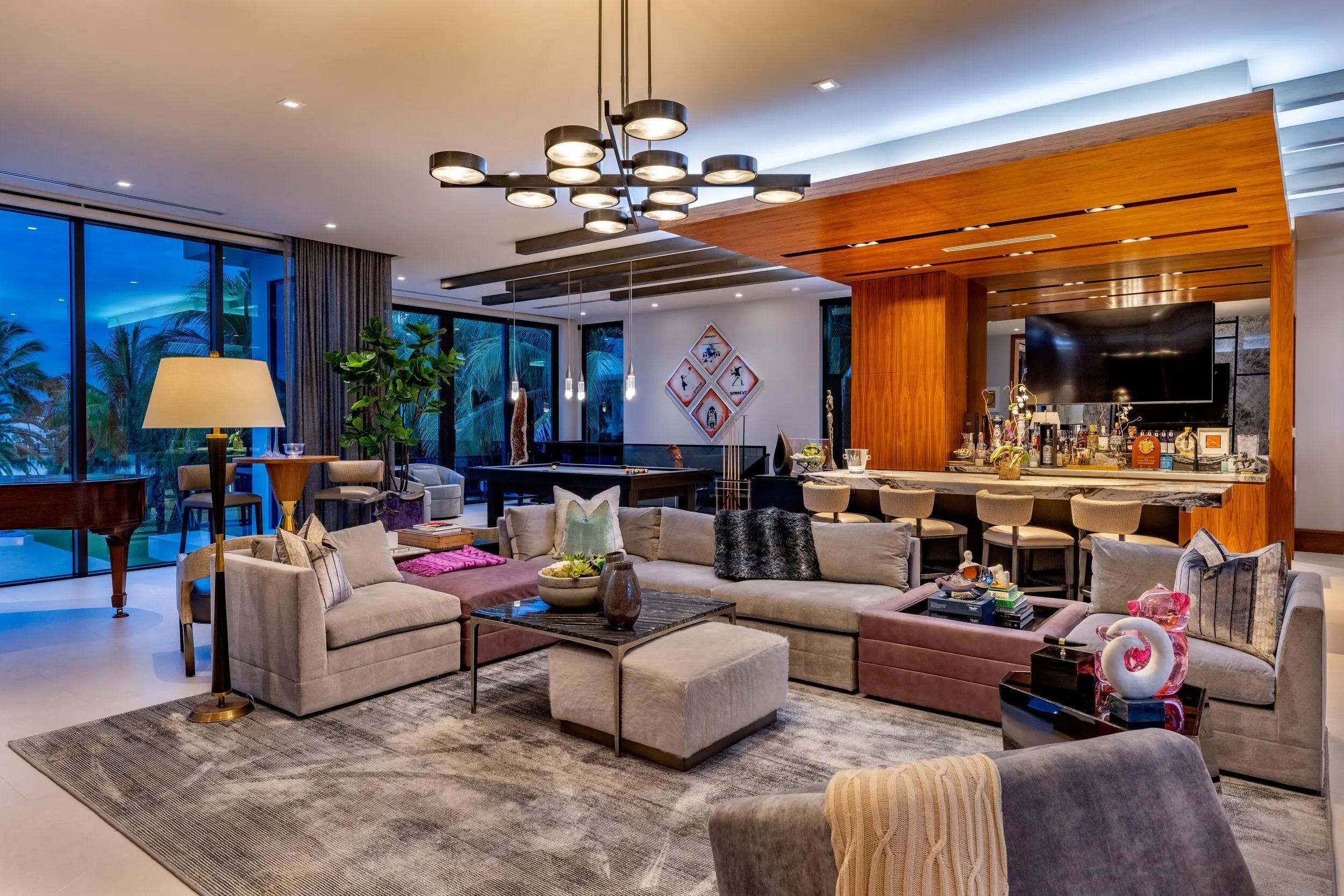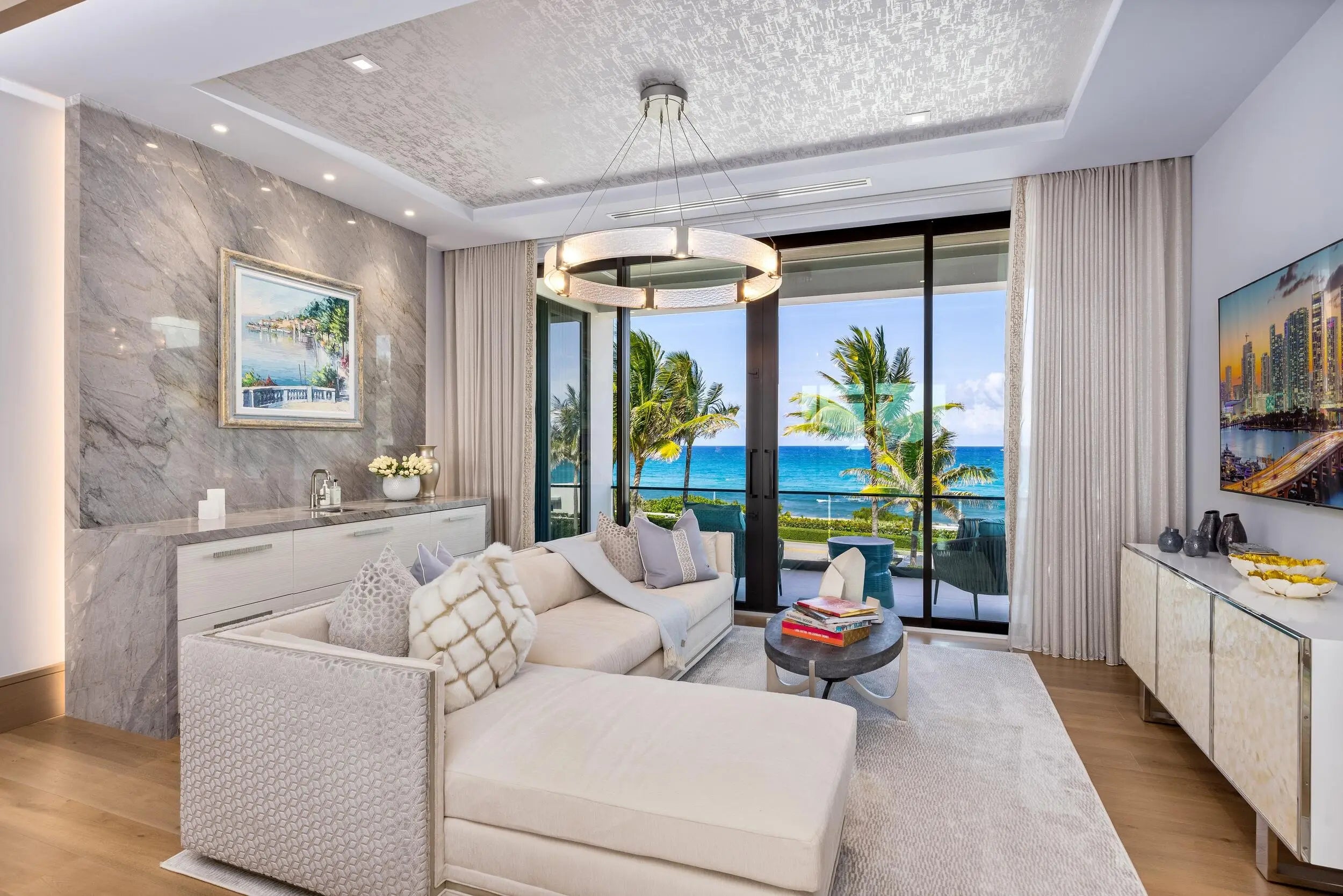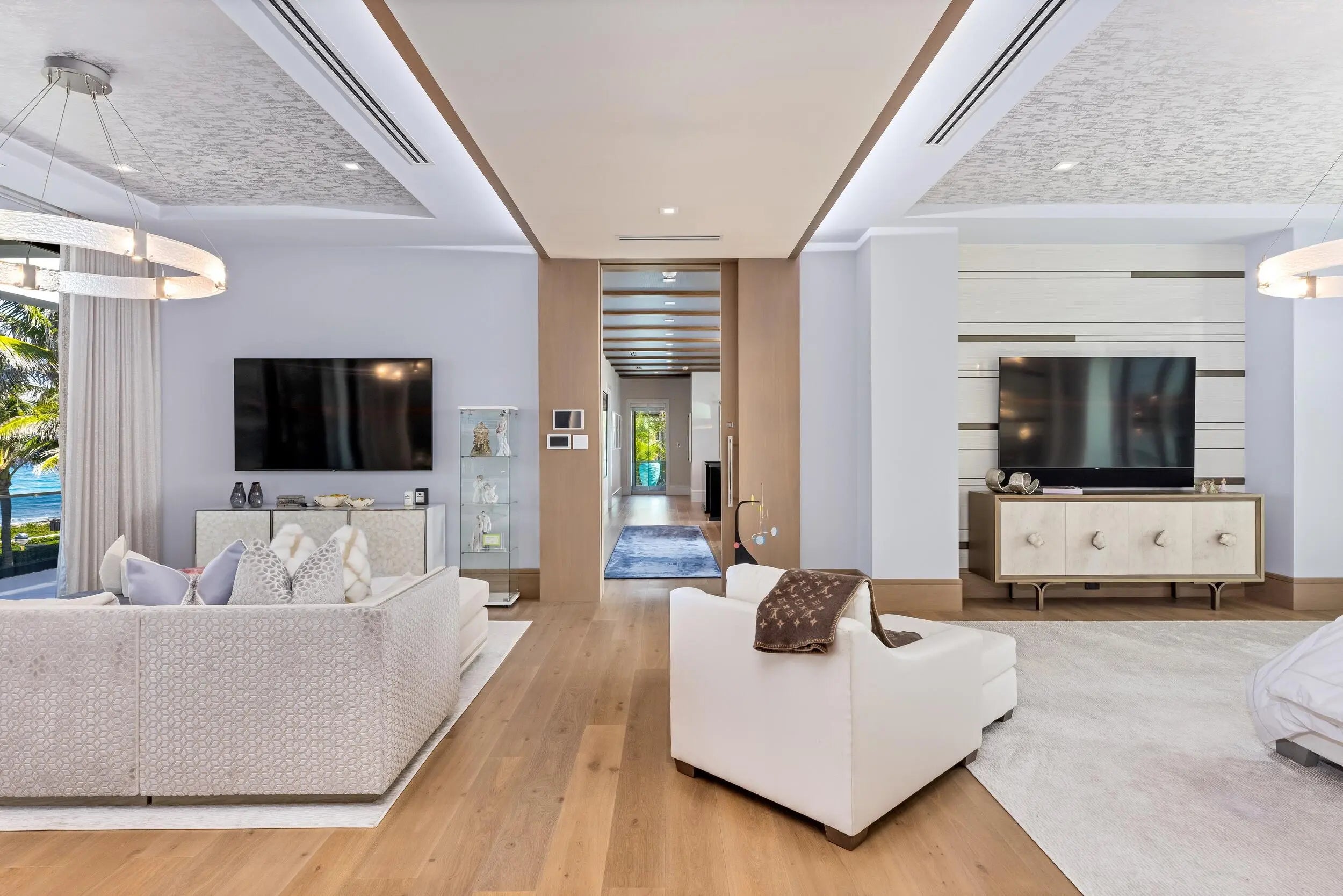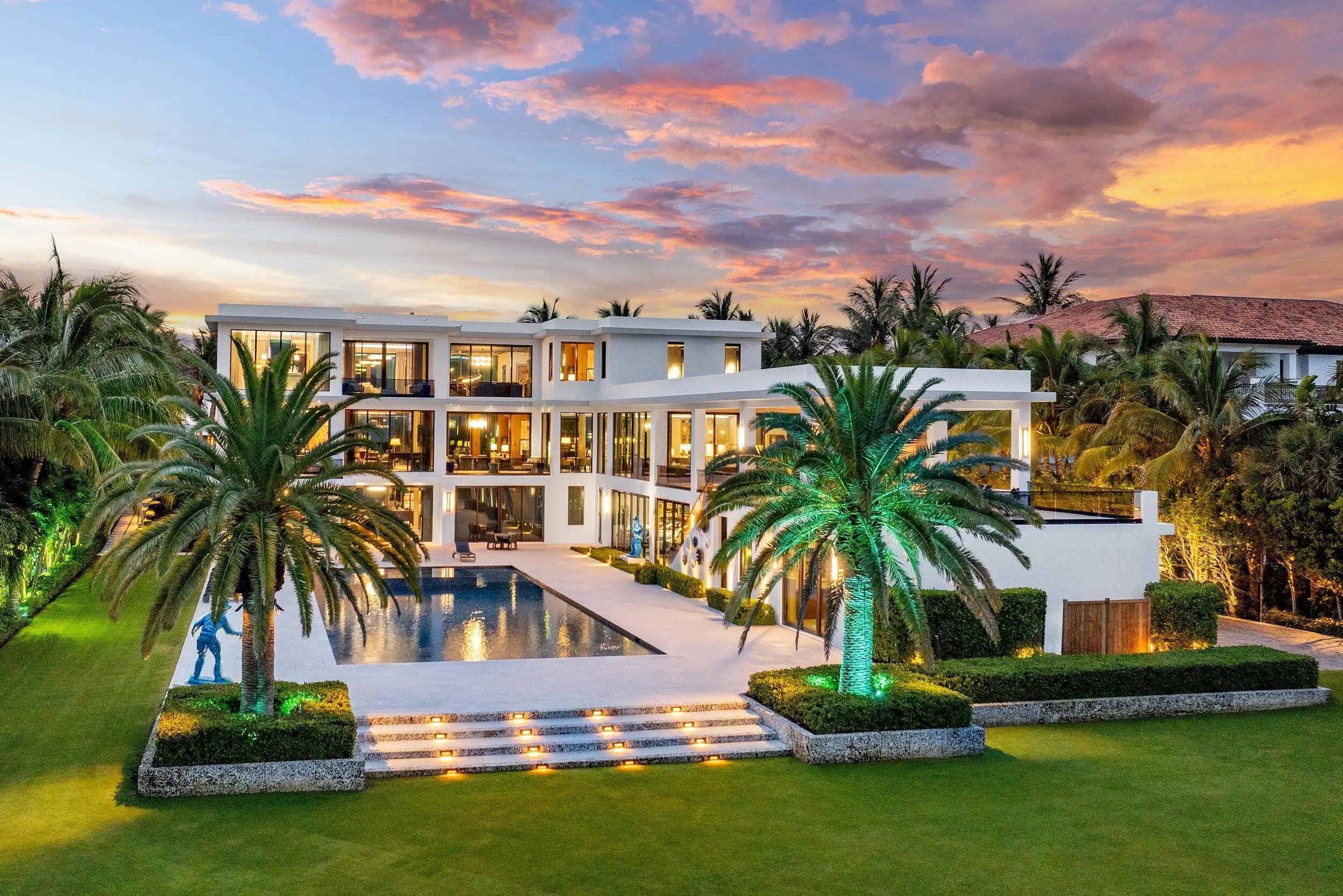 1660 South Ocean, an estate that captures the epitome of private resort living in South Florida, is a singular contemporary masterpiece in Manalapan's highly coveted Estate Section. This modern marvel boasts three stories, offers close to 20K square feet of living space, and is truly a best in class ocean-to-intracoastal compound on one of the deepest lots in the highly sought after Manalapan beachfront stretch. Just south of the Mar-A-Lago, this fully automated, turn-key seaside compound epitomizes the essence of modern coastal luxury: grand in scale, sculptural in form, and intimately connected to its stunning lush ocean to intracoastal setting.