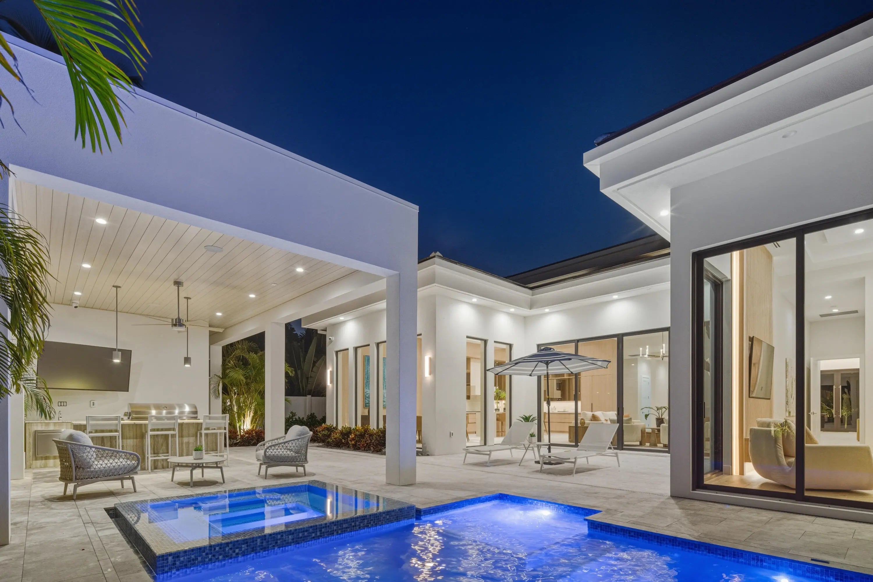 From the moment you step inside, it's clear this is no ordinary Mizner Park residence. A grand foyer, an impressive executive office, and a true first-floor primary suite set the tone for a home that feels equally extraordinary whether you're enjoying a quiet evening in or hosting an unforgettable night with friends. Sunlit interiors blur the line between indoors and out, yet retain an inviting warmth--perfect for a cozy movie night with candles glowing and slippers on. Thoughtfully designed for both everyday living and elevated entertaining, the home offers five ensuite bedrooms, including a sumptuous first-floor primary. Upstairs, four grand suites surround a spacious secondary living area, ideal for guests, family, or a private retreat. The open-concept great room flows --